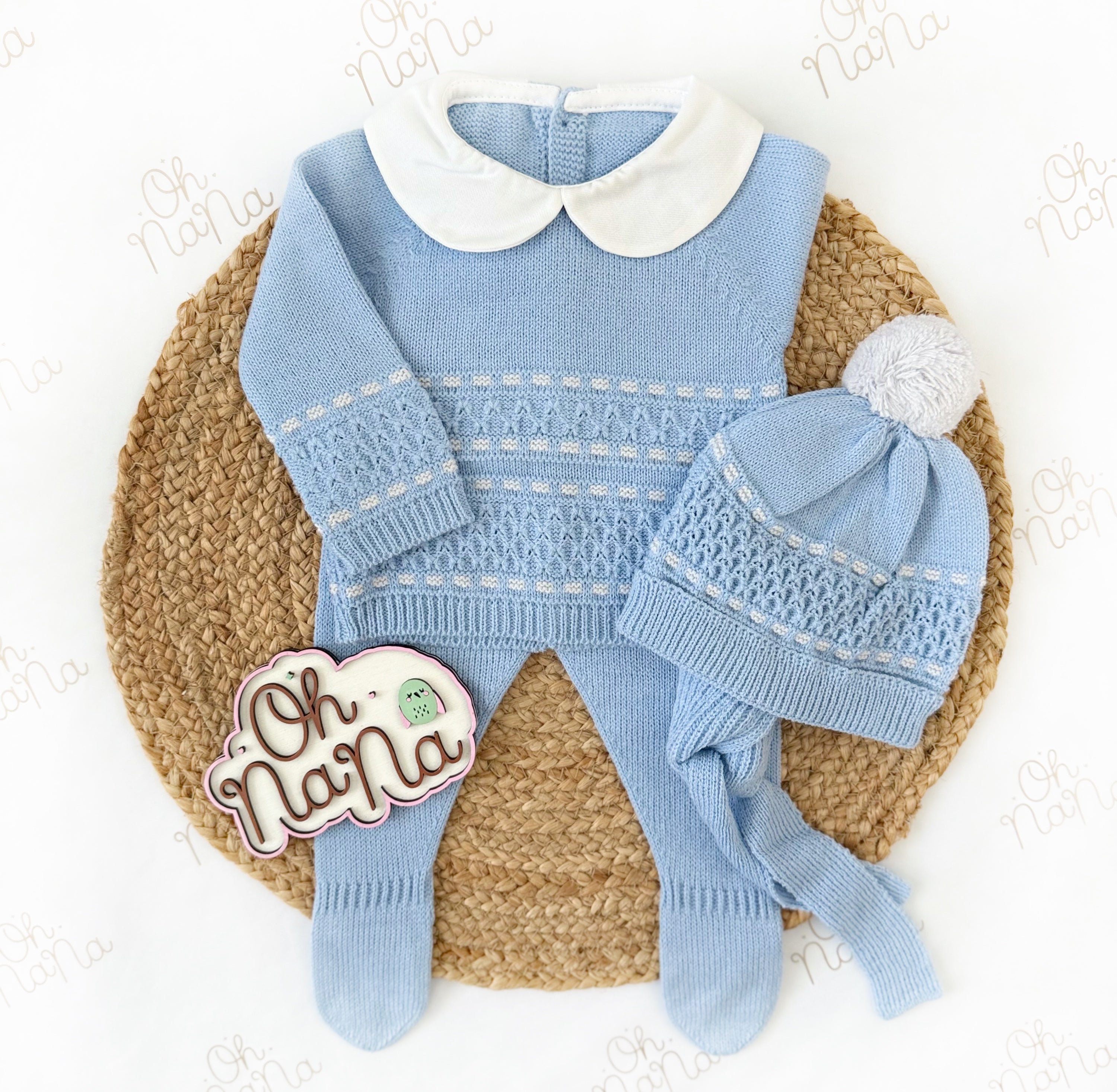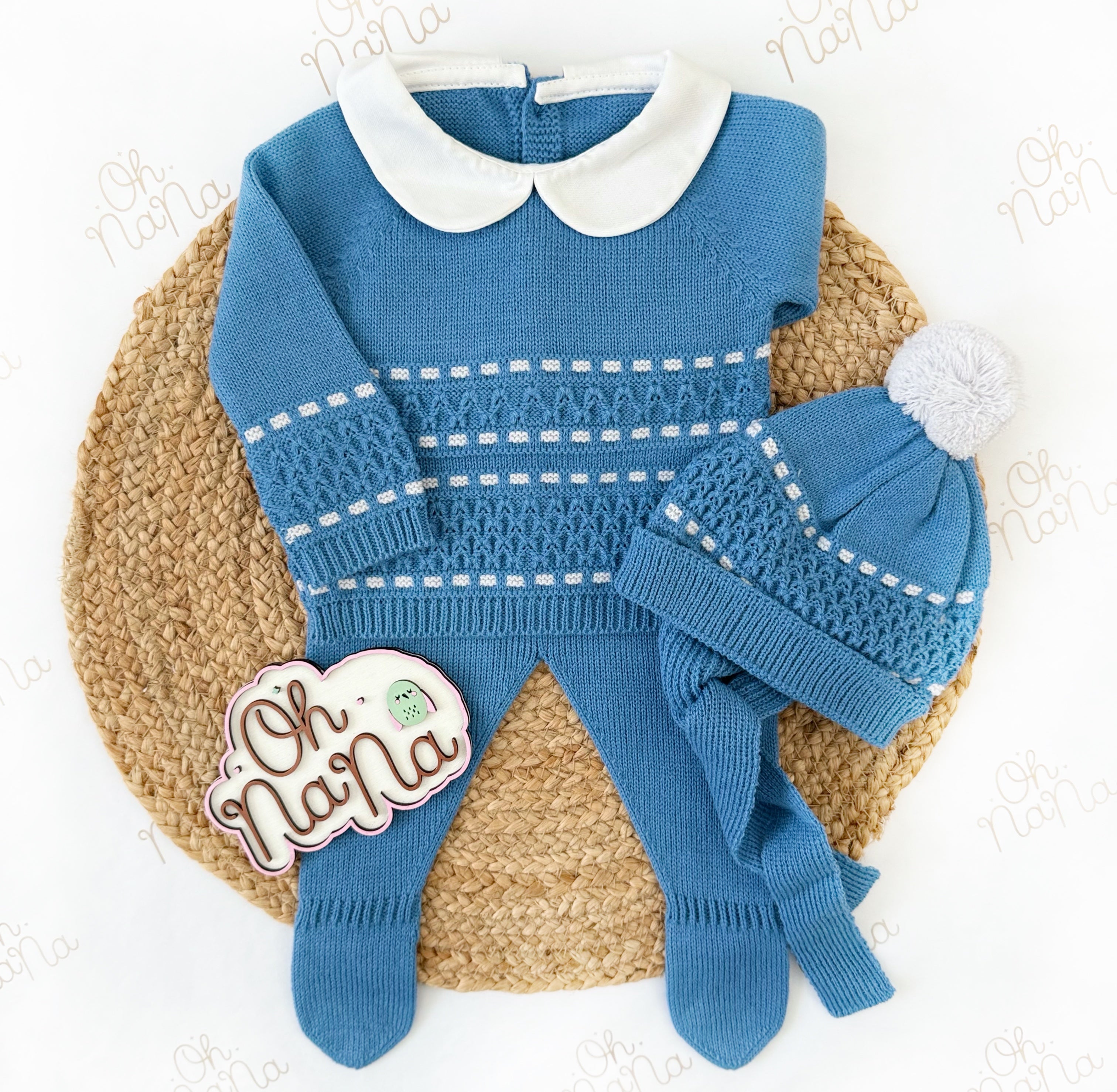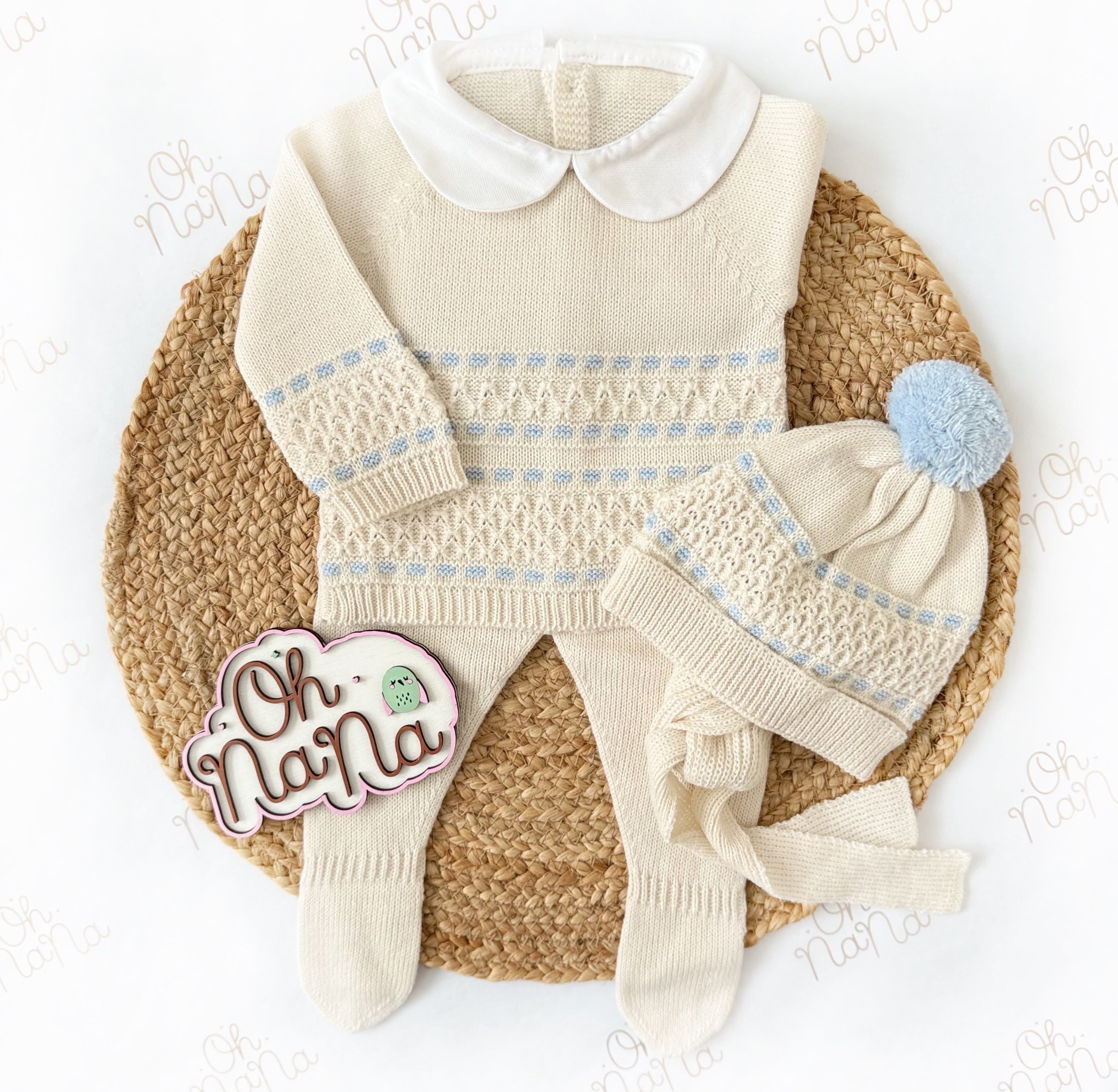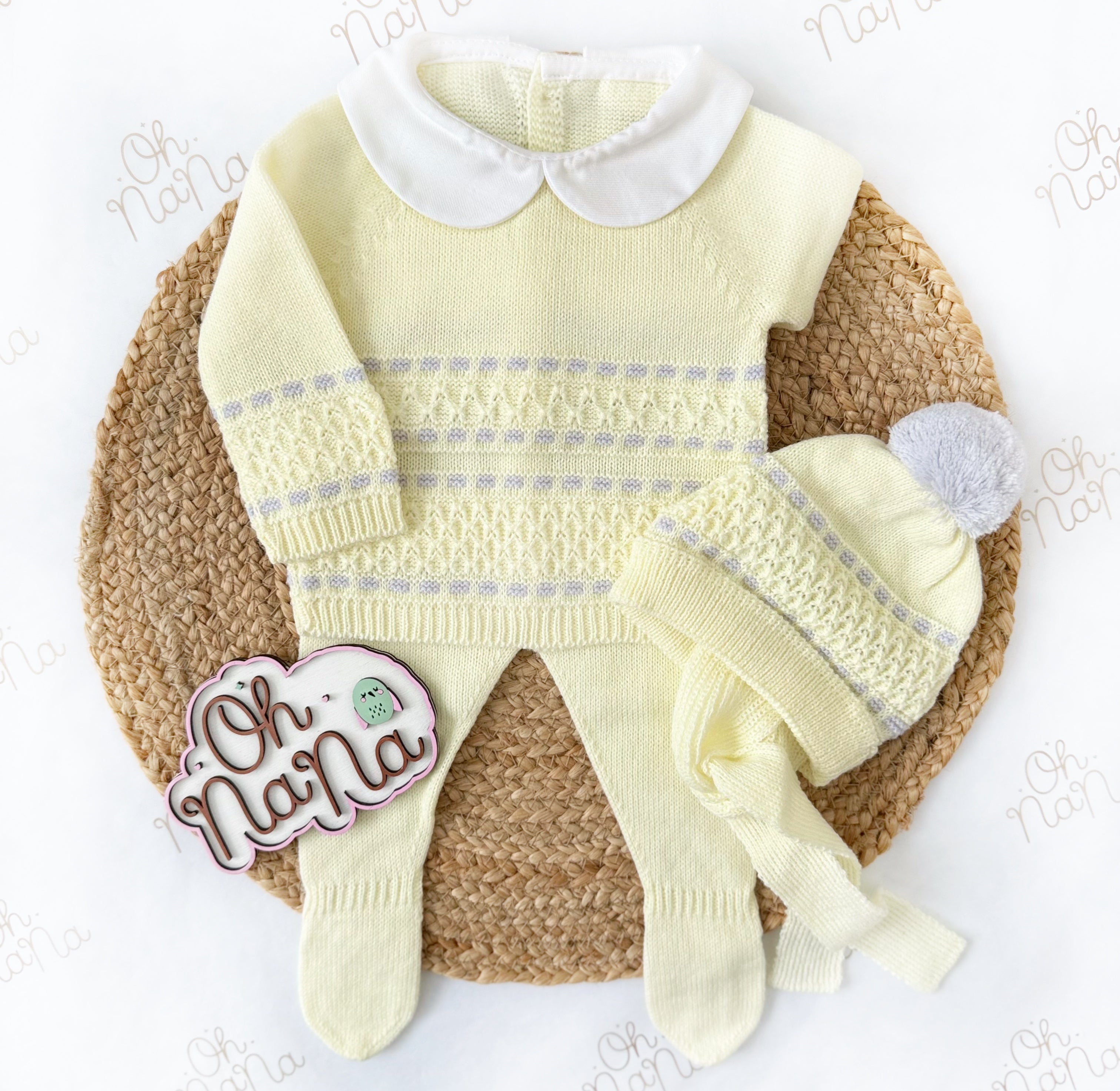 Jacquard Newborn Three Piece Outfit (5 Colors Available)