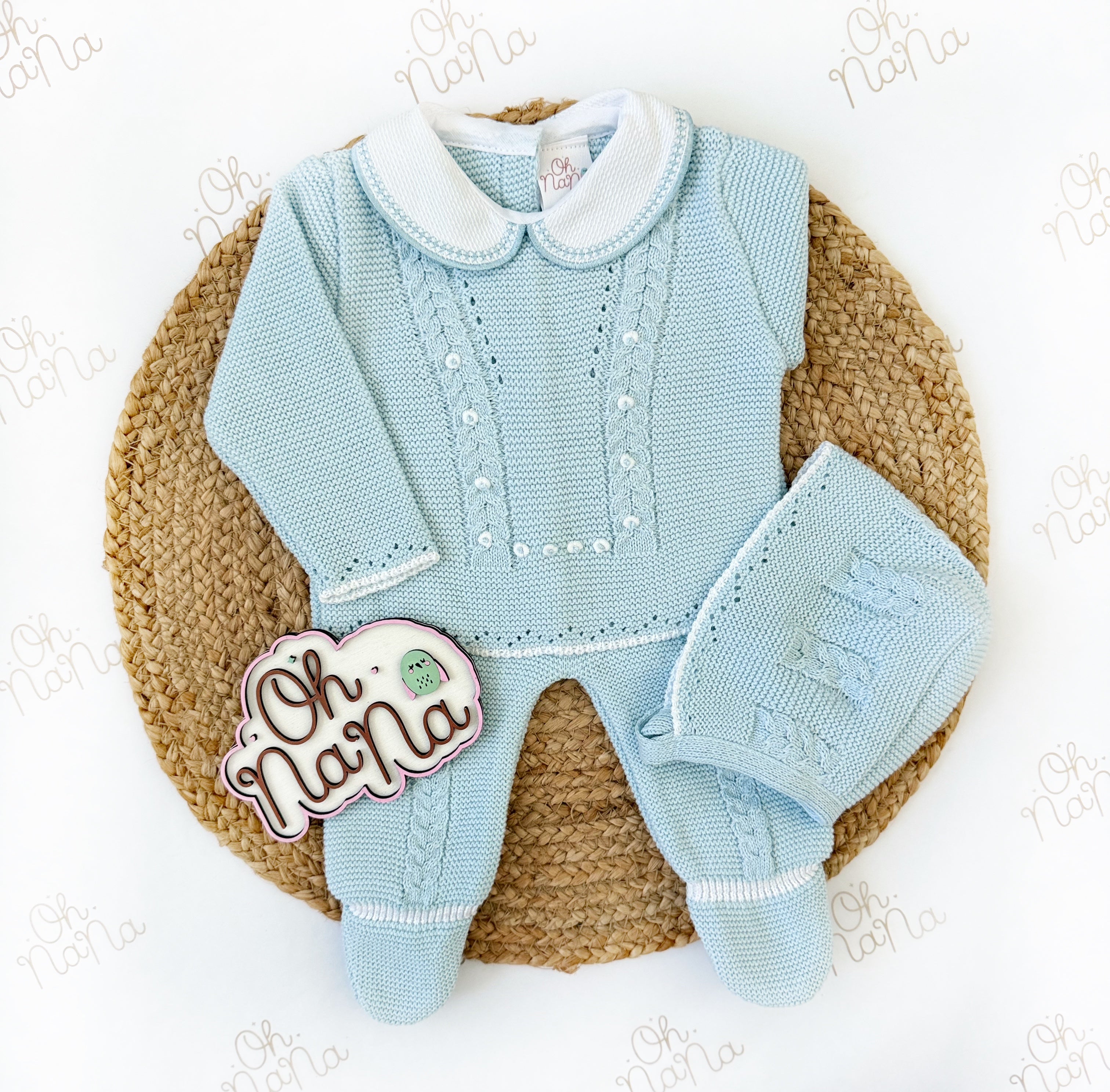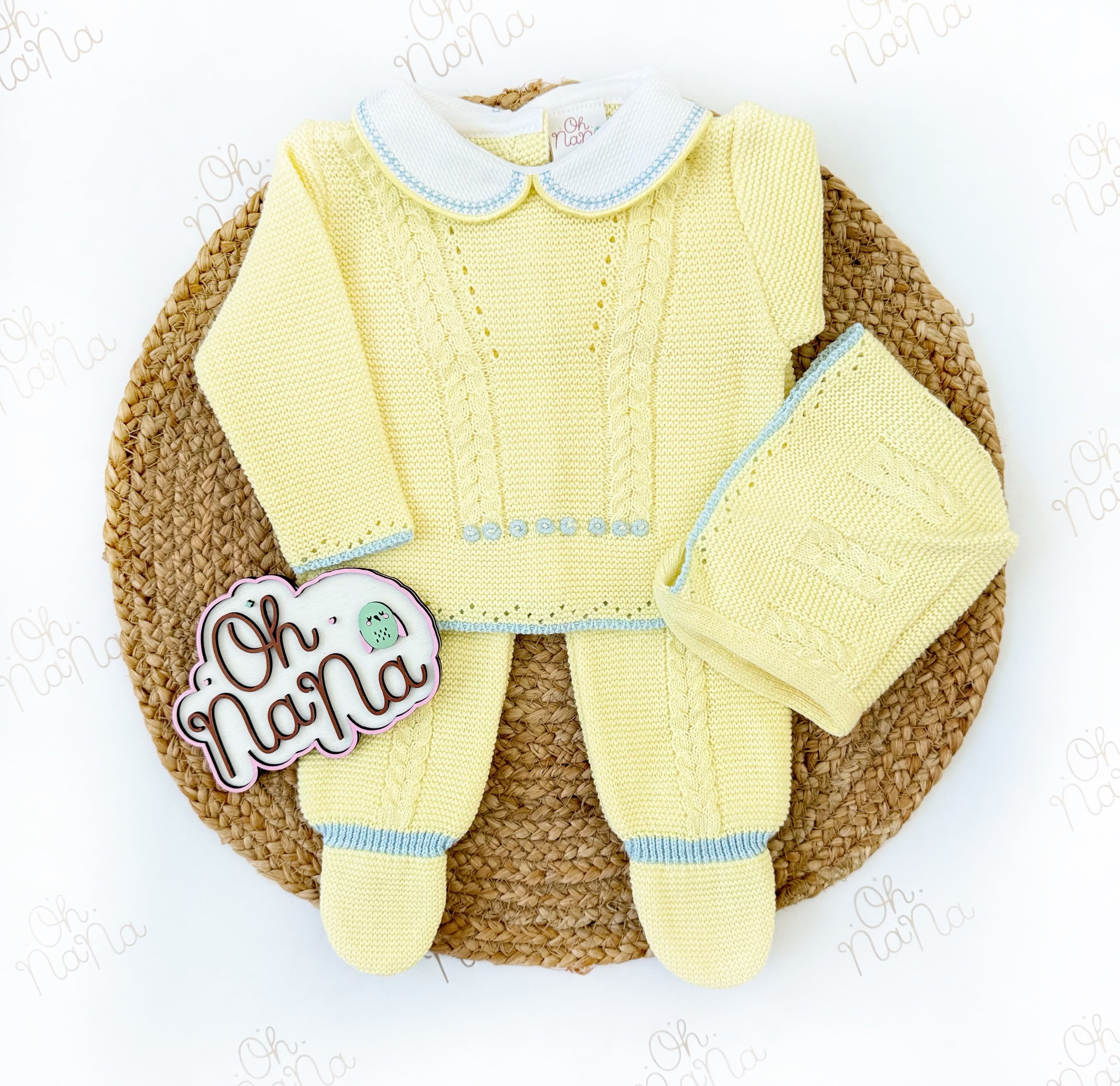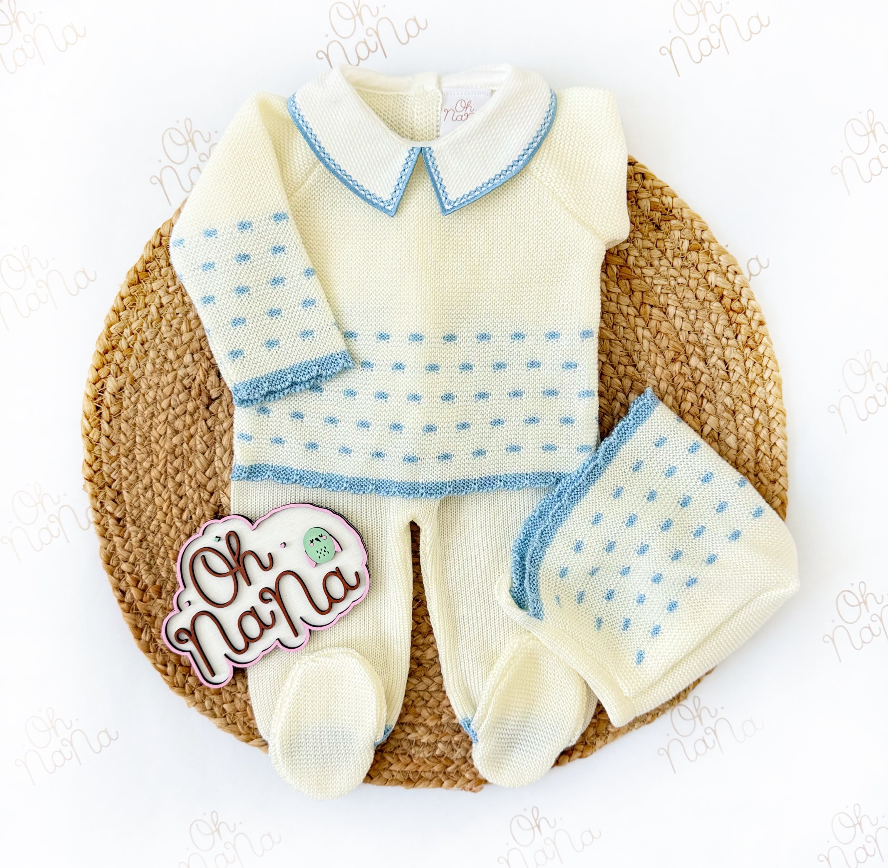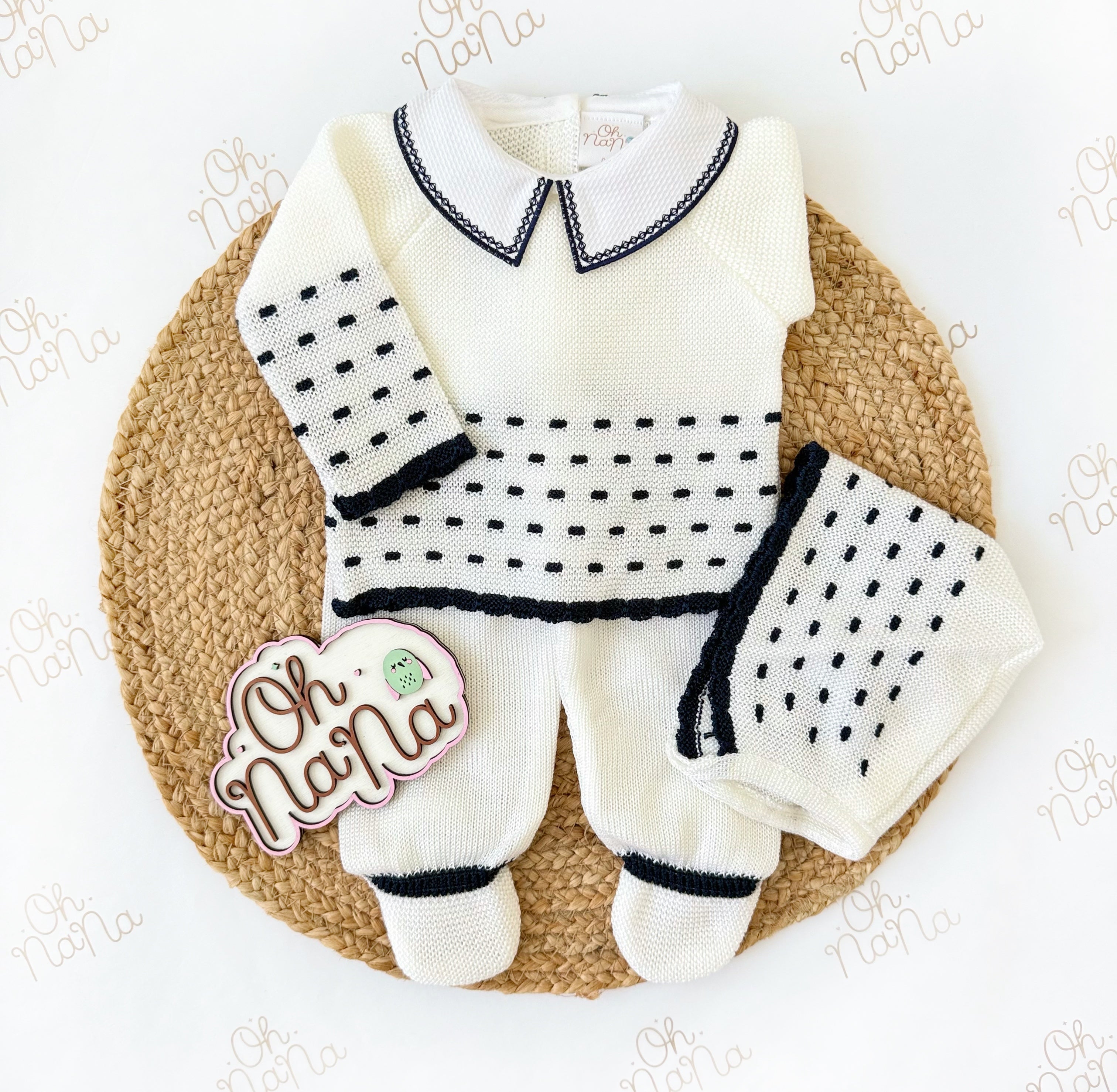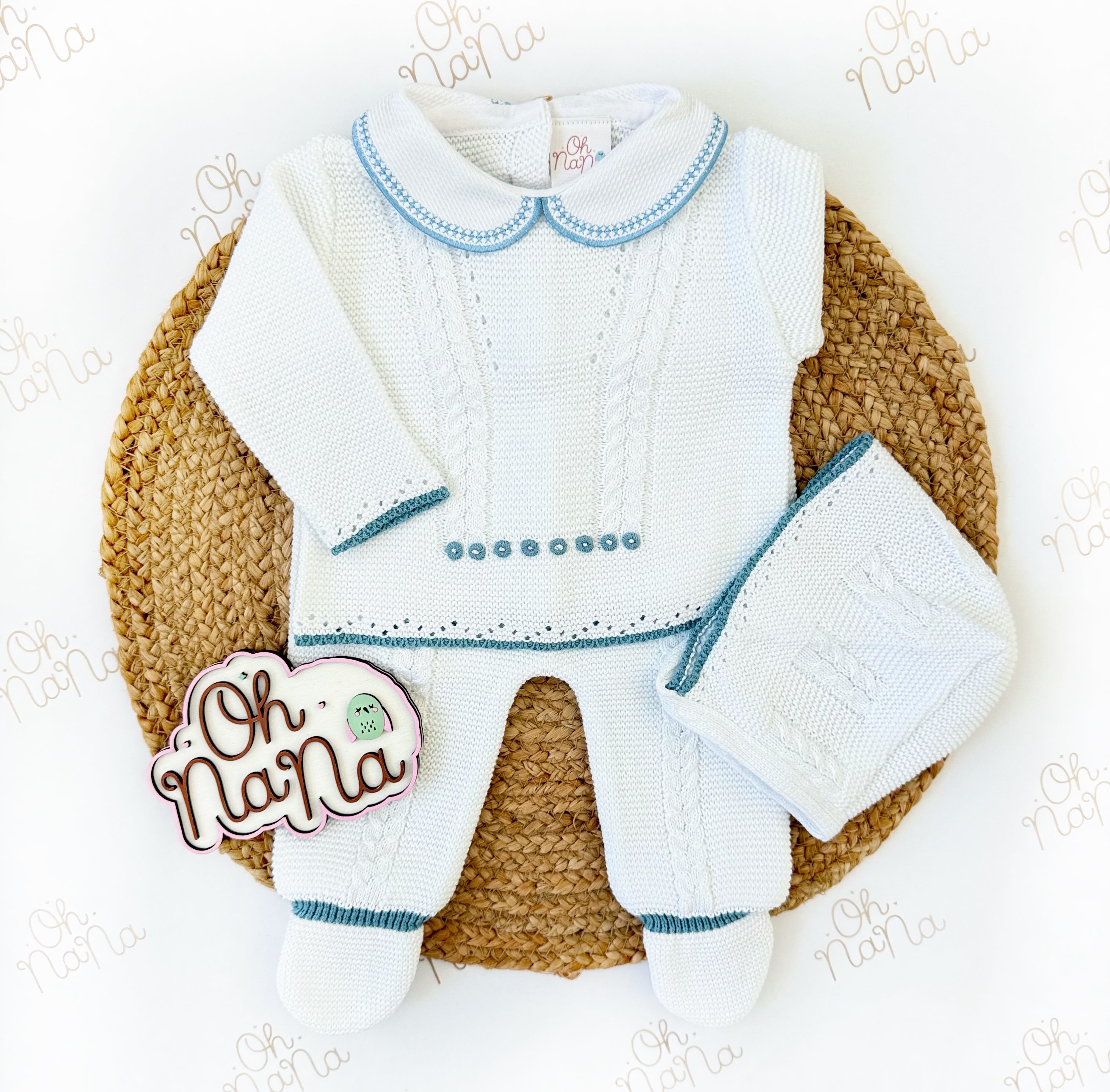 Jacquard Newborn Three Piece Outfit (5 Colors Available)
