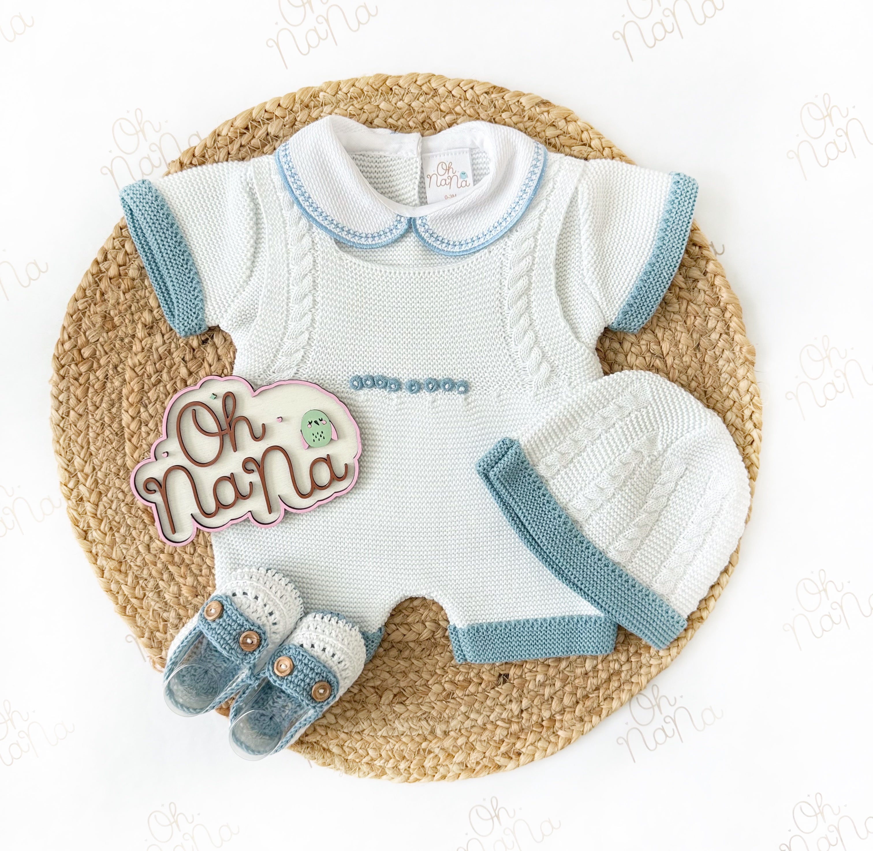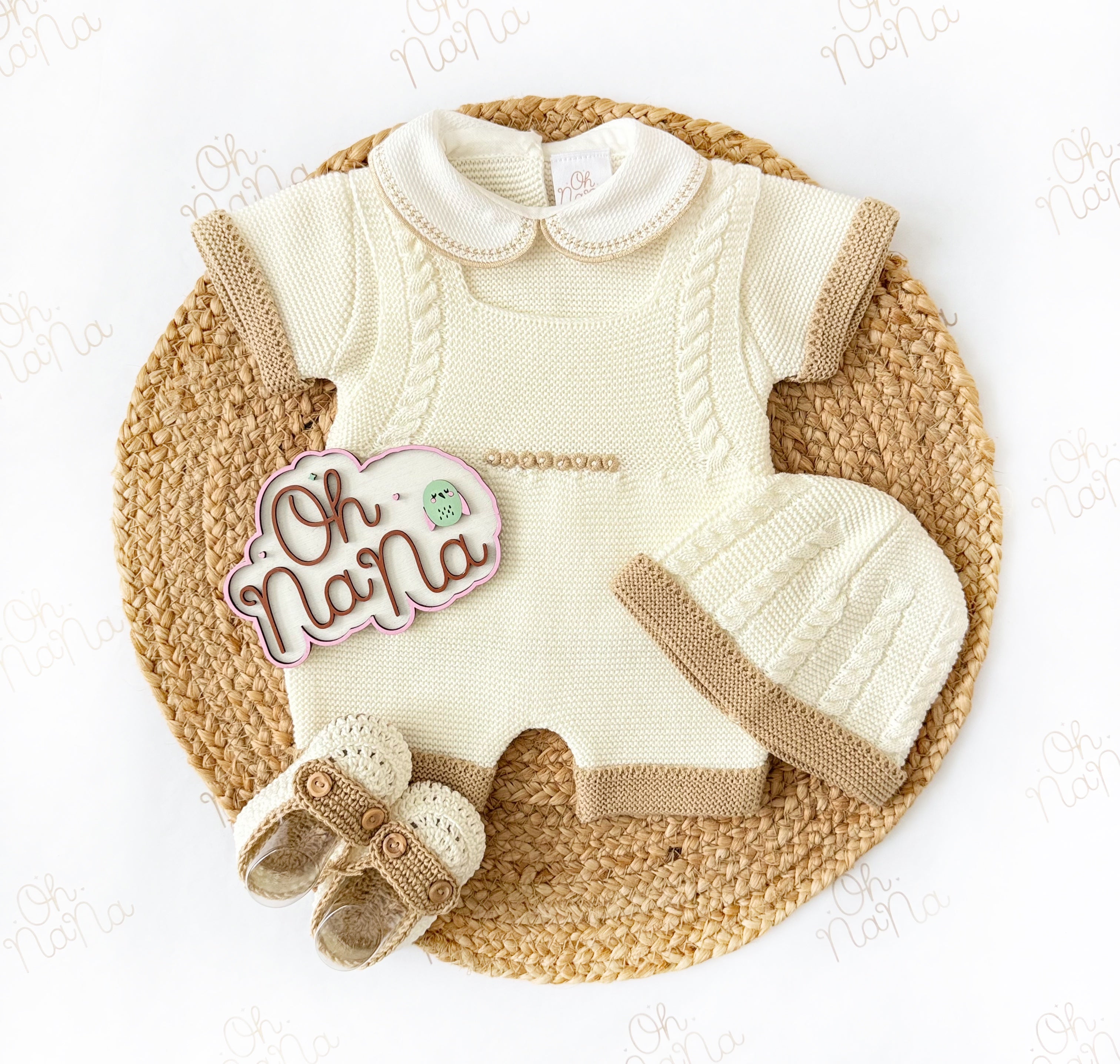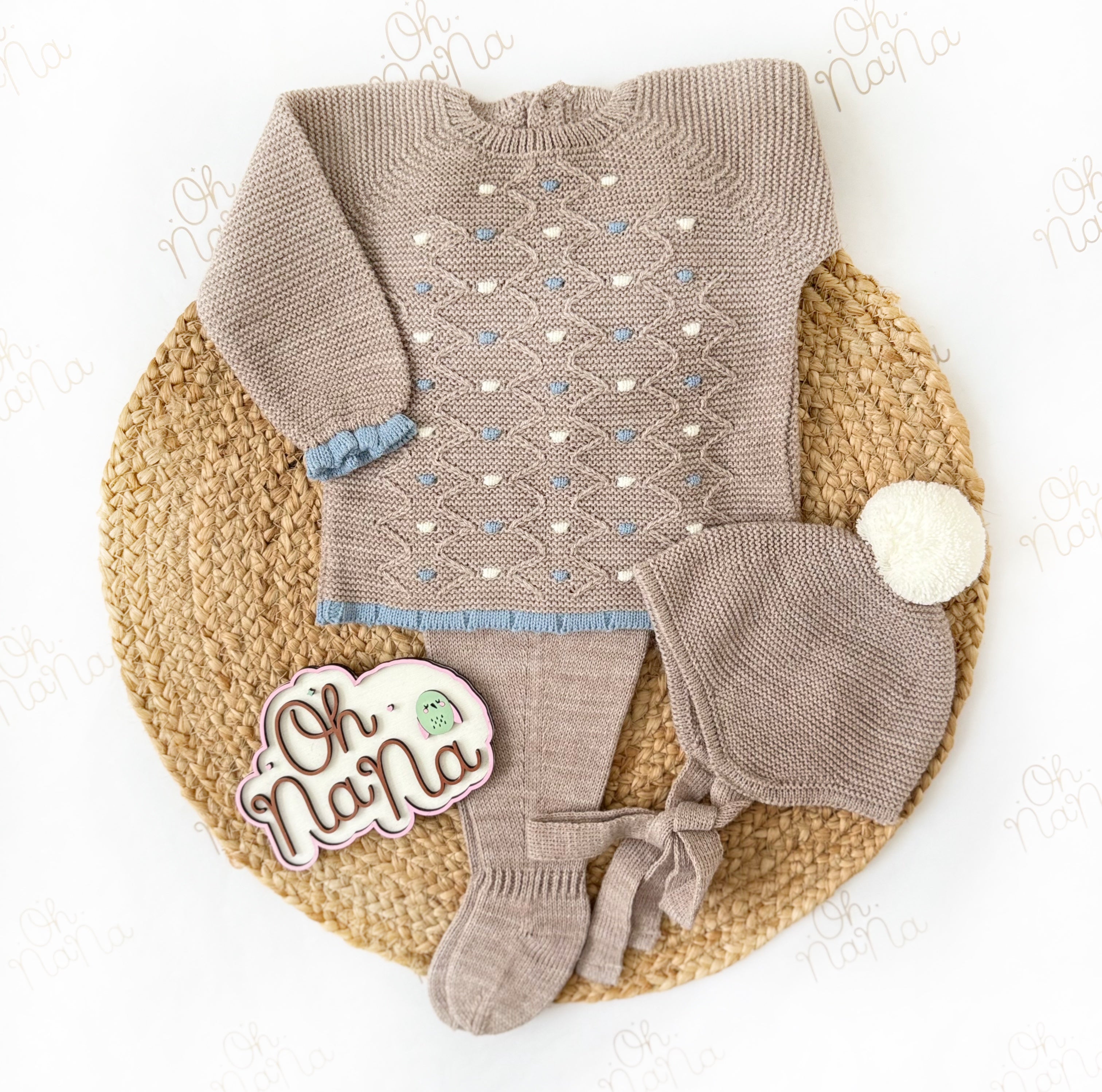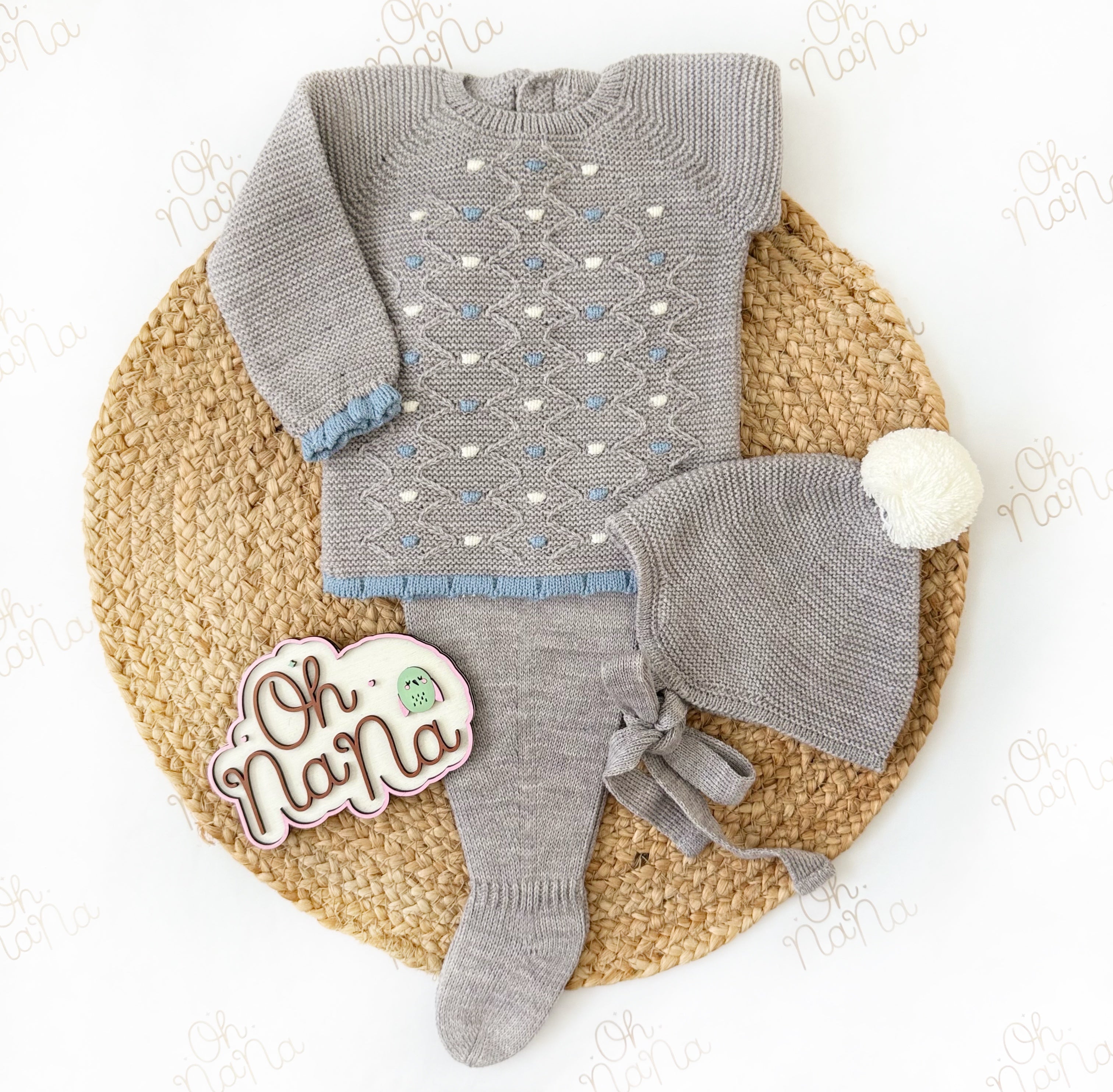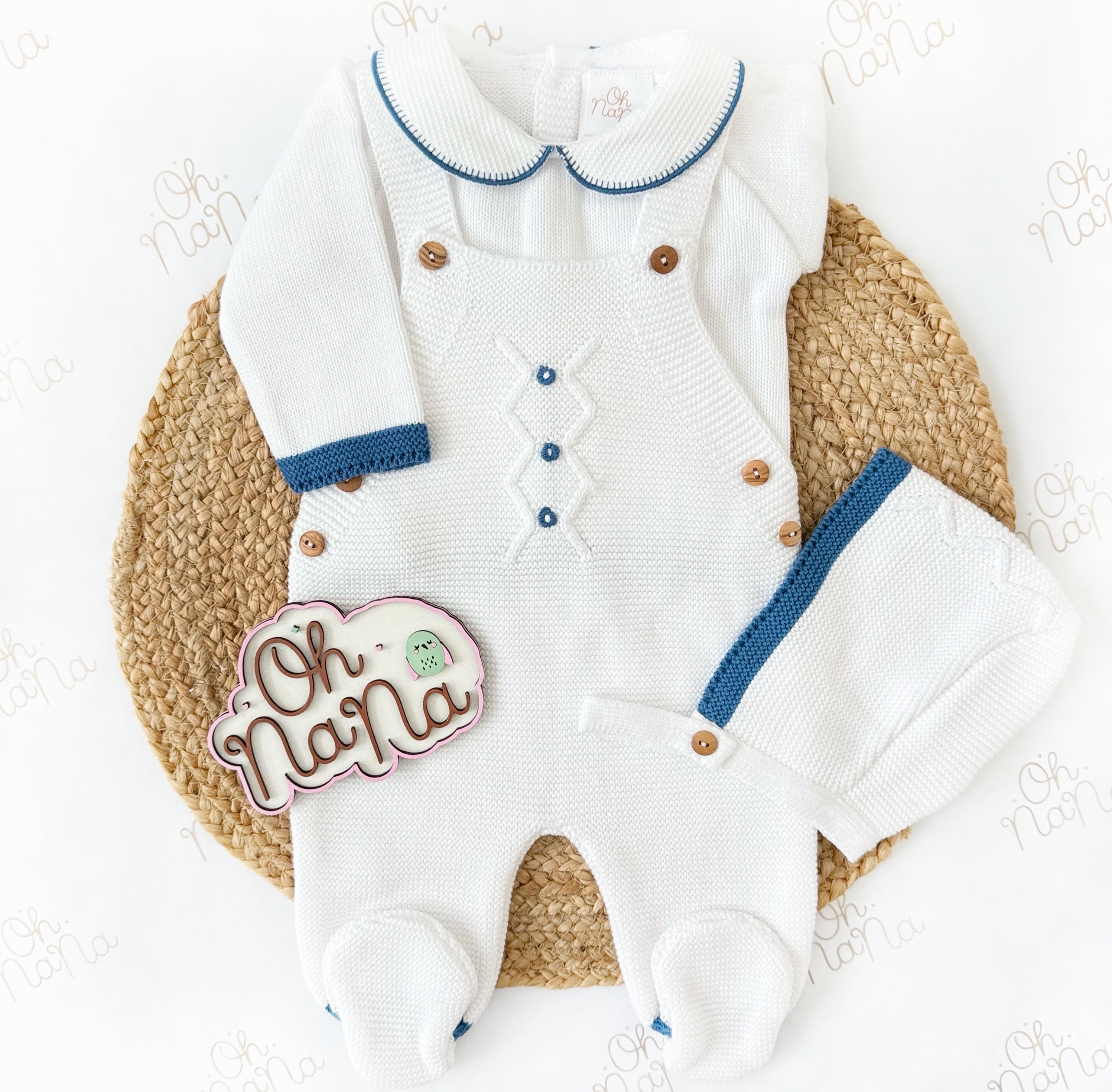 Jacquard Newborn Three Piece Outfit (5 Colors Available)