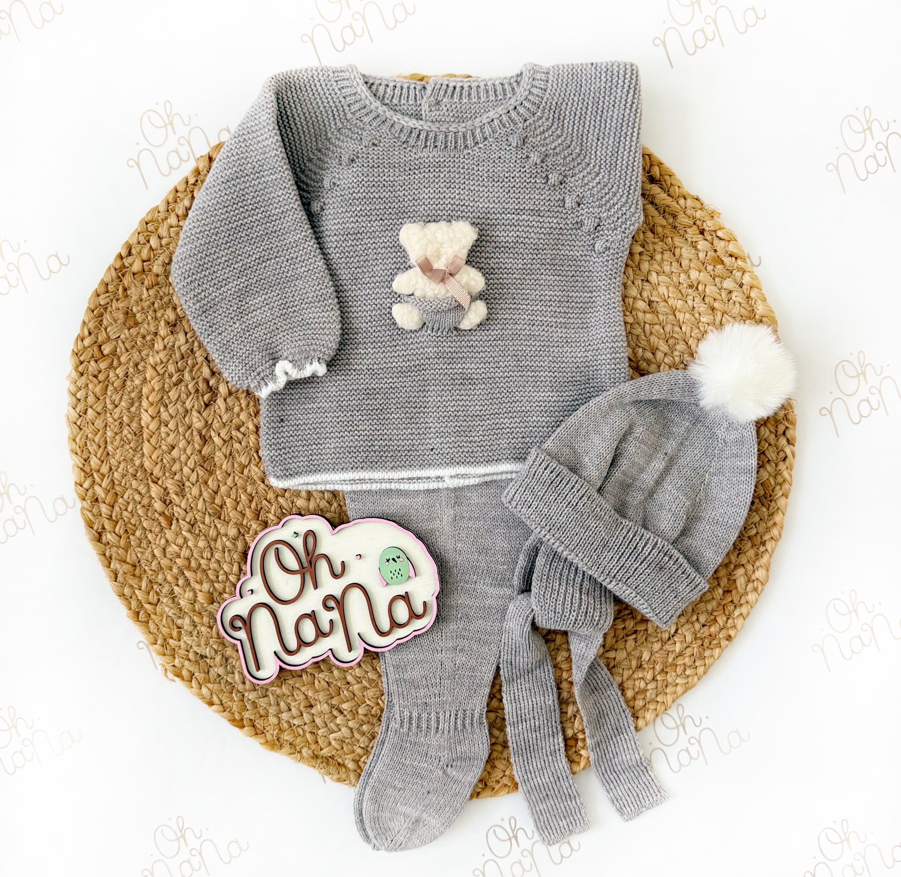 Bear Newborn Three Piece Outfit (Gray)