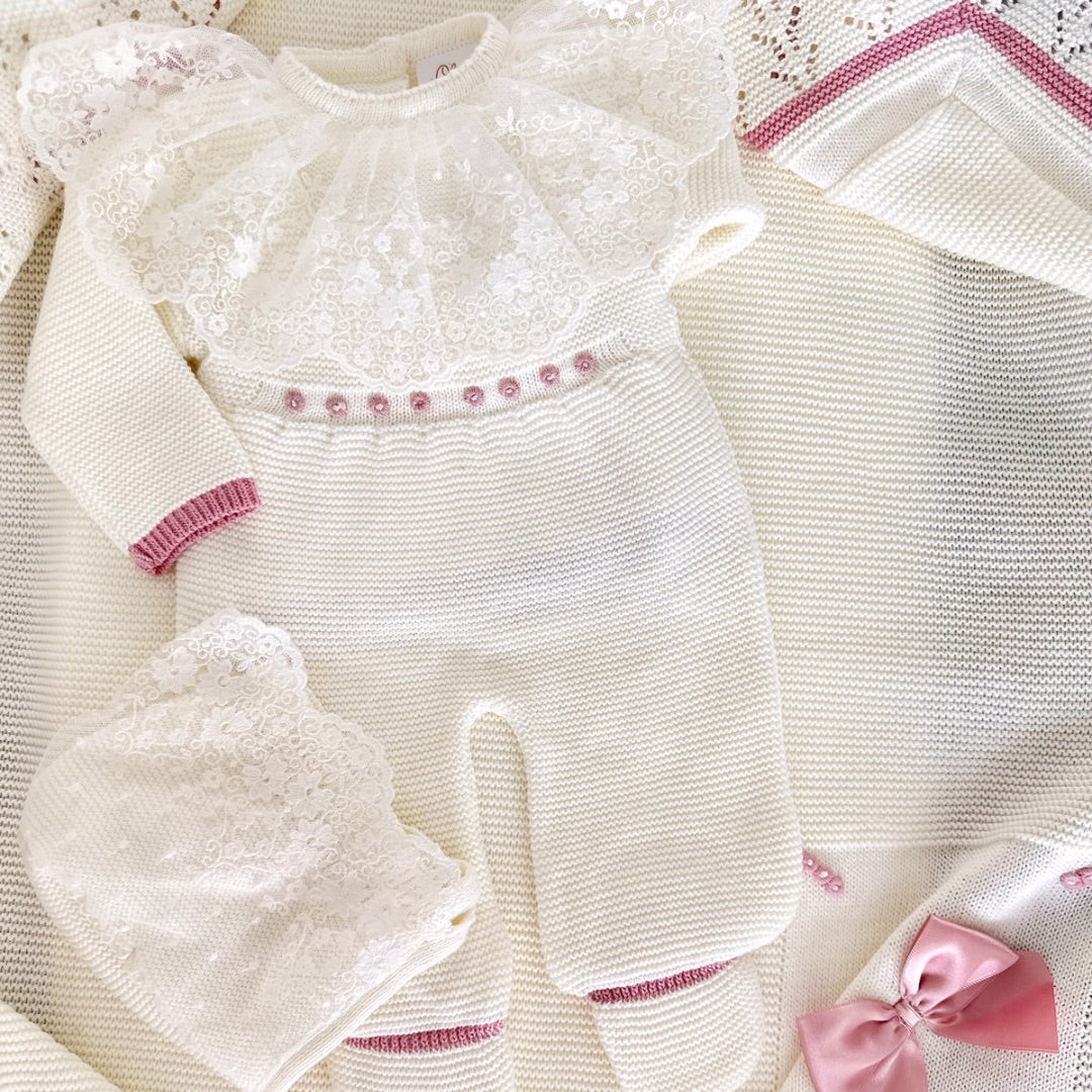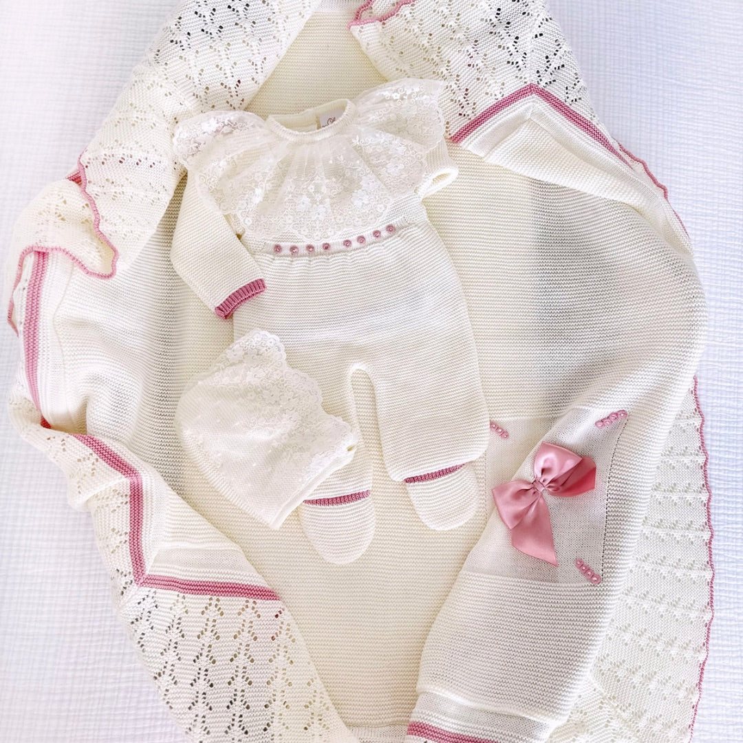 Paula Jumpsuit Deluxe Set Outfit + Blanket (Ivory/Dusty Pink)