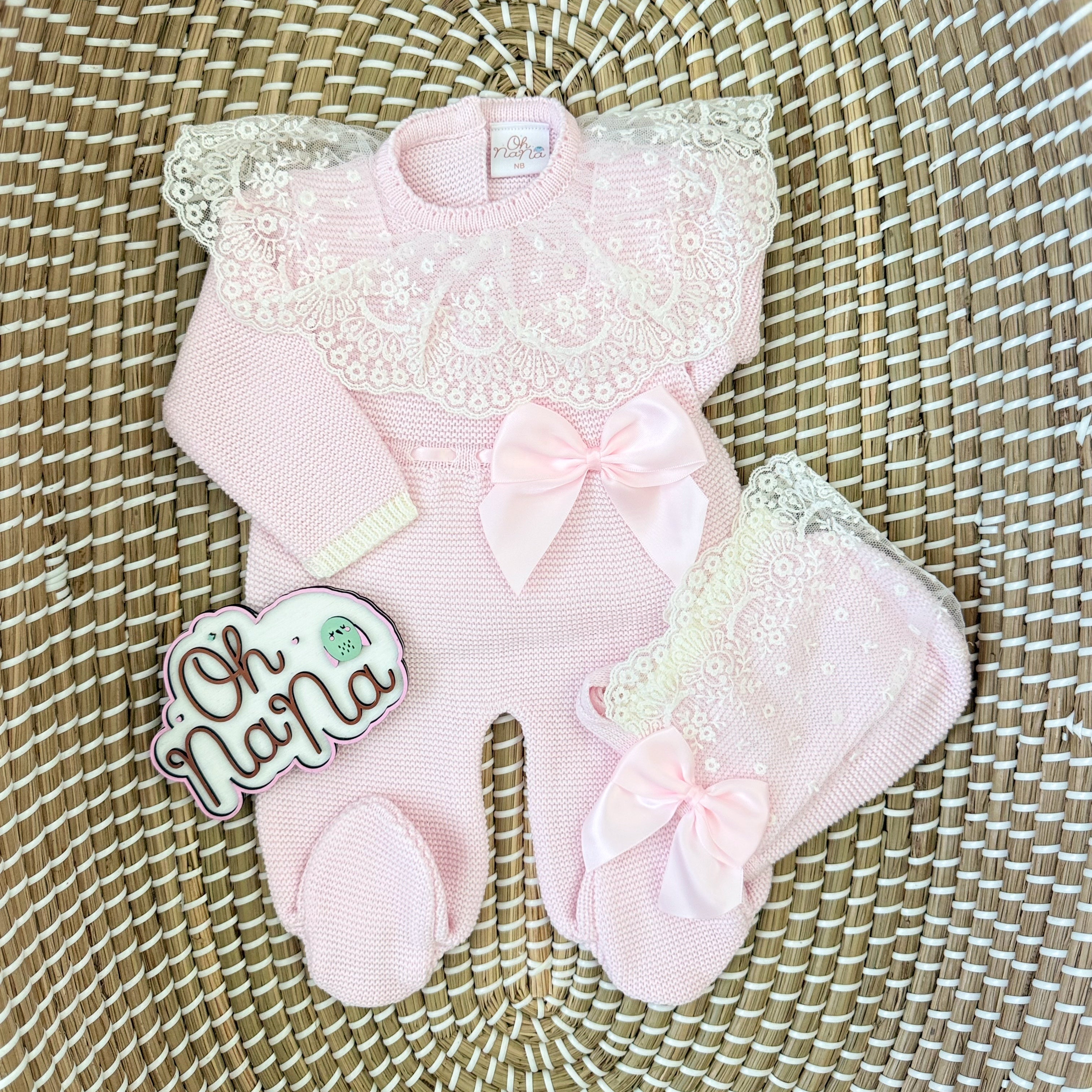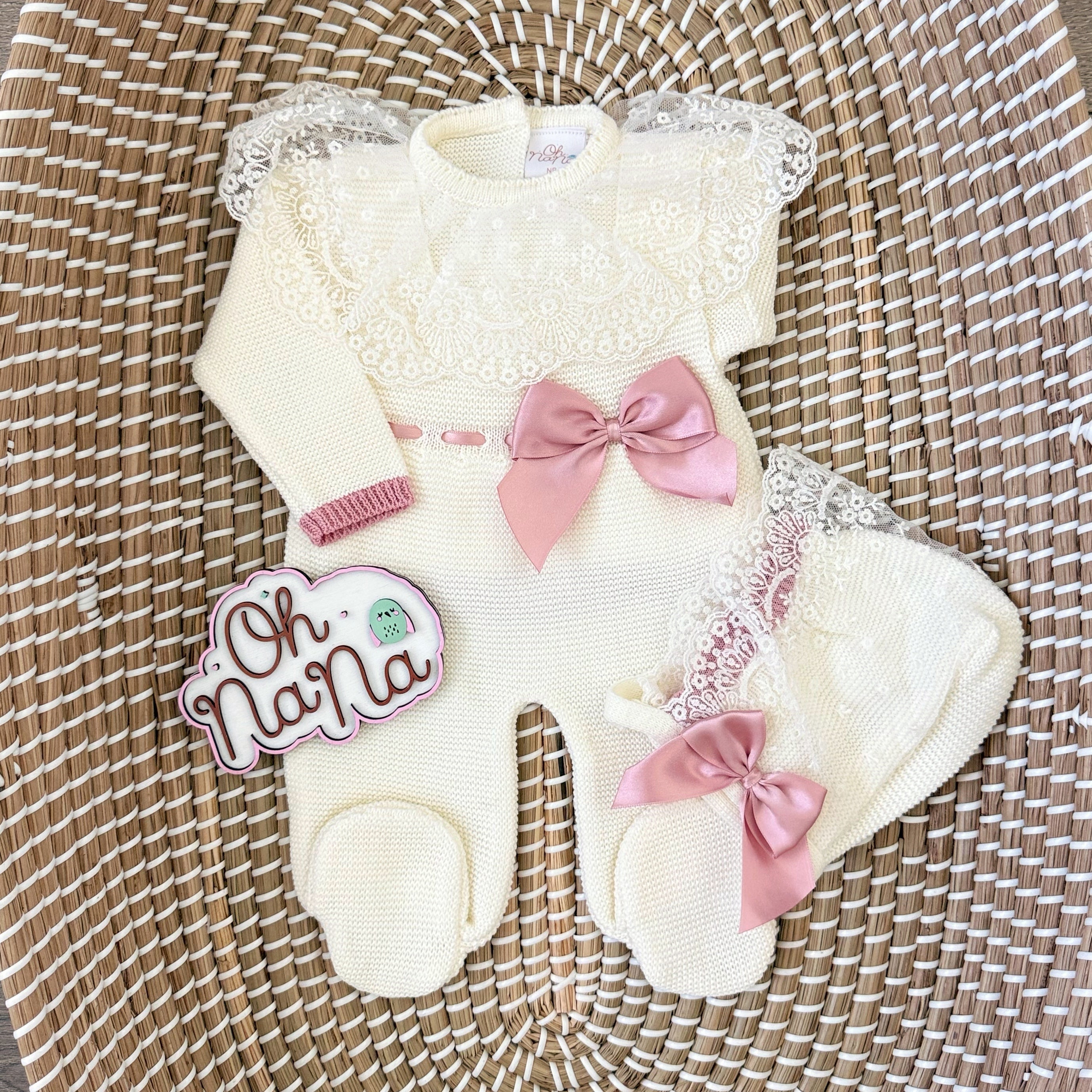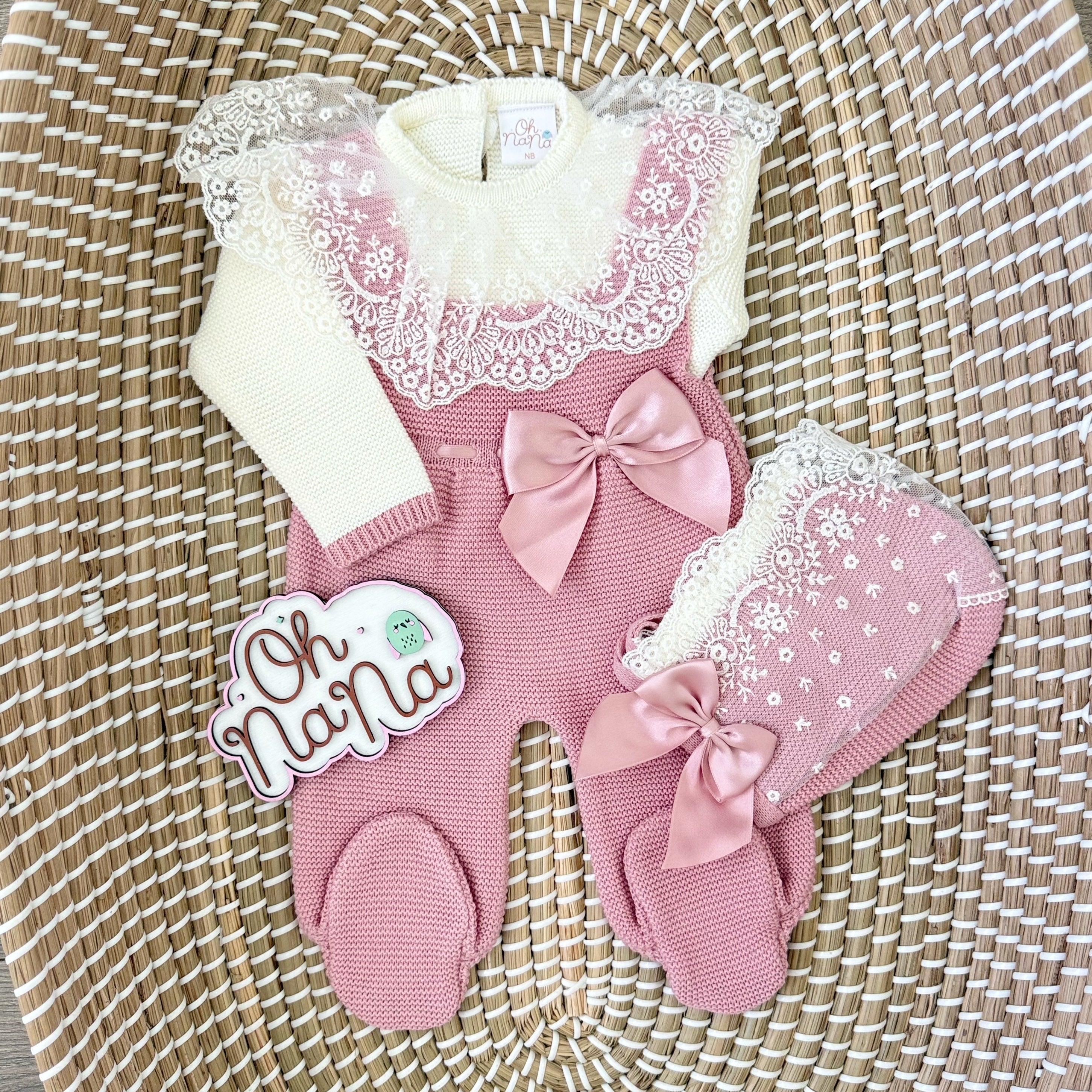 Elegance Newborn Three Piece Outfit (Pink/Ivory)