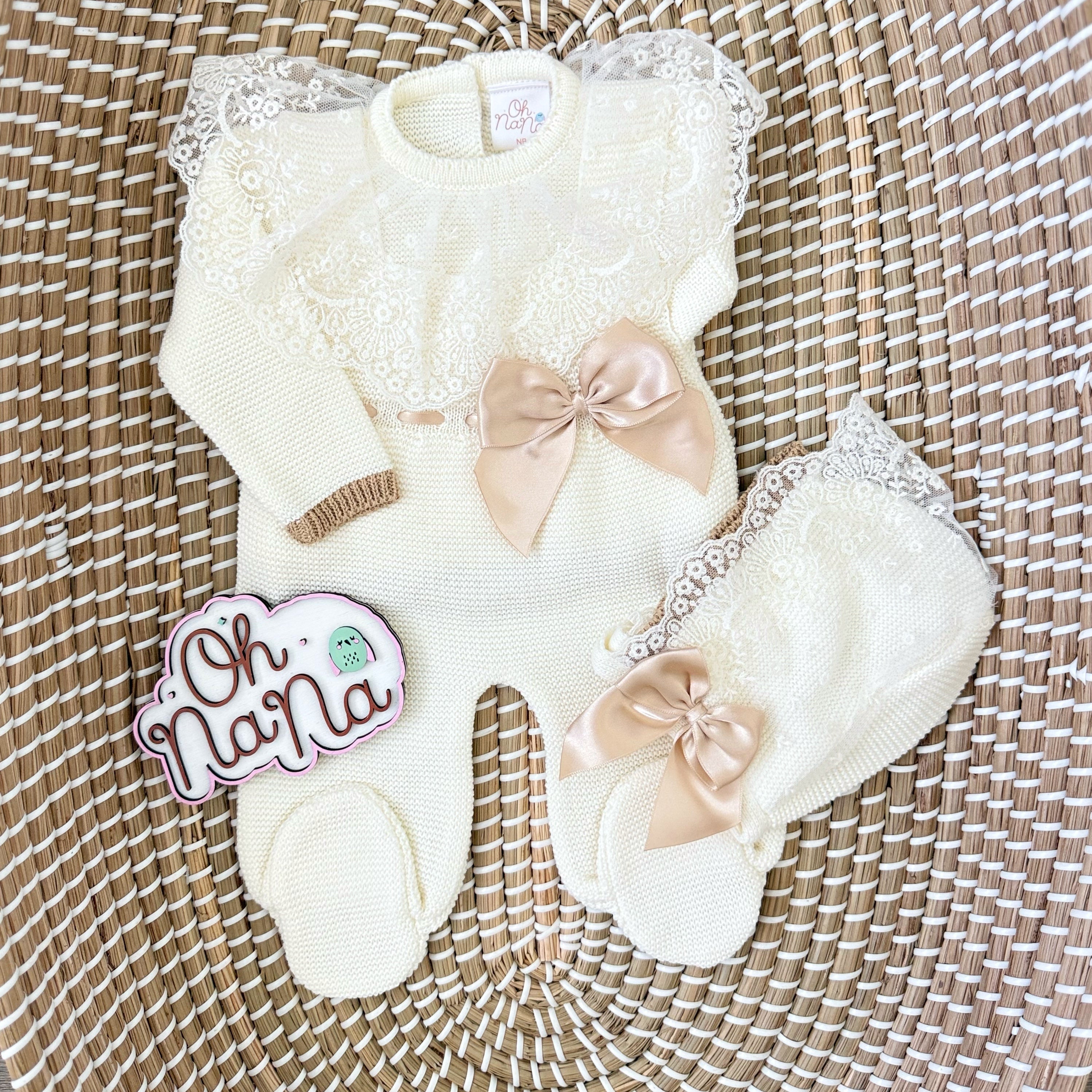Elegance Newborn Three Piece Outfit (Cream/Beige)
