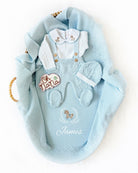 • Four pieces are included: sweater, romper, bonnet and Horse personalized blanket