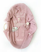 - Four pieces are included: sweater, pants, bonnet and matching blanket