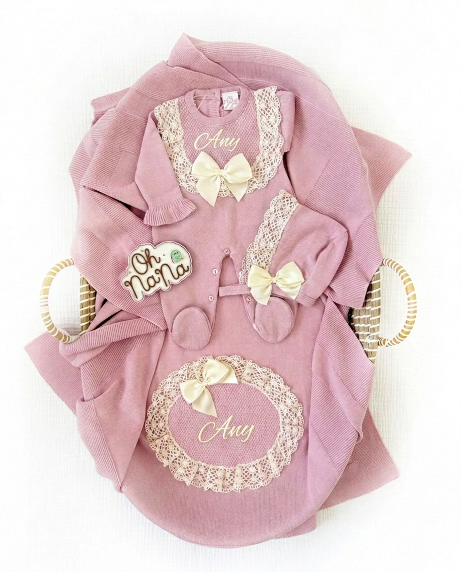 Salma + Personalized Blanket Set (Dusty Pink/Ivory)