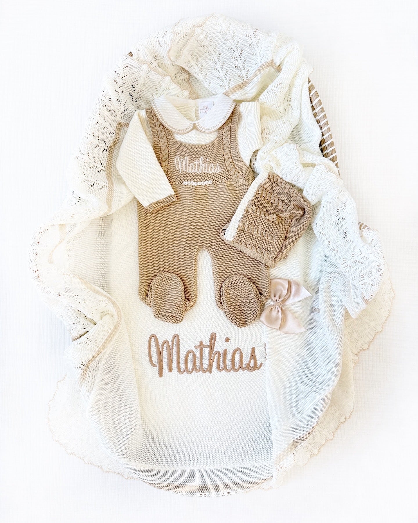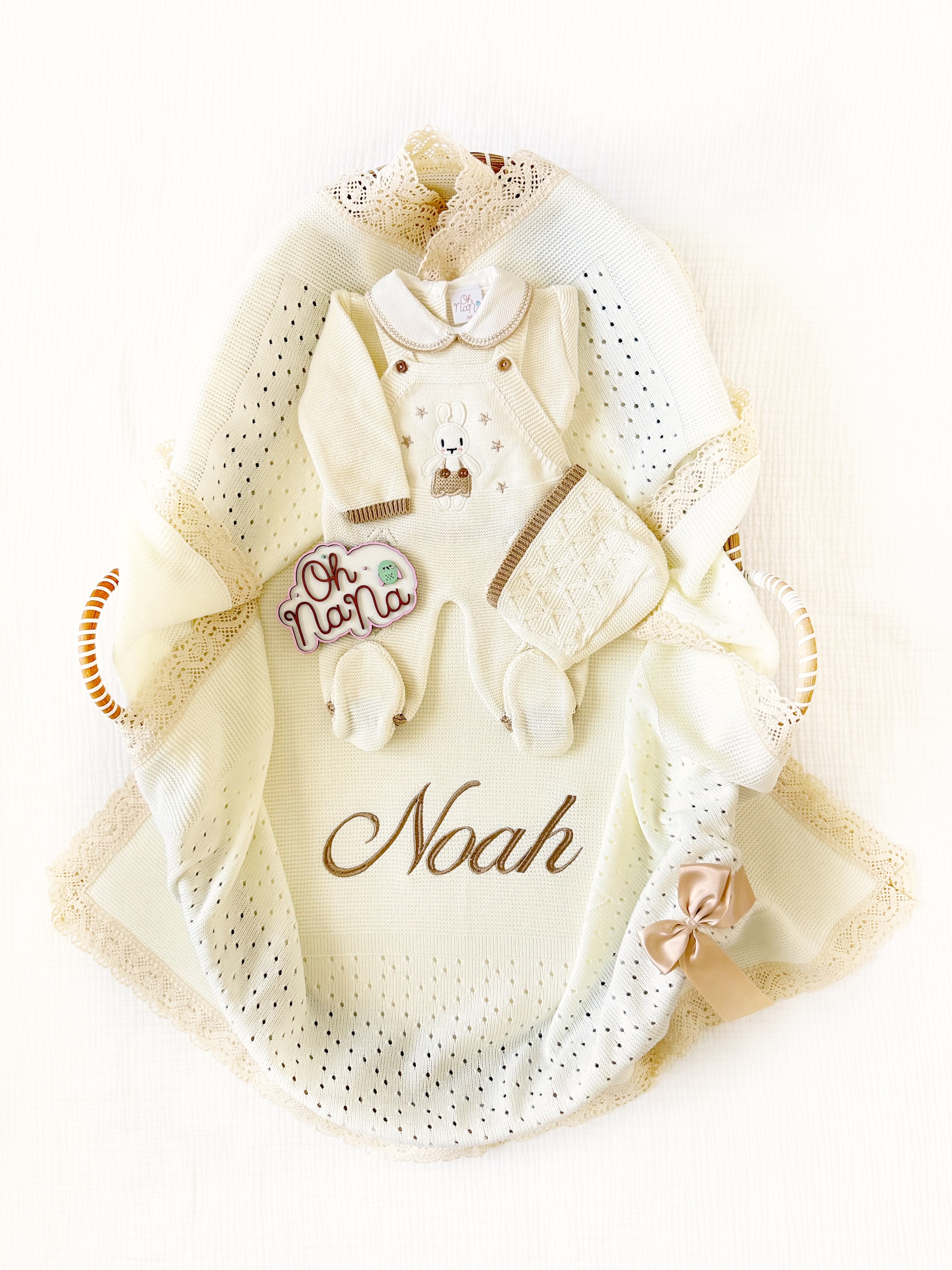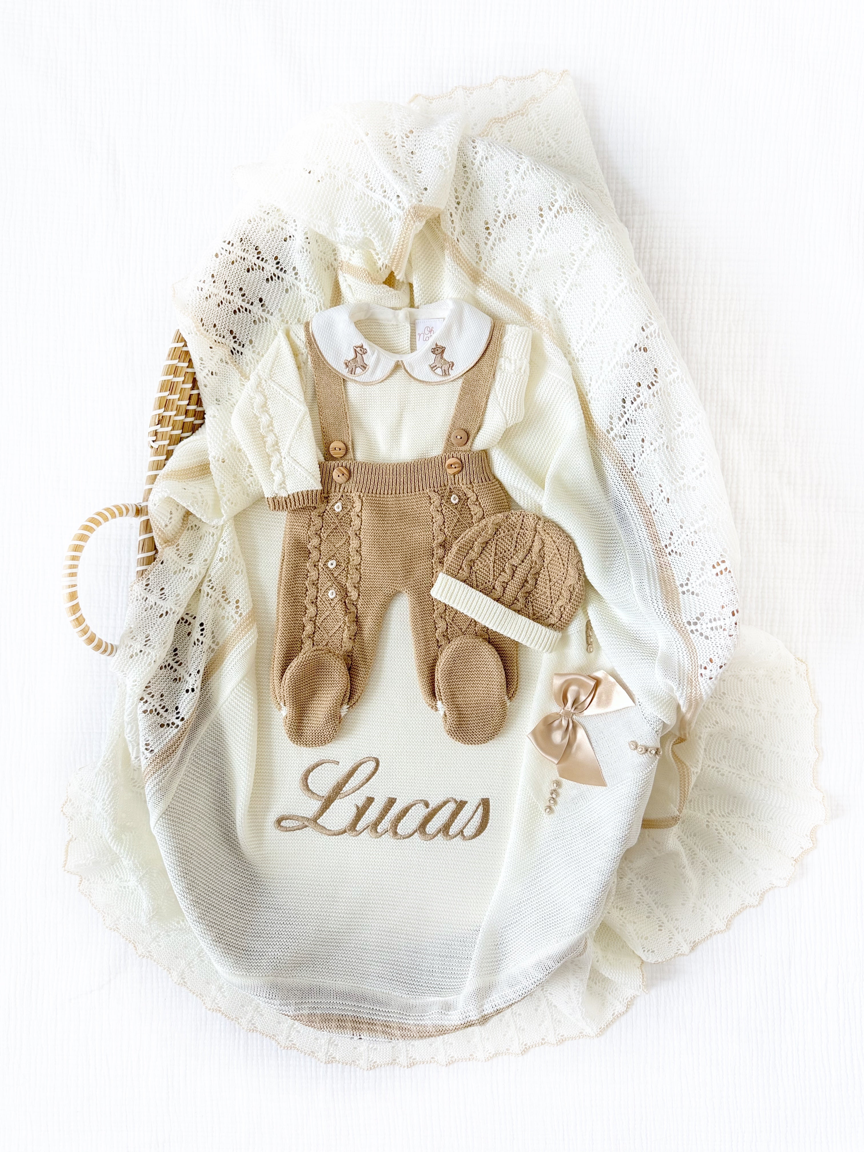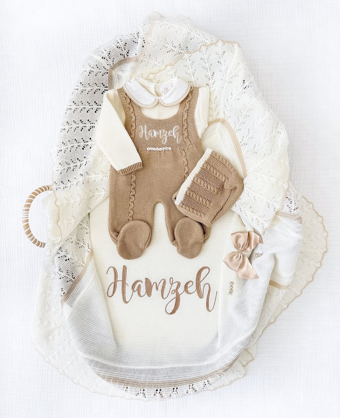Rihan + Personalized Blanket Set (Beige/Ivory)
