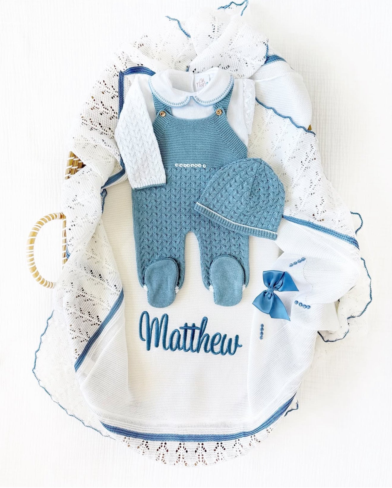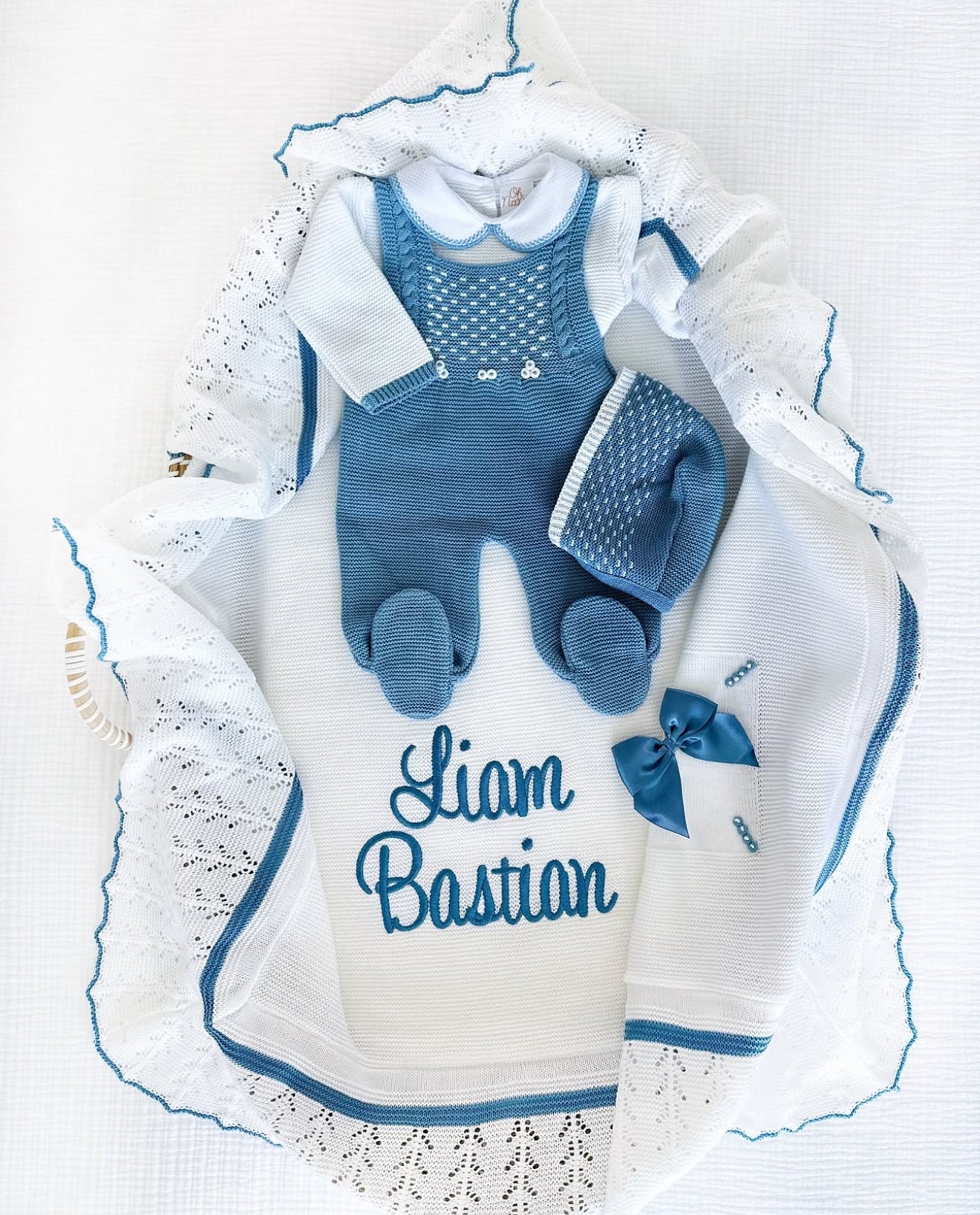 Petter Outfit + Blanket Set (White/Light Blue)