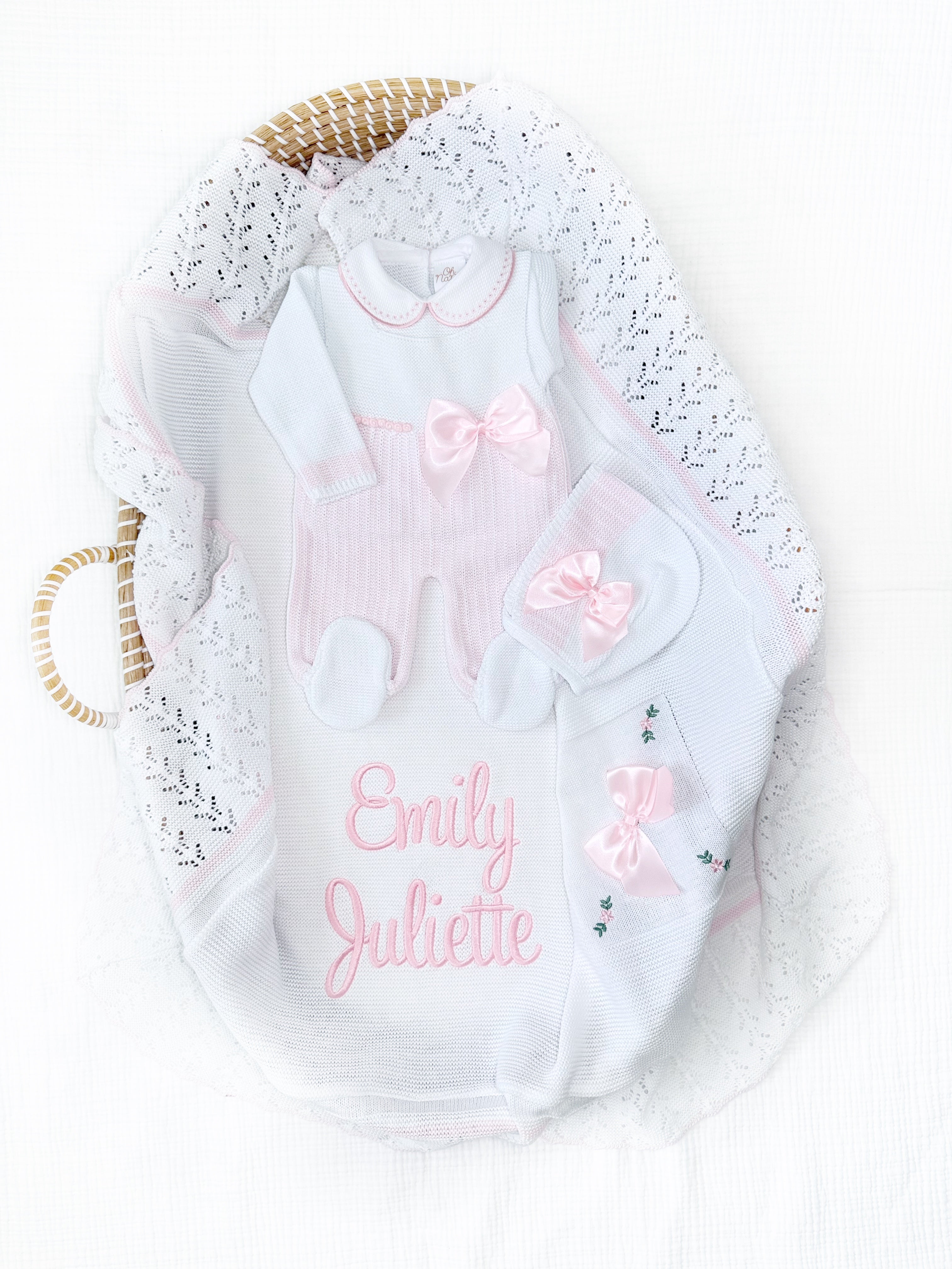 Emily + Personalized Blanket Set (White/Light Pink)