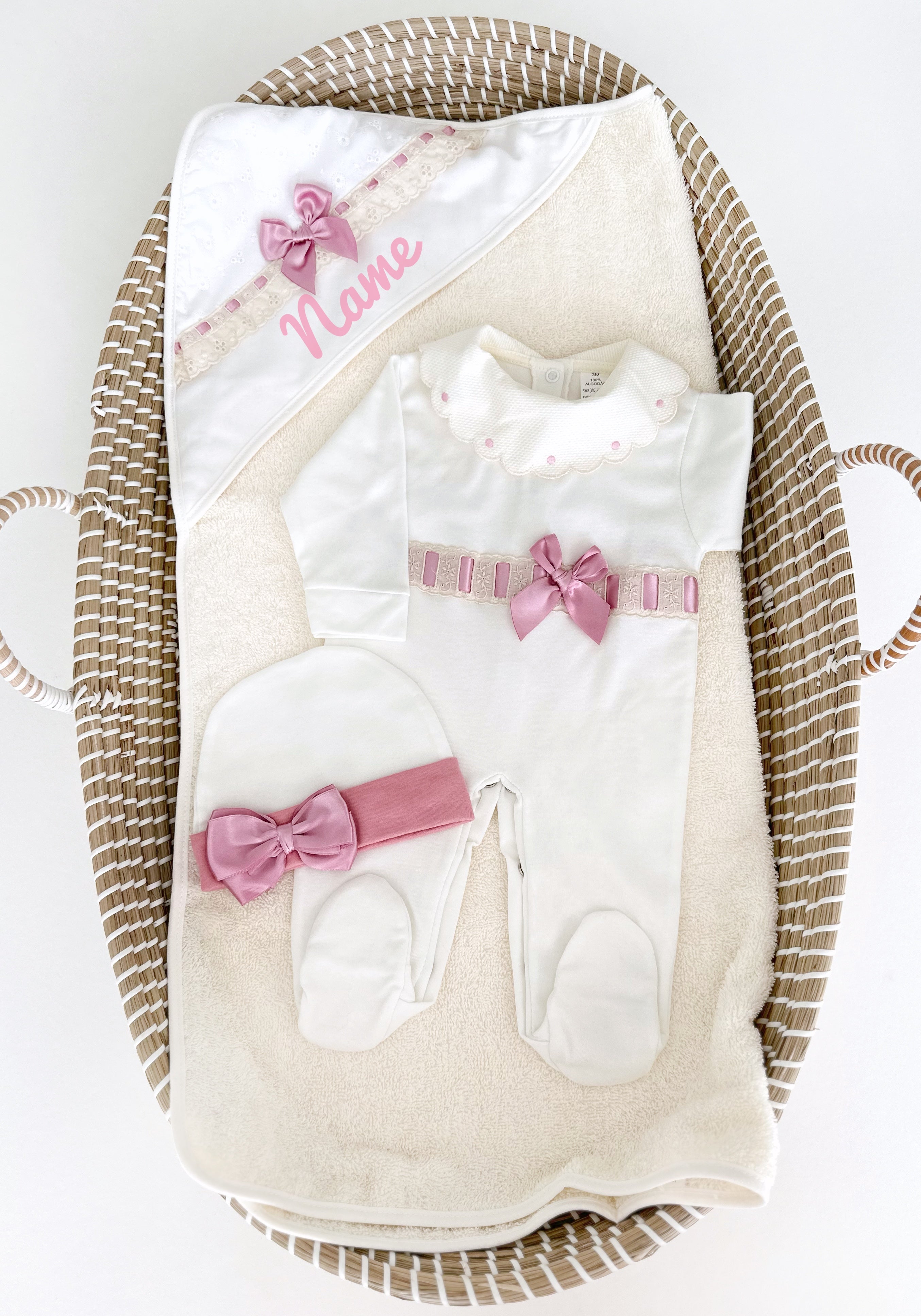 Personalized Pijama + Towel + Bib Set (Light Pink)