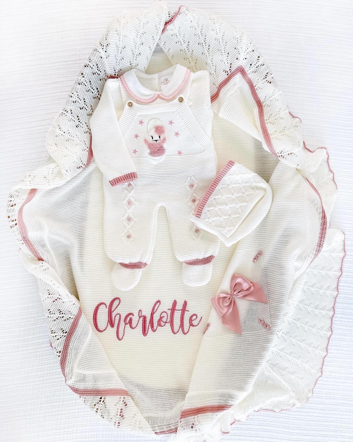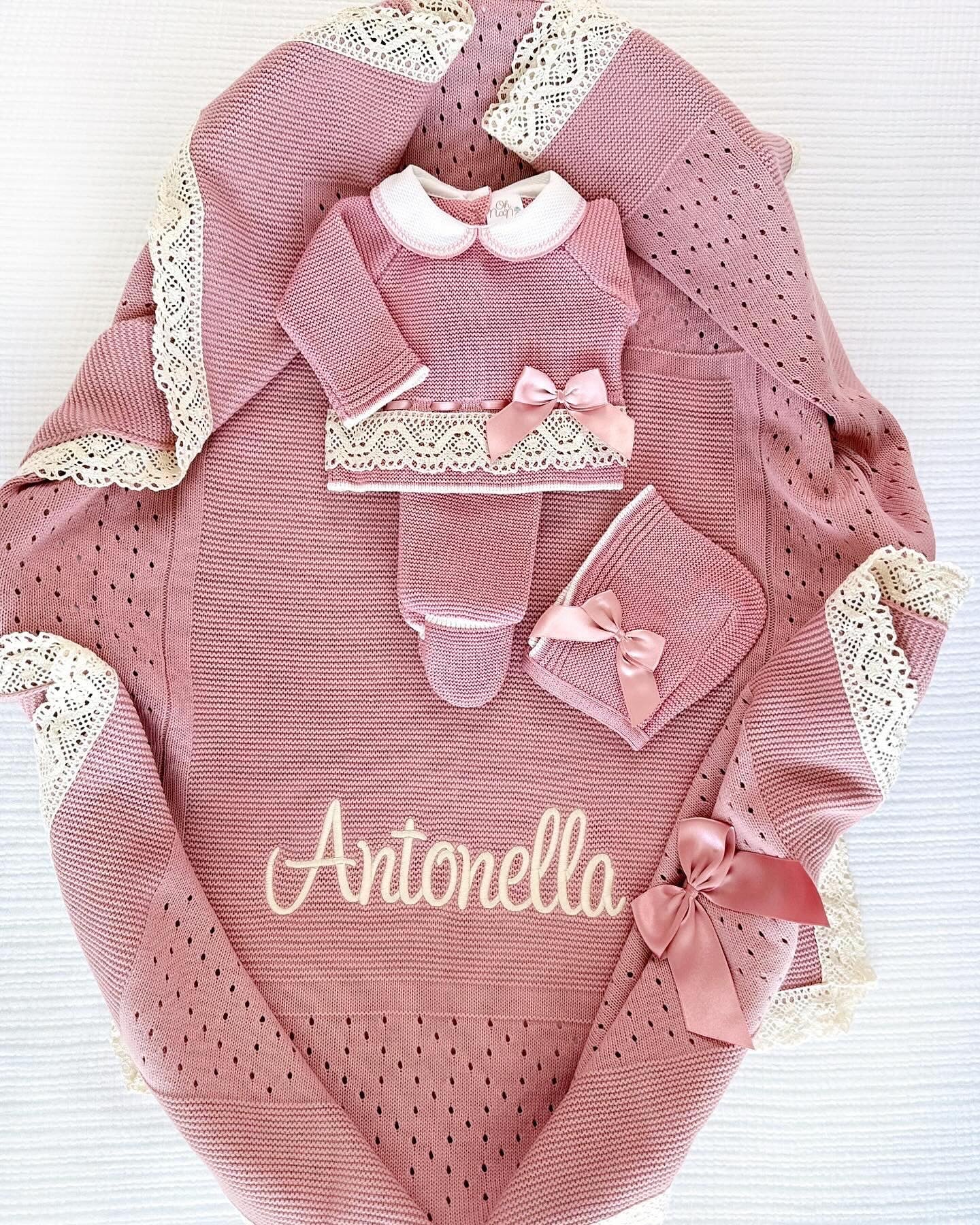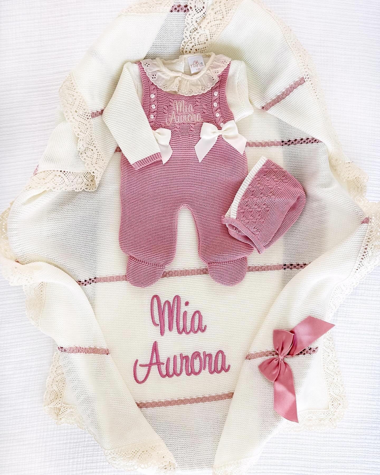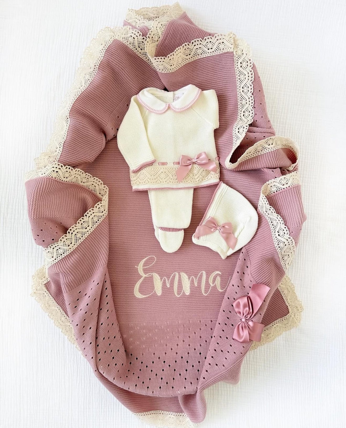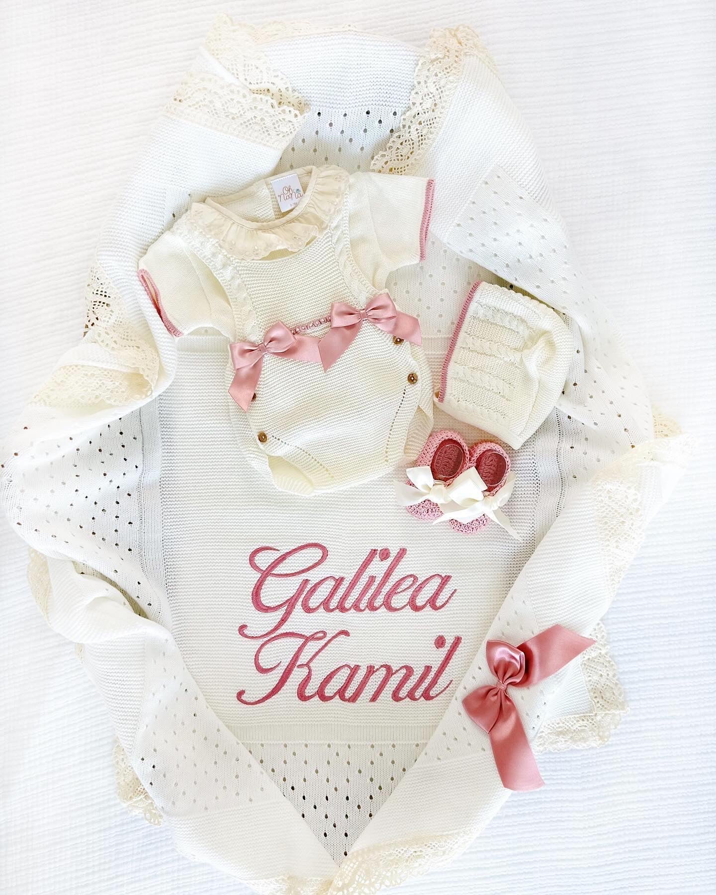 Paula + Personalized Blanket Set (Ivory Dusty Pink)