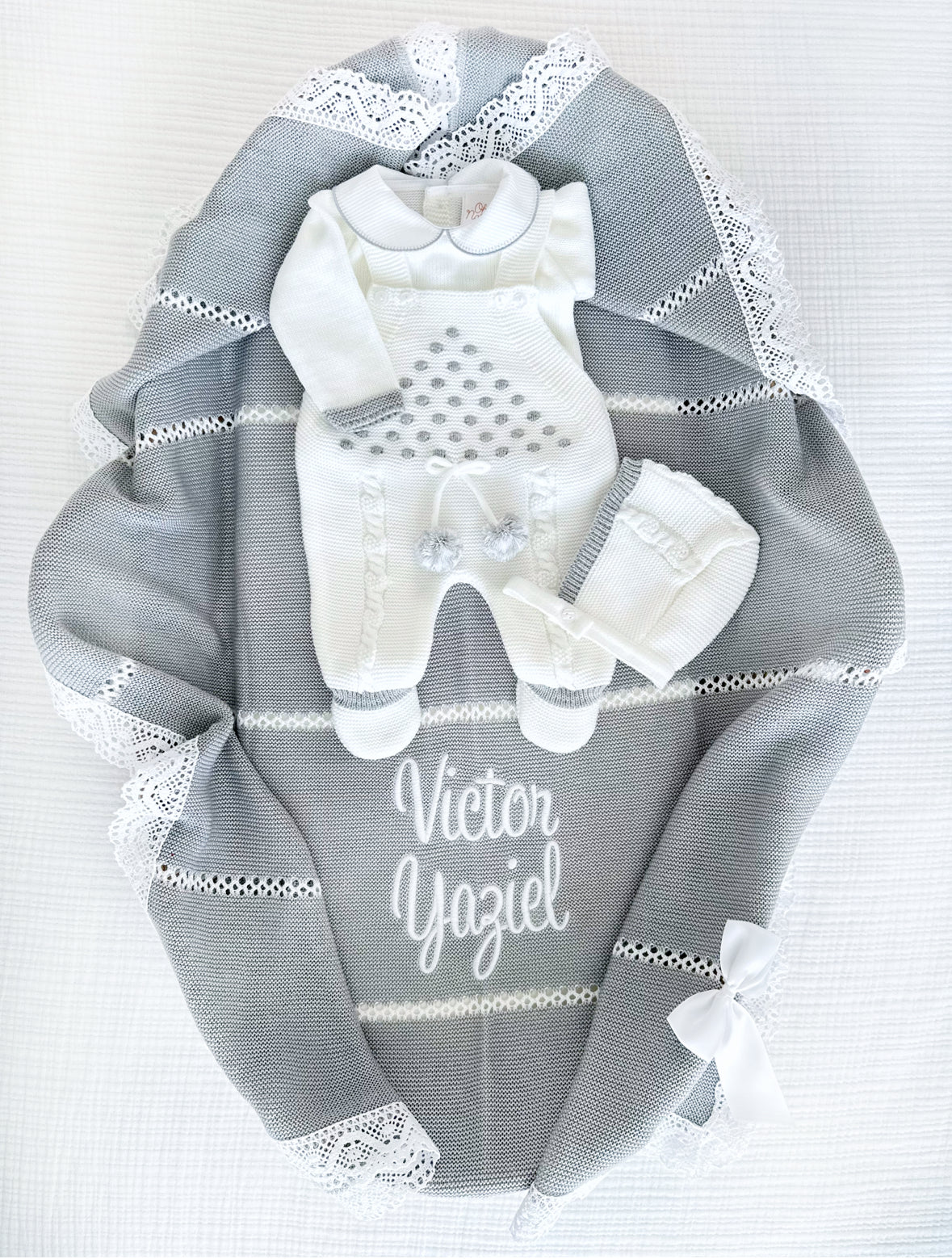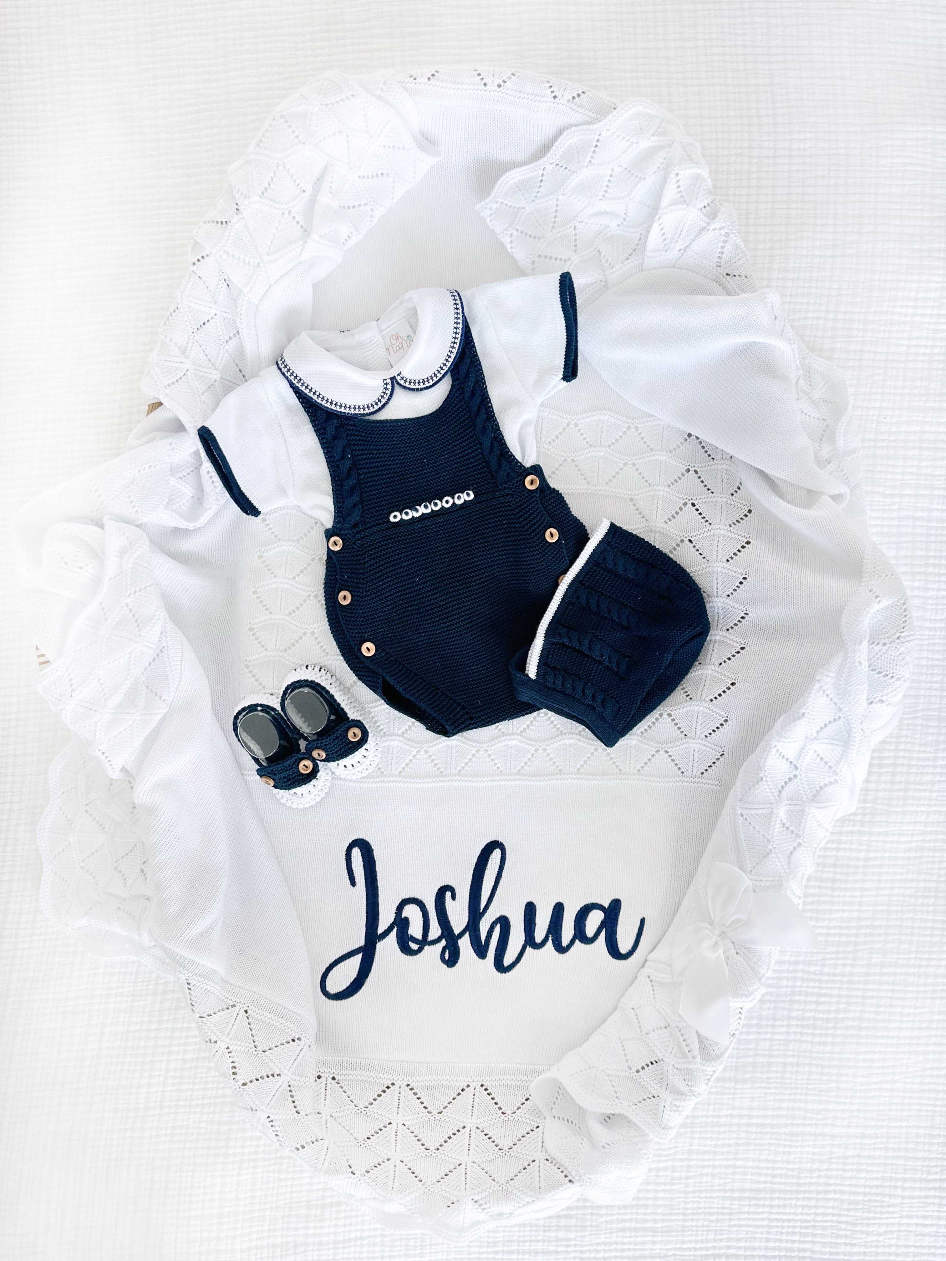 Paul + Personalized Blanket Set (Navy Blue/White)