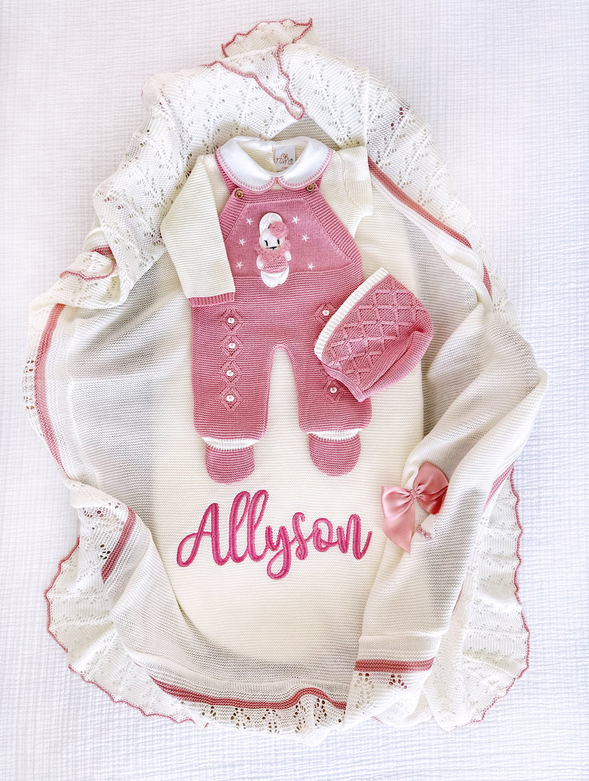 Nenny + Personalized Blanket Set (Ivory/Dusty Pink