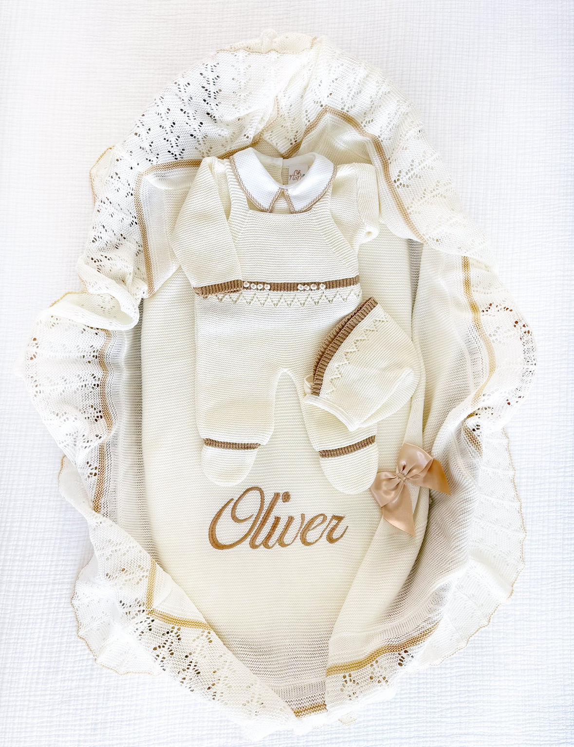 Platino + Personalized Blanket + Pillow Set (Ivory/Camel)