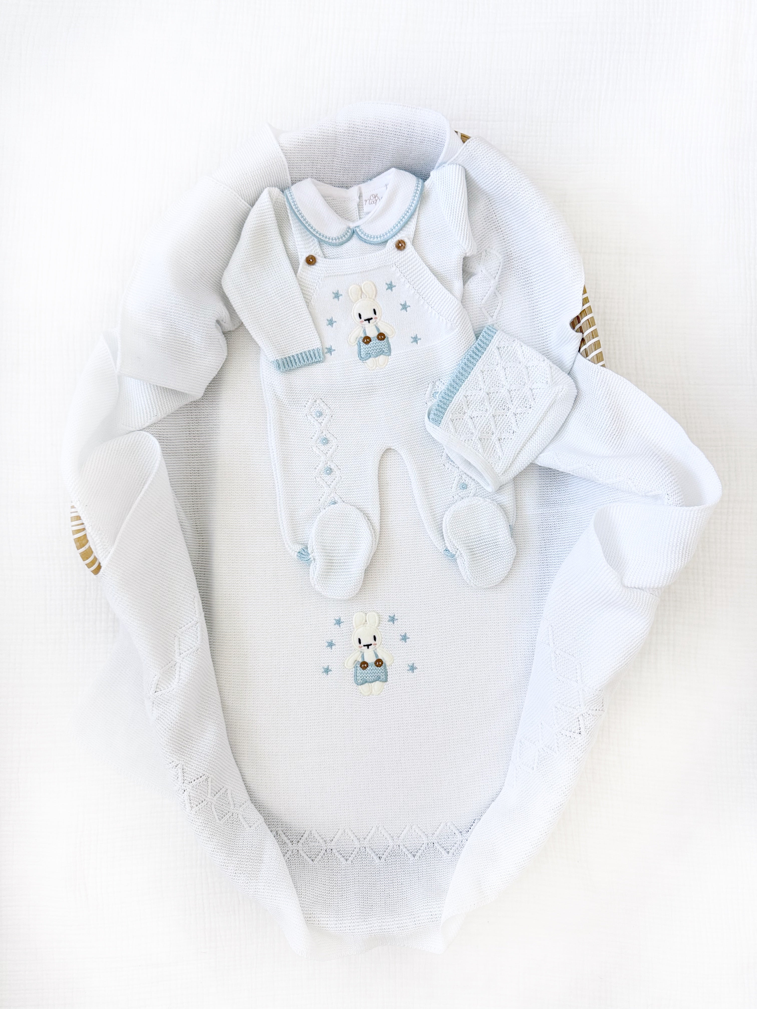 Sweet Bunny Outfit + Blanket Set (White/Light Blue)