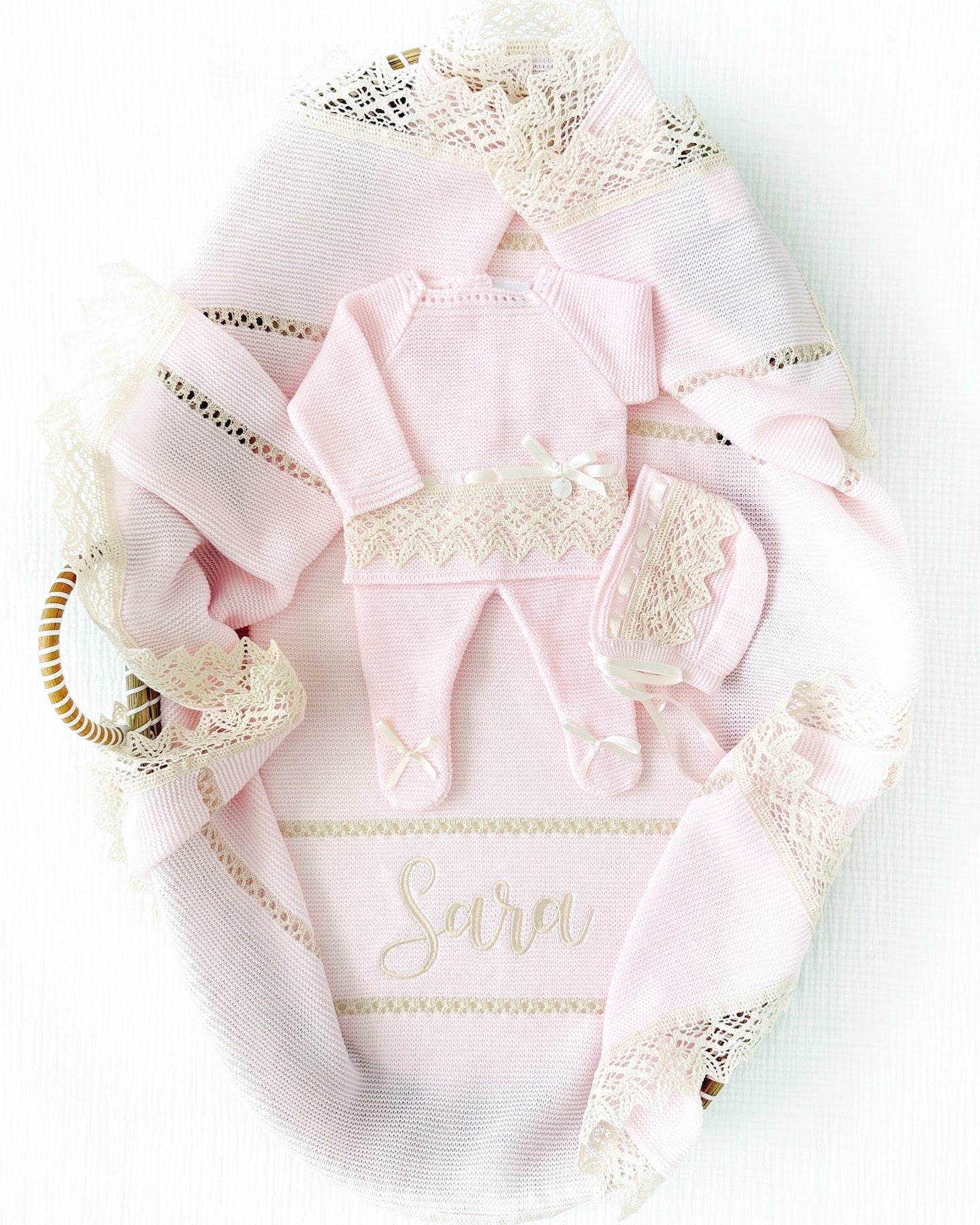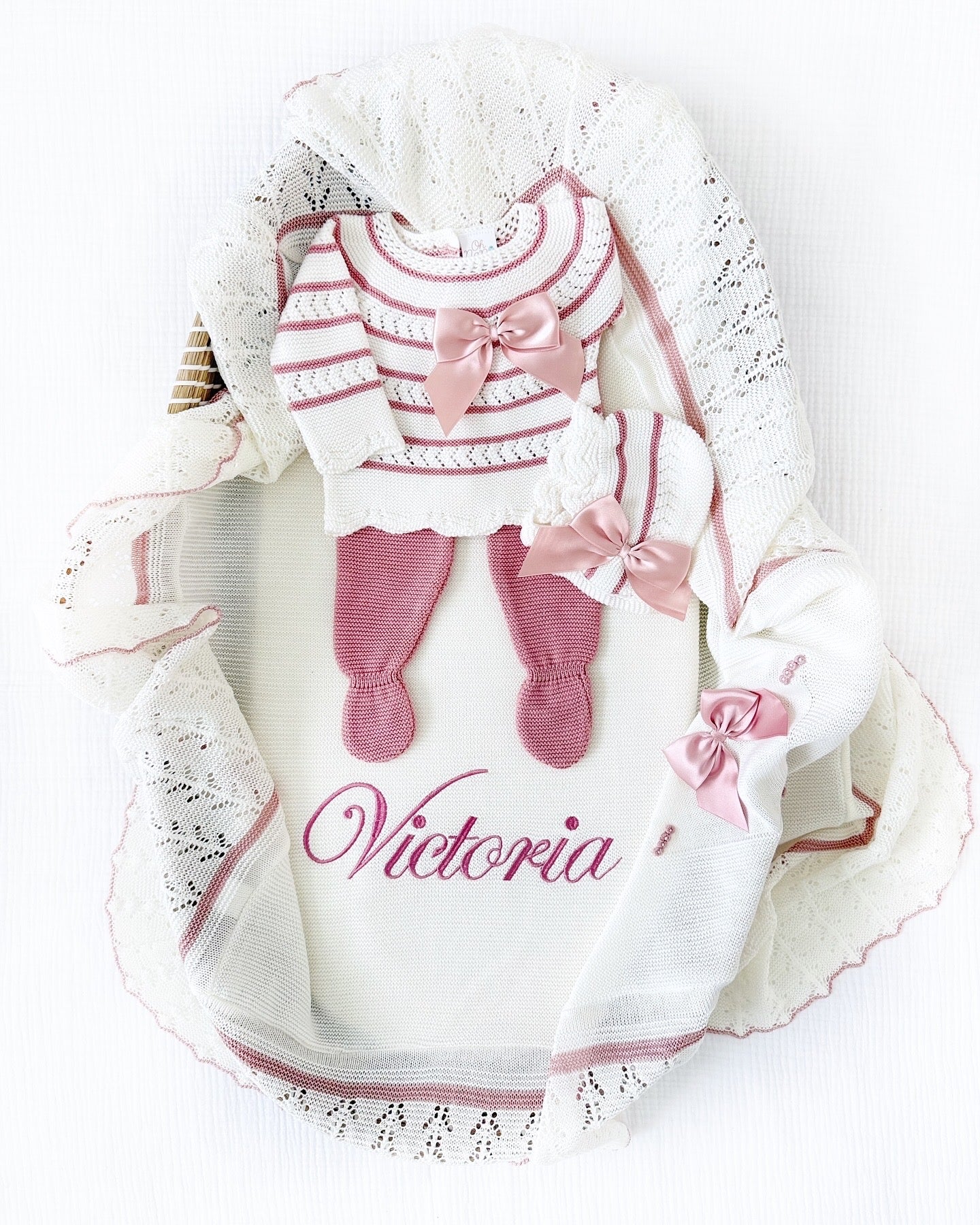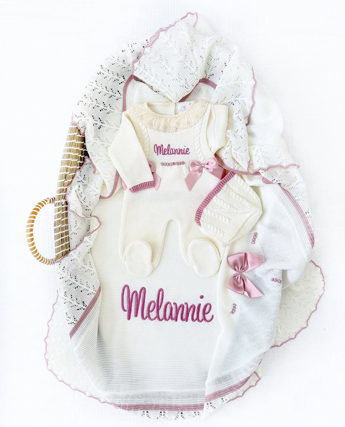 Adriana + Personalized Blanket Set (Dusty Pink/Ivory)