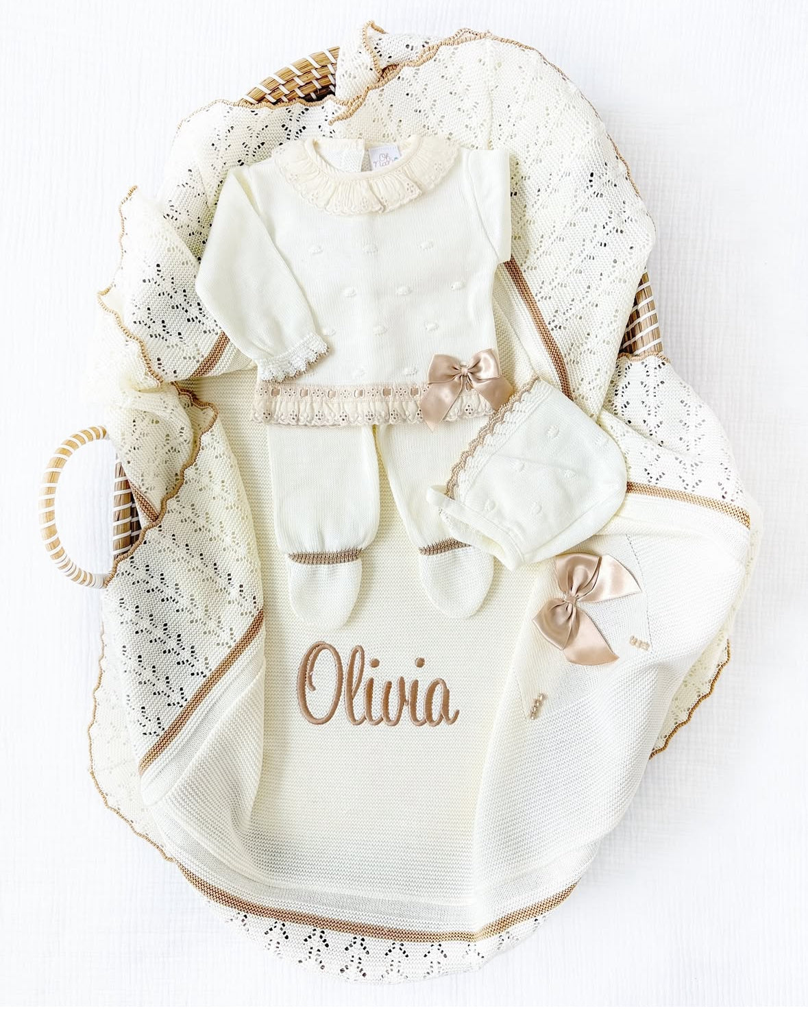 Romana + Personalized Blanket Set (Ivory/Beige)