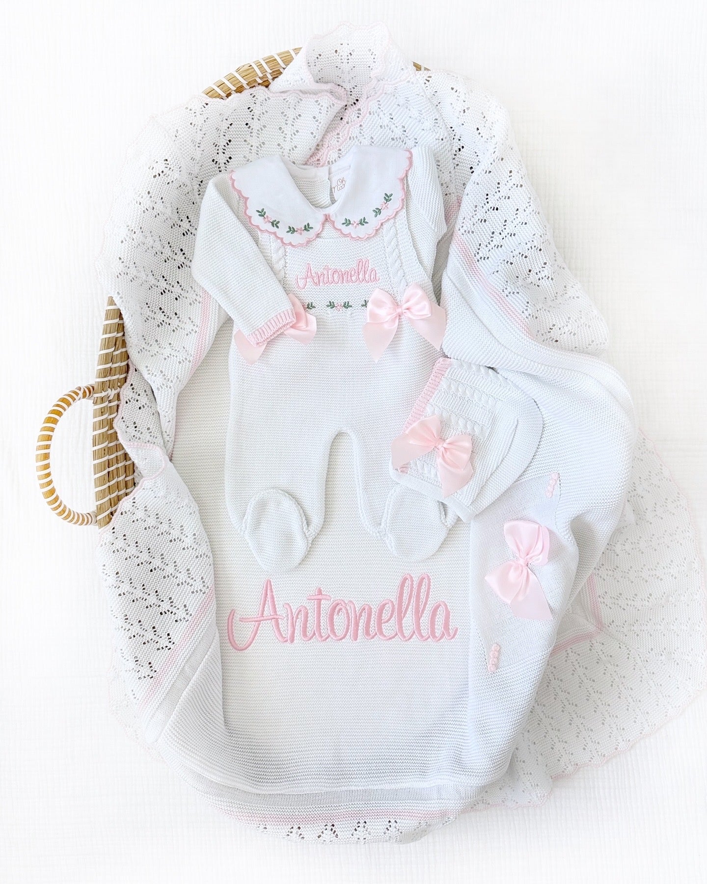 Paula + Personalized Blanket Set (Ivory/Dusty Pink)
