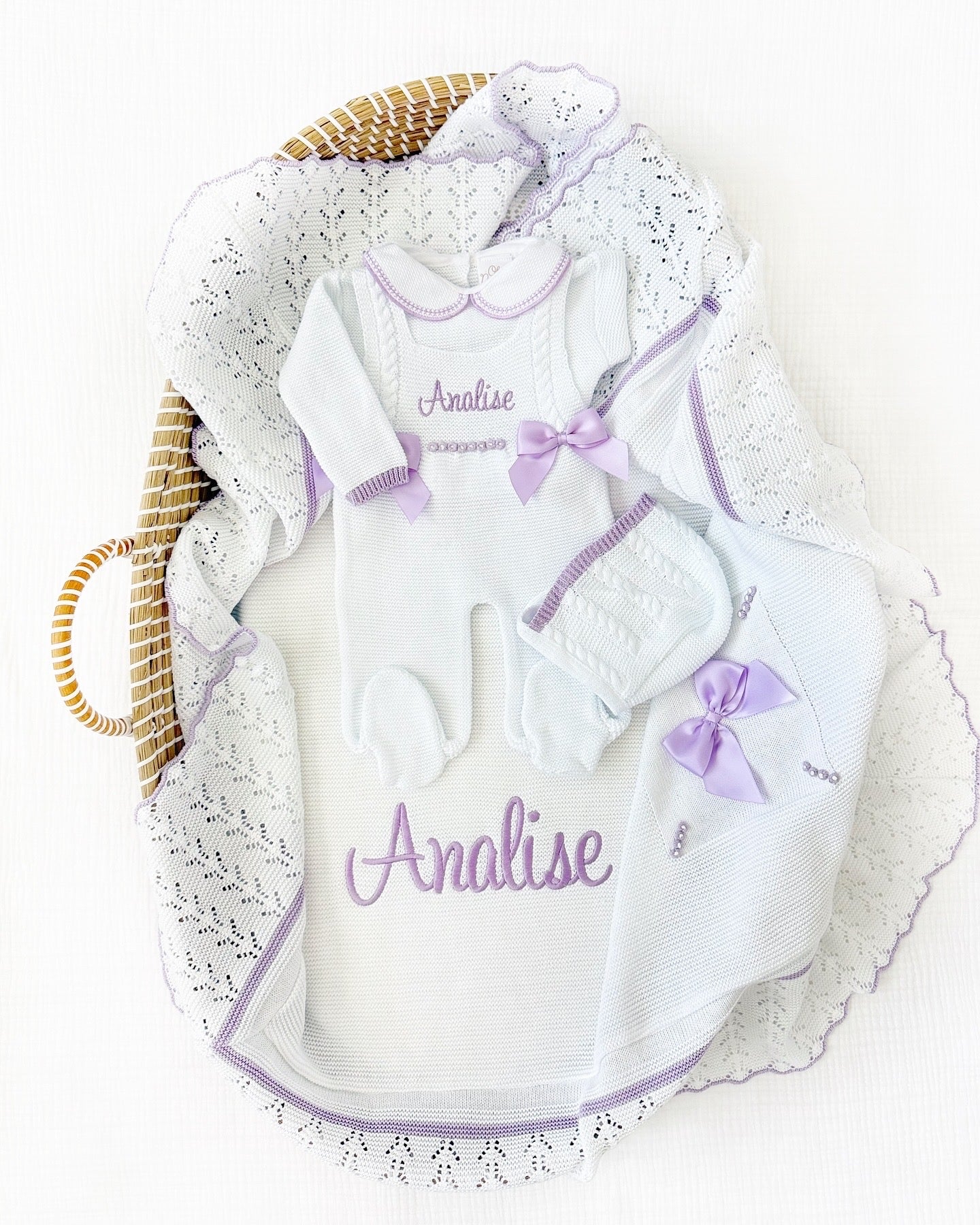 Paula + Personalized Blanket Set (White/Purple)