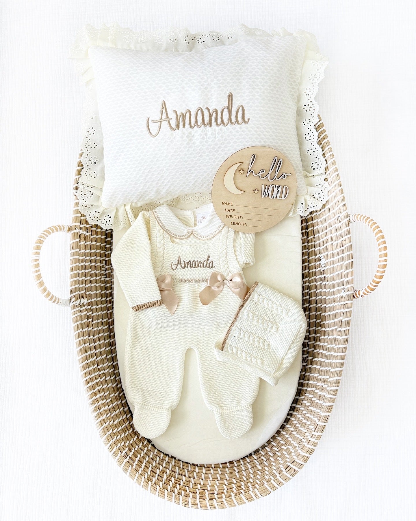 Paula Outfit + Pillow Set + Hello World Sign (Ivory/Beige)