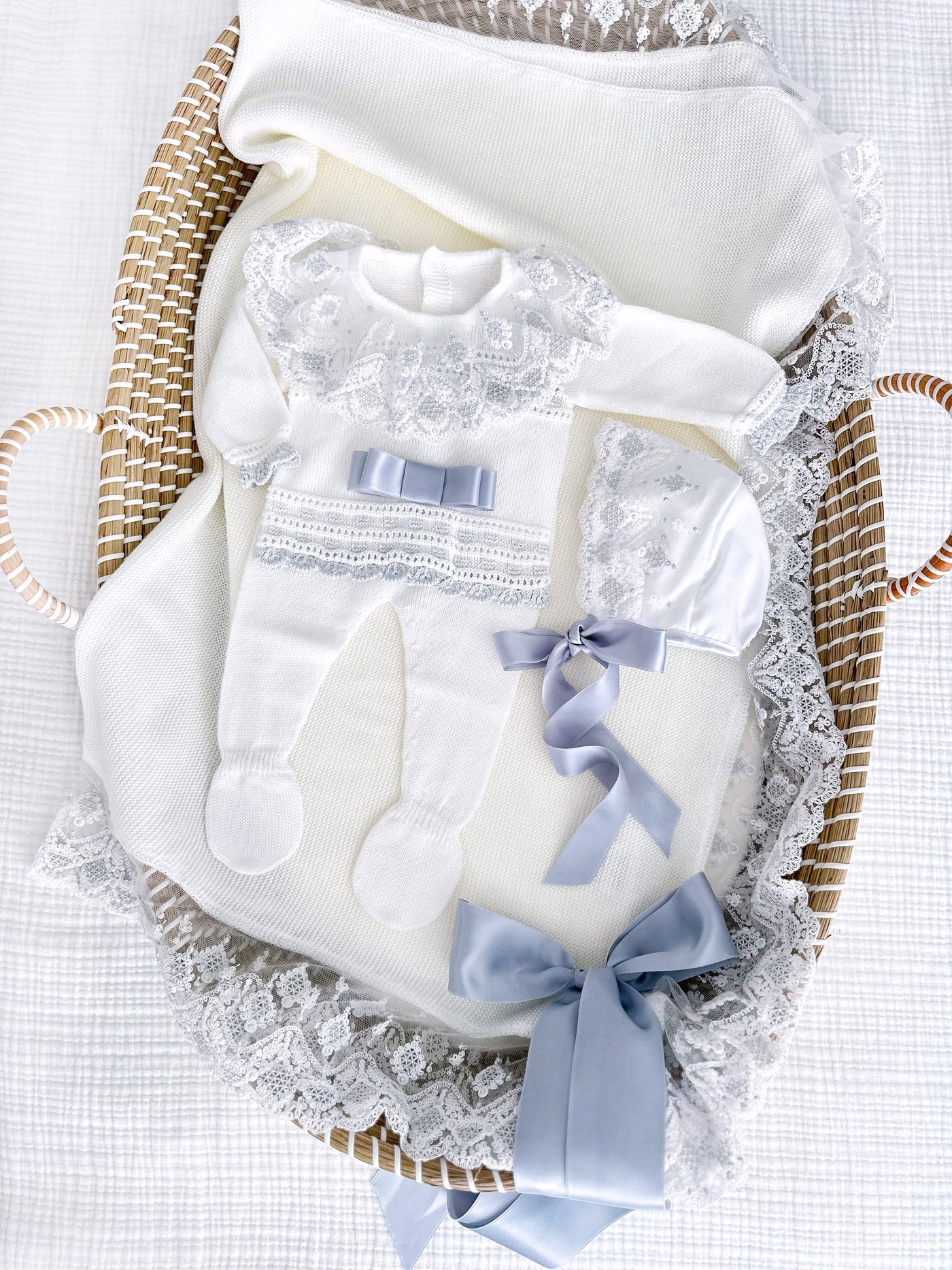 Elegance Newborn Knitted Set (White/Silver)