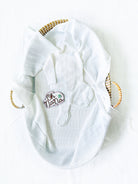 - Four pieces are included: sweater, pants, bonnet and matching blanket