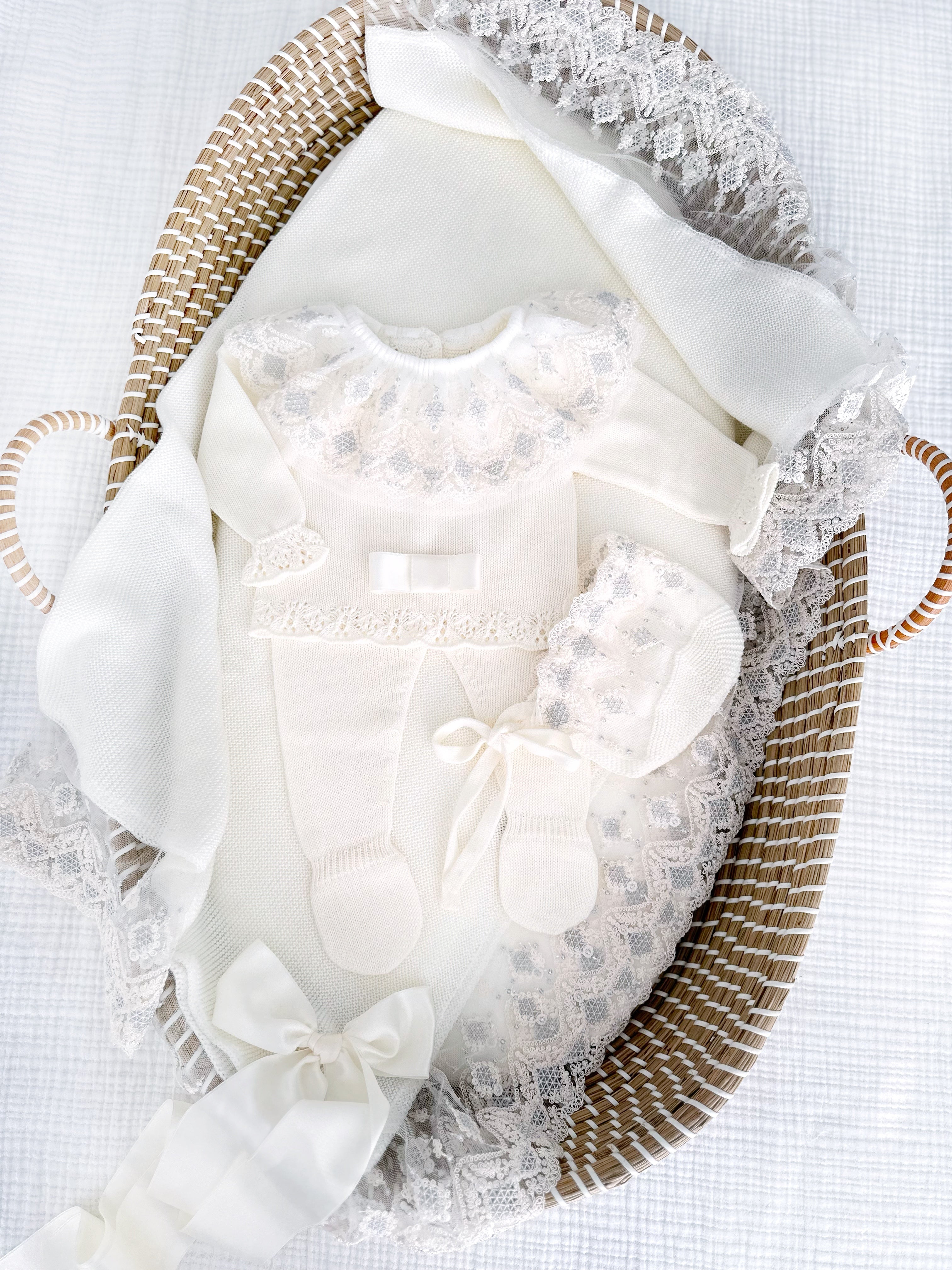 Elegance Newborn Three Piece Outfit (Ivory/Silver)