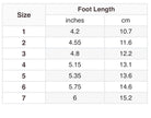 - Whole sizes from Baby/Toddler 1-7