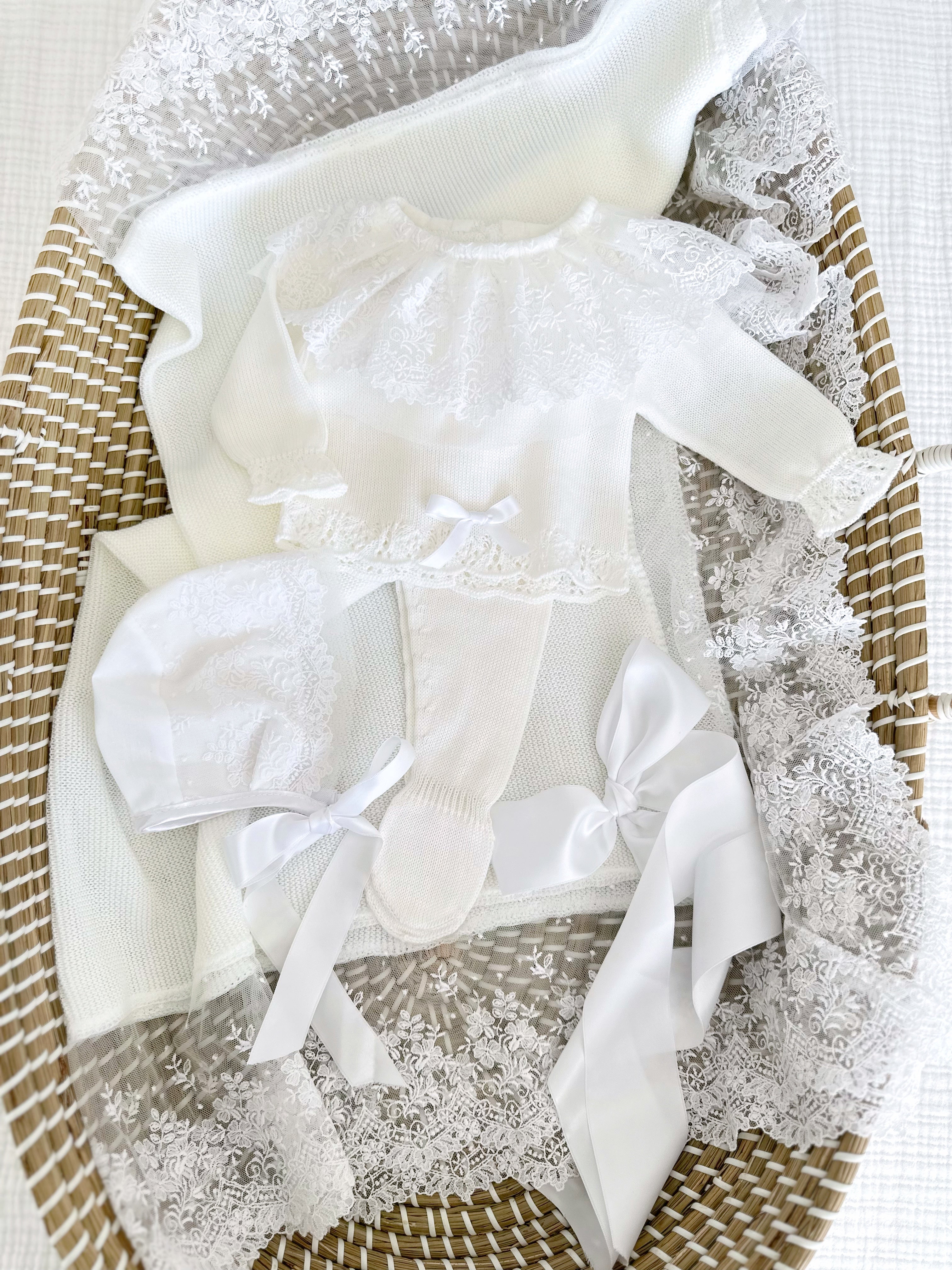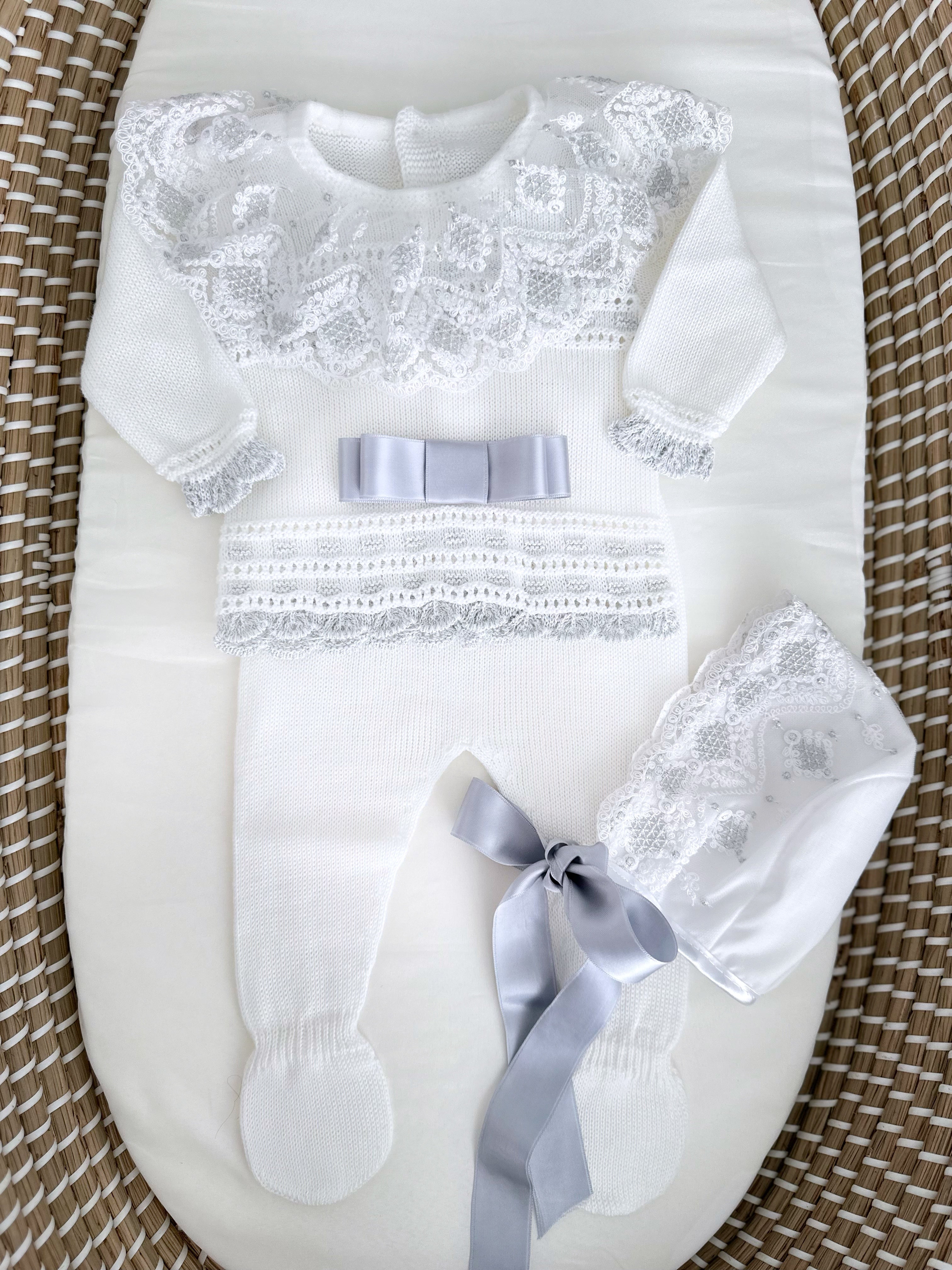 Elegance Newborn Three Piece Outfit (White/Silver)