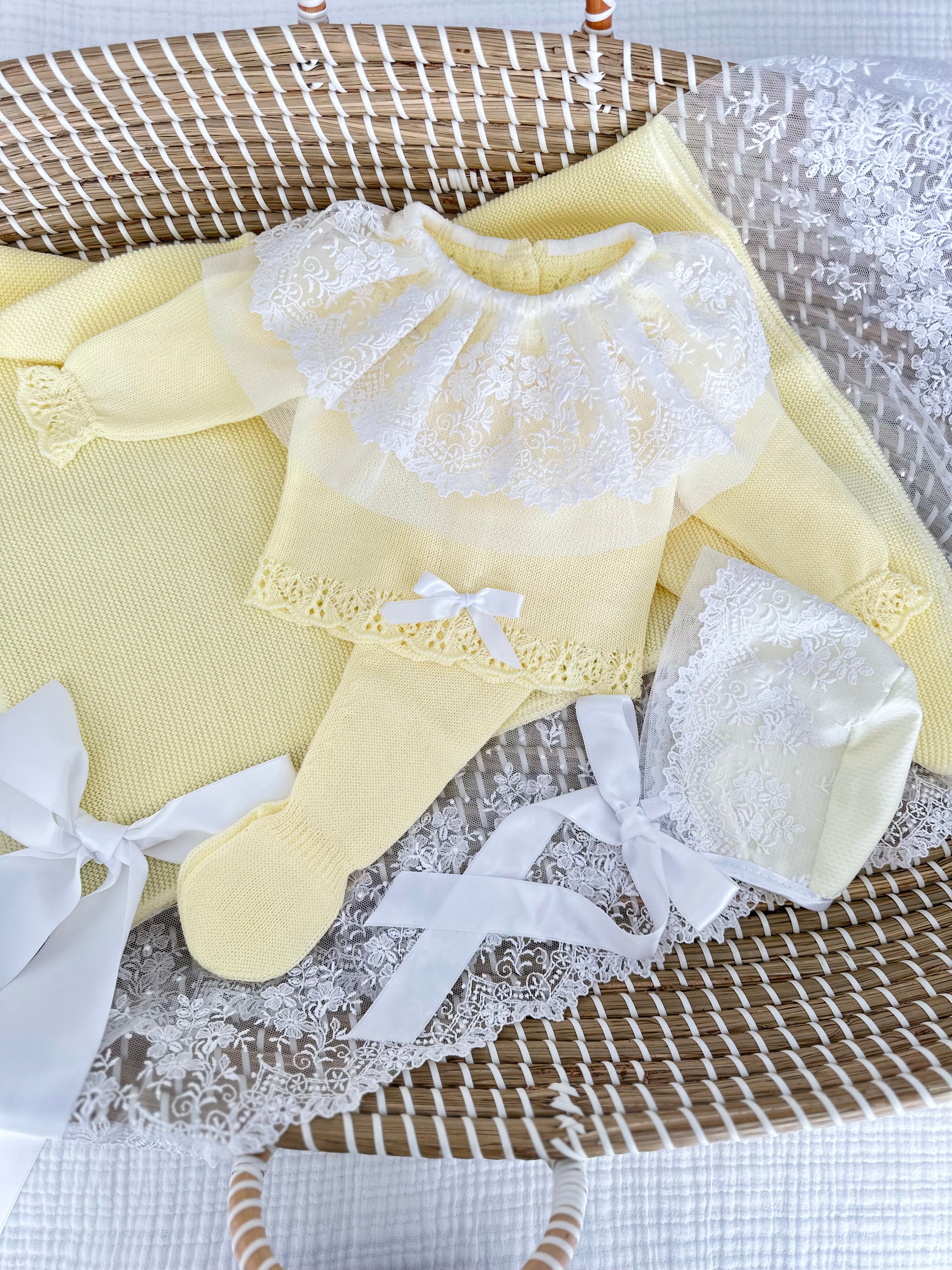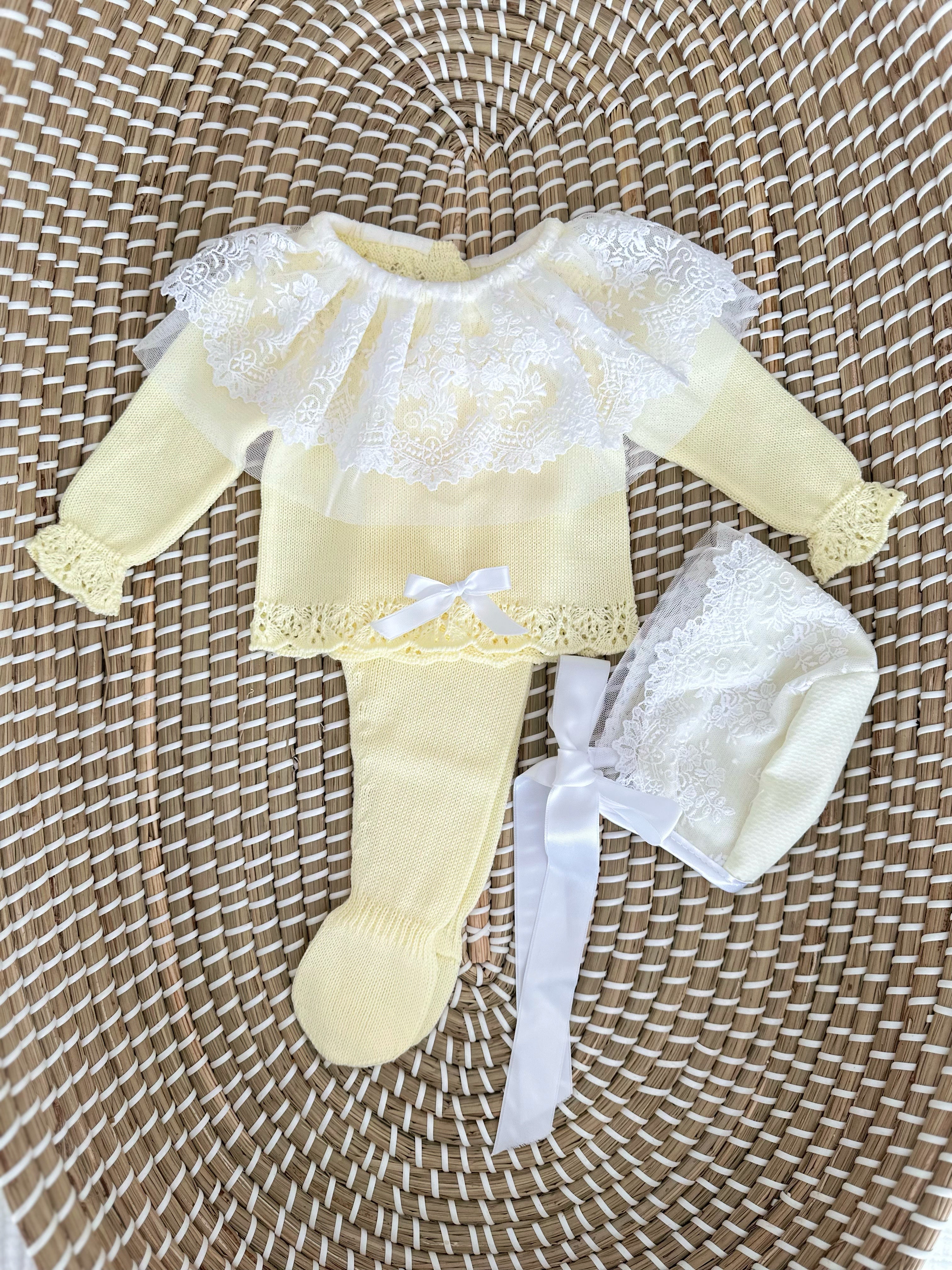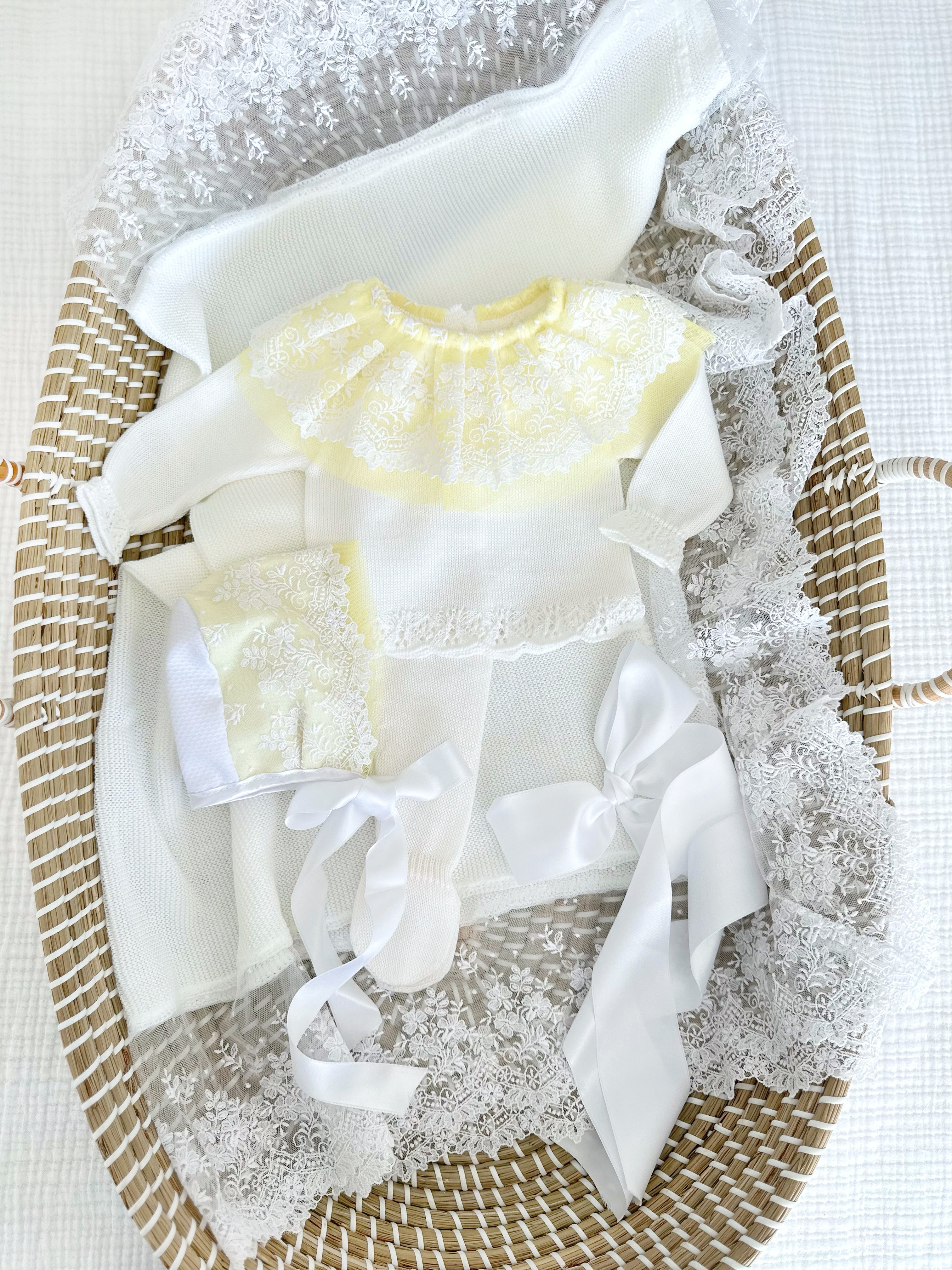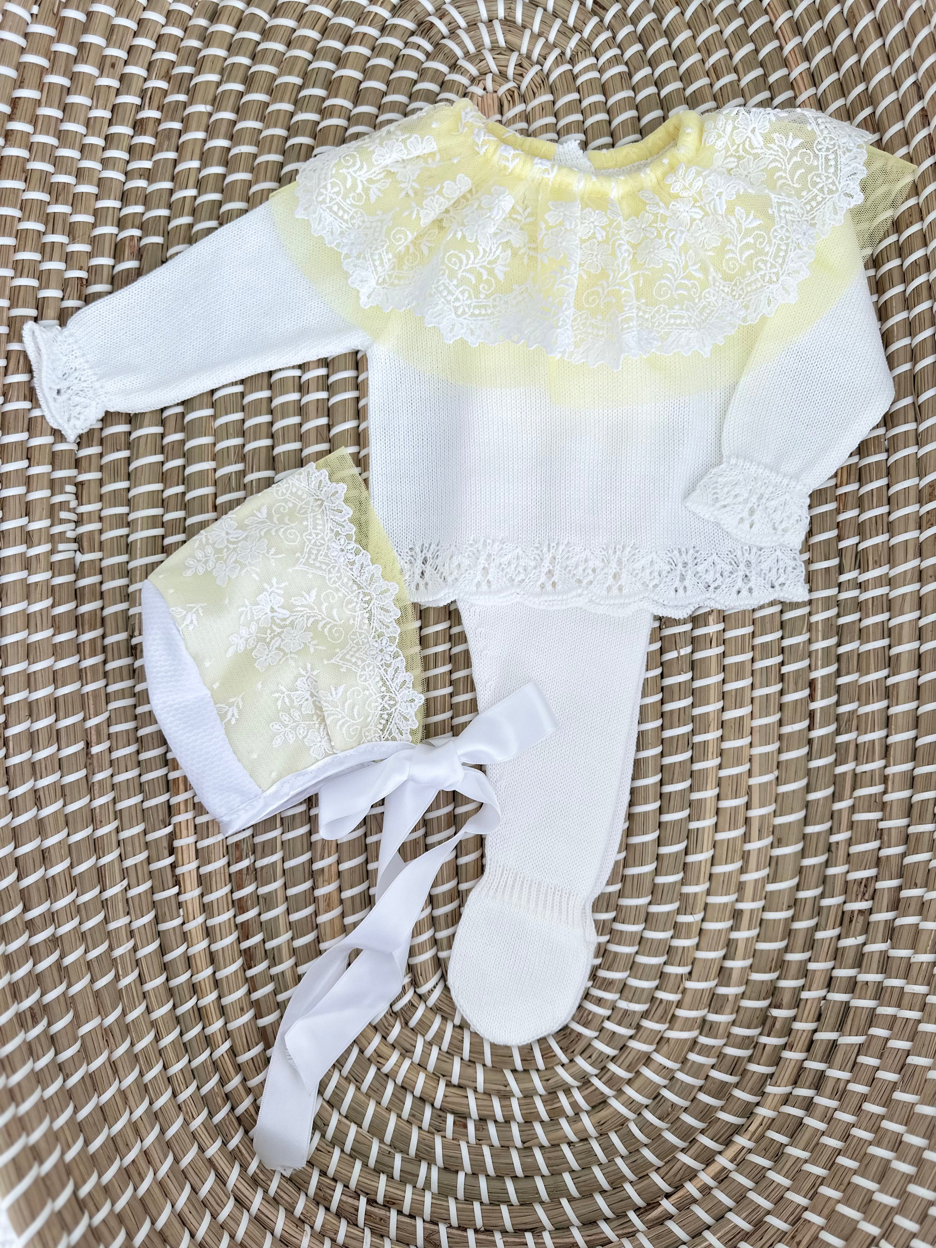 Elegance Newborn Three Piece Outfit (White/Yellow)