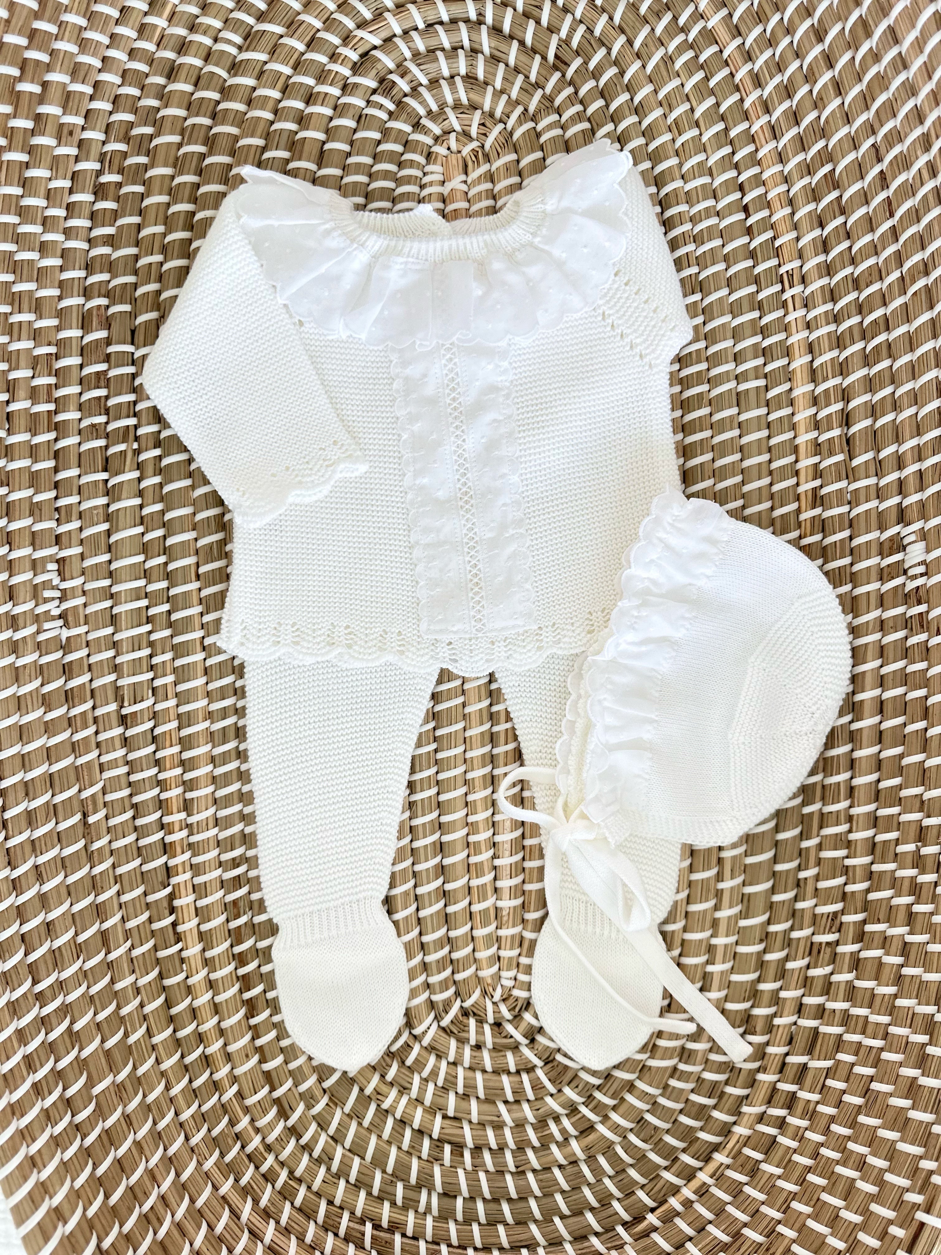 Elegance Newborn Three Piece Outfit (Ivory/Beige)