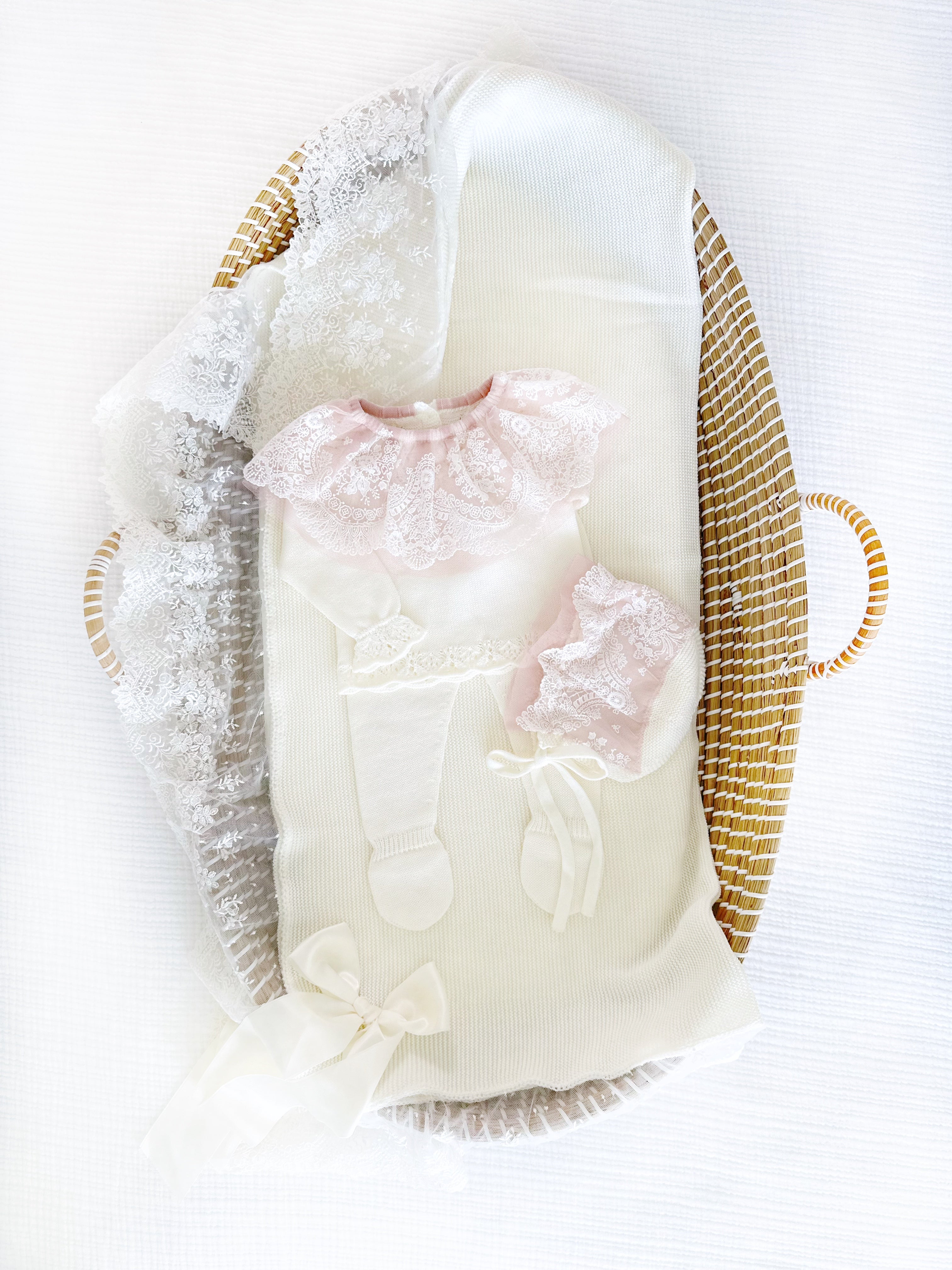 Elegance Newborn Three Piece Outfit (Ivory/Light Pink)