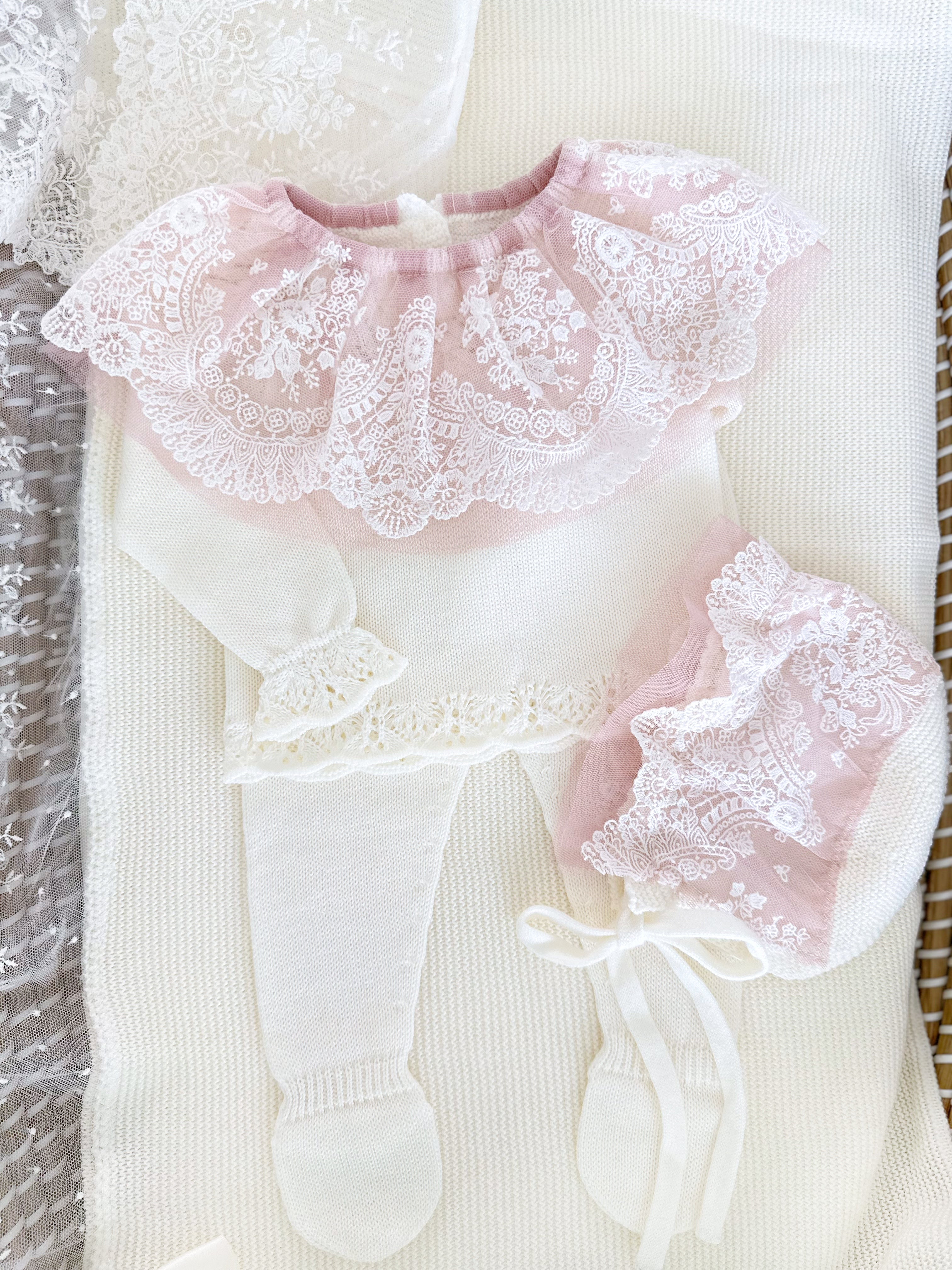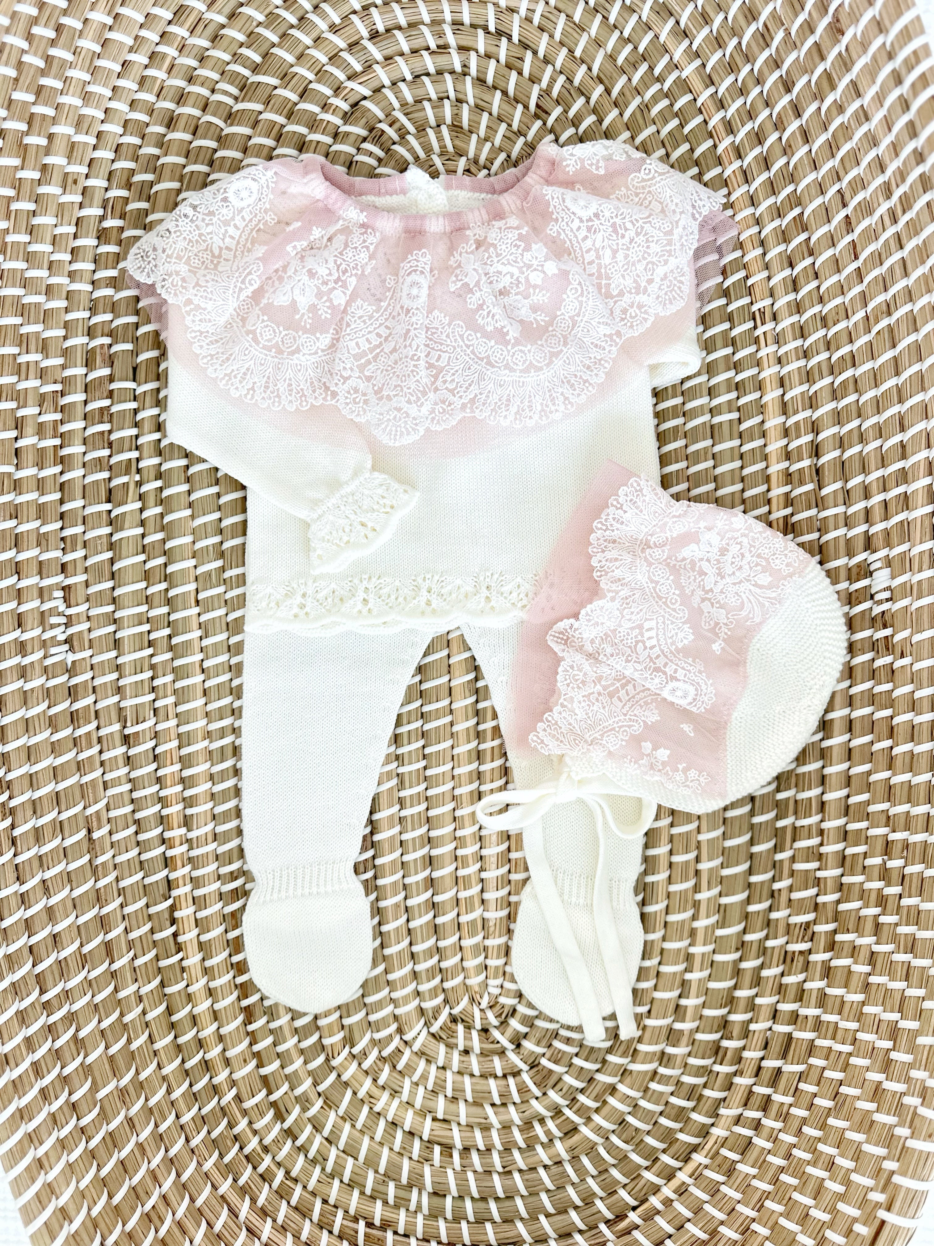 Elegance Newborn Three Piece Outfit (Pink/Ivory)