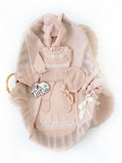 - Four pieces are included: sweater, pants, bonnet and matching blanket