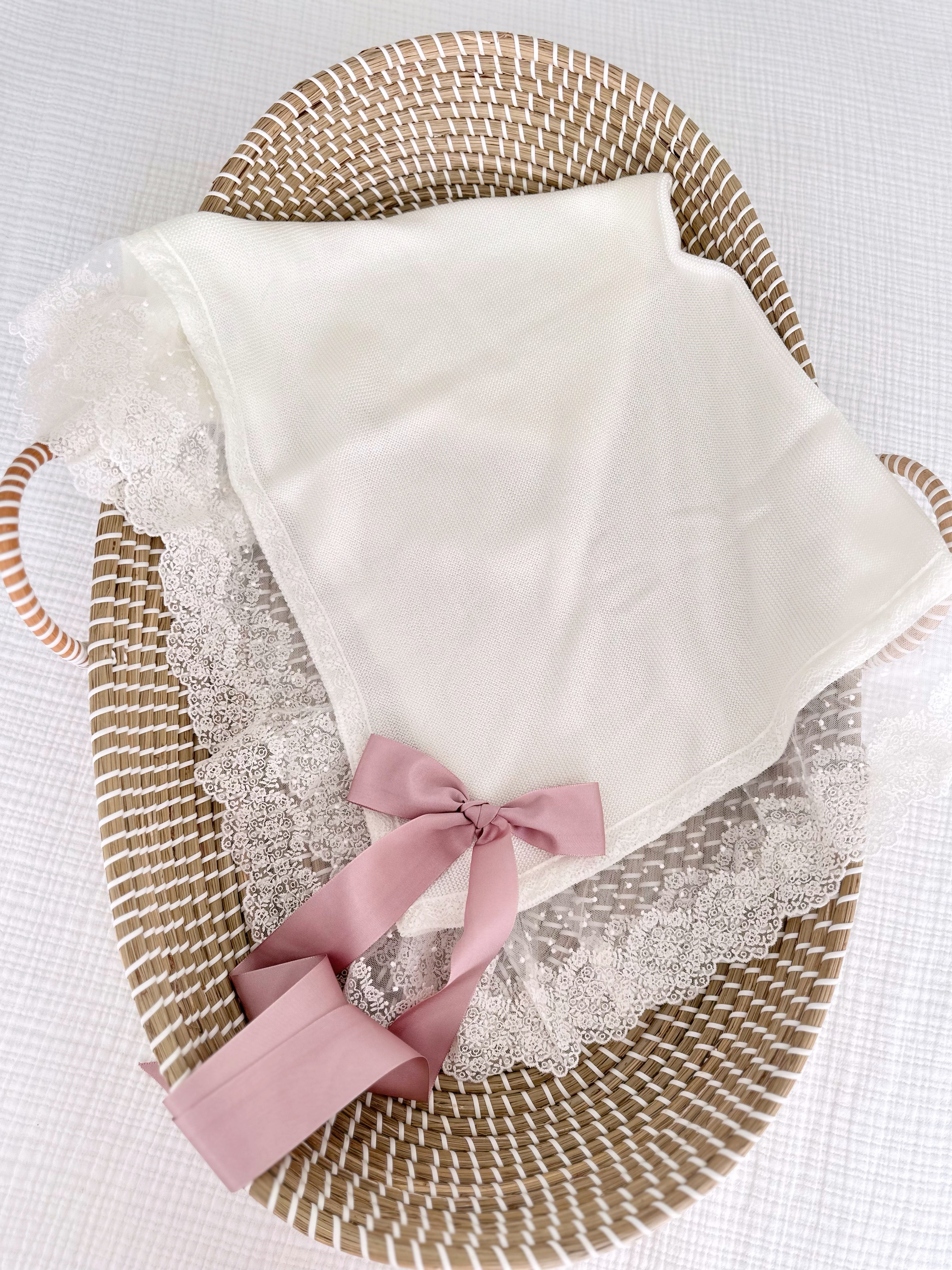 Elegance Knitted Blanket (Ivory/Dusty Pink)