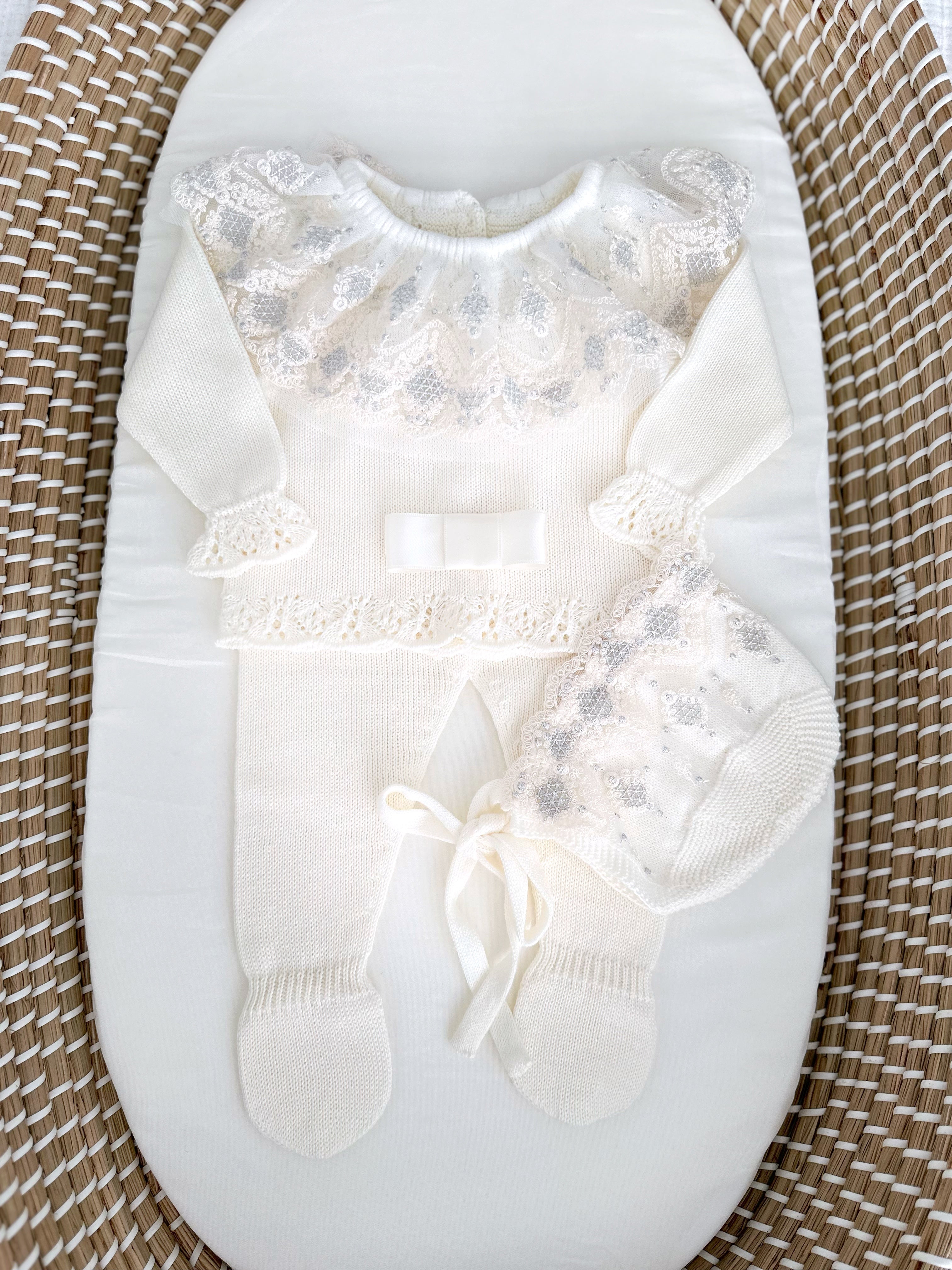 Elegance Newborn Three Piece Outfit (Ivory/Silver)