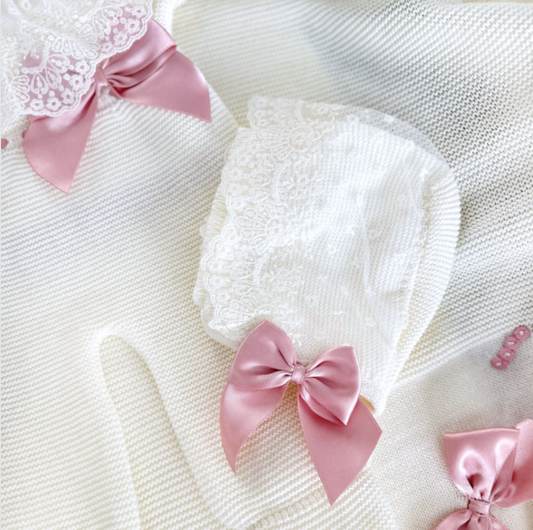 Paula Deluxe Romper Set Outfit + Blanket (Ivory/Dusty Pink)