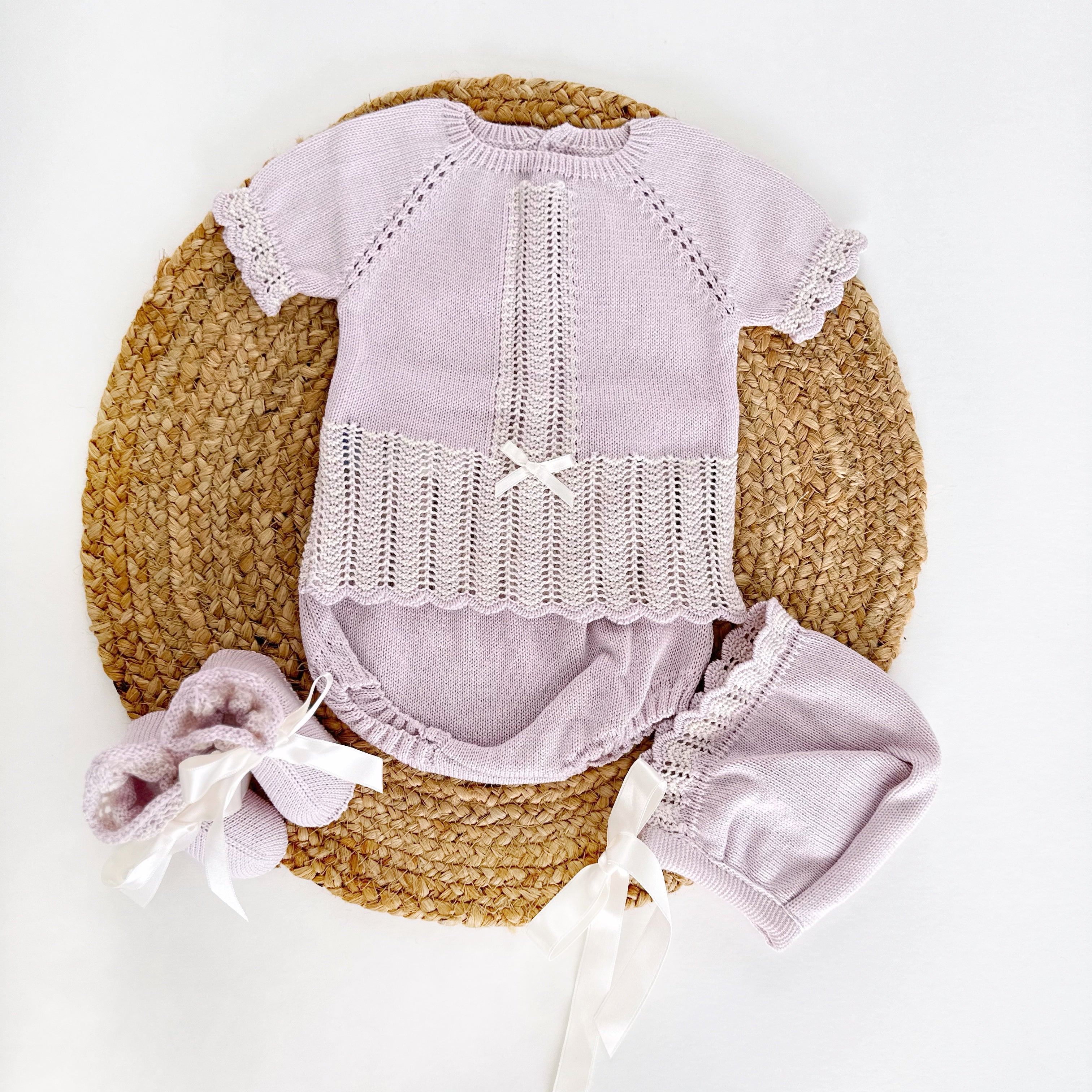 Conta Newborn Four Piece Outfit (Lavander/Ivory)