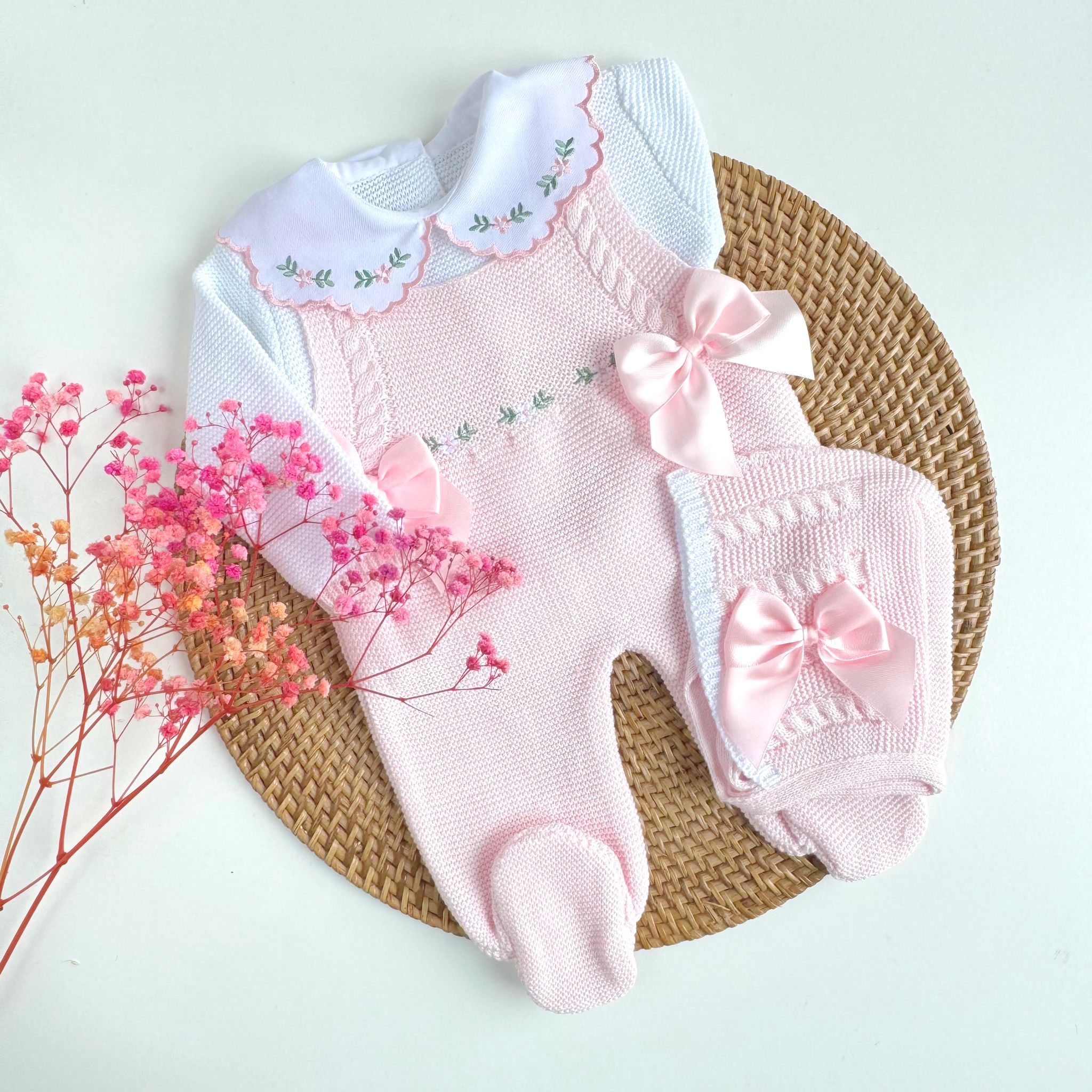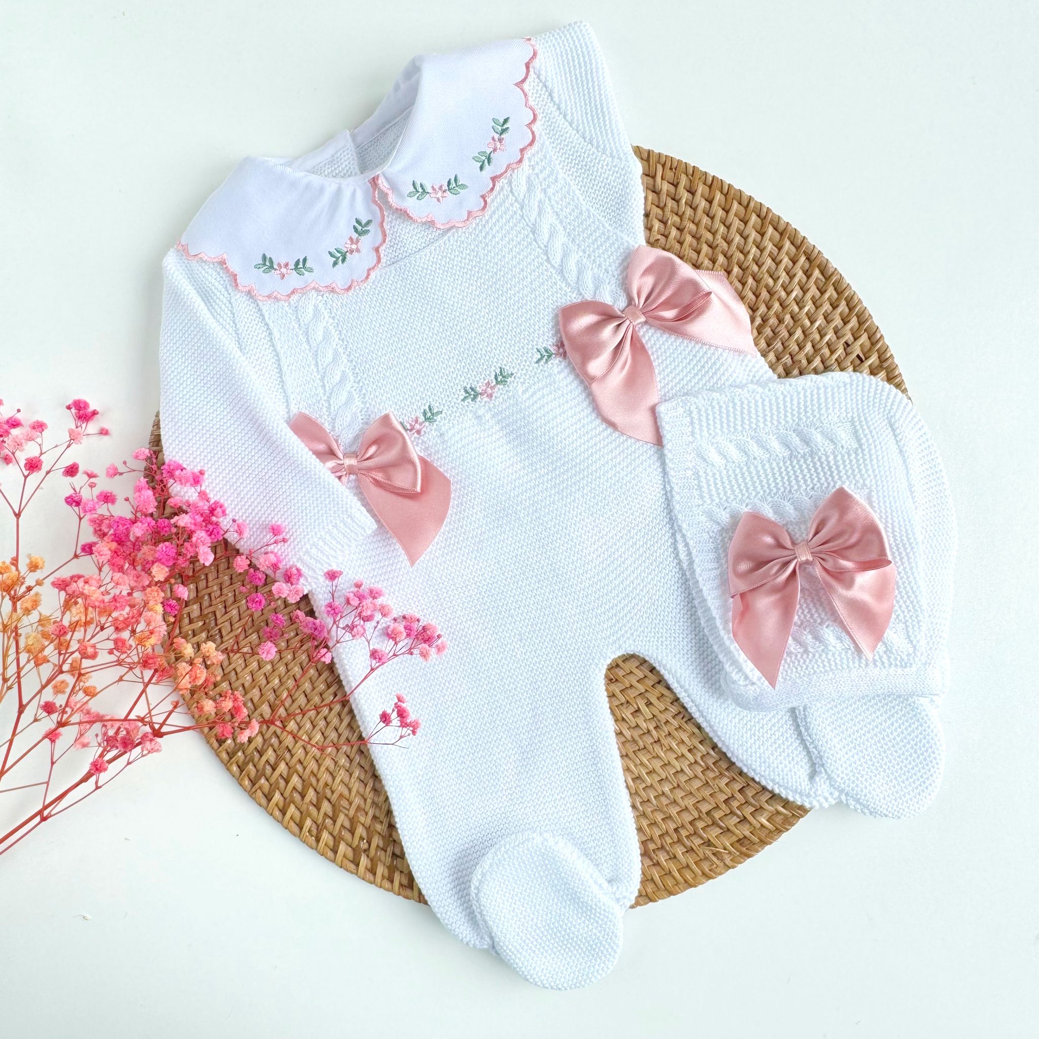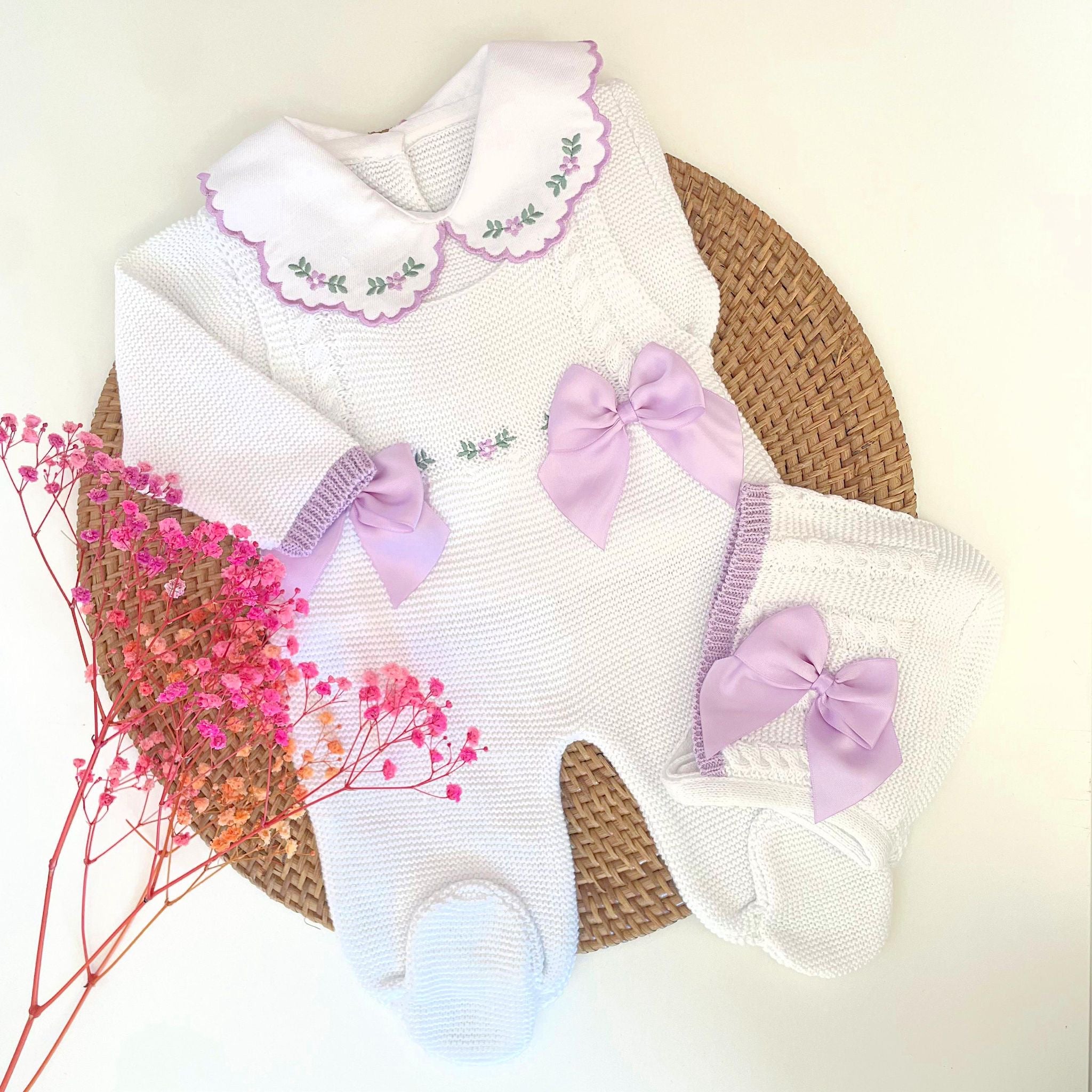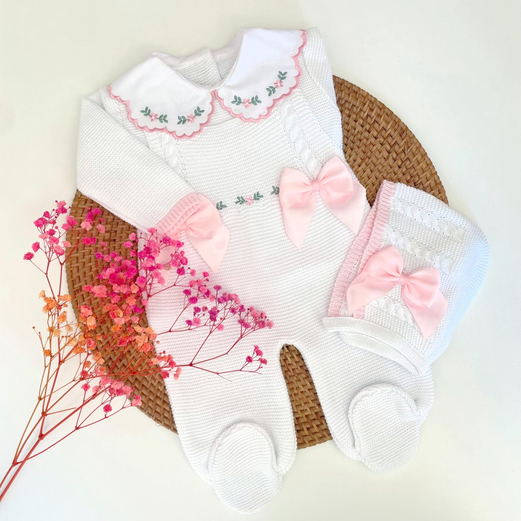 Flowers Three Piece Knitted Outfit (10 Colors Available)