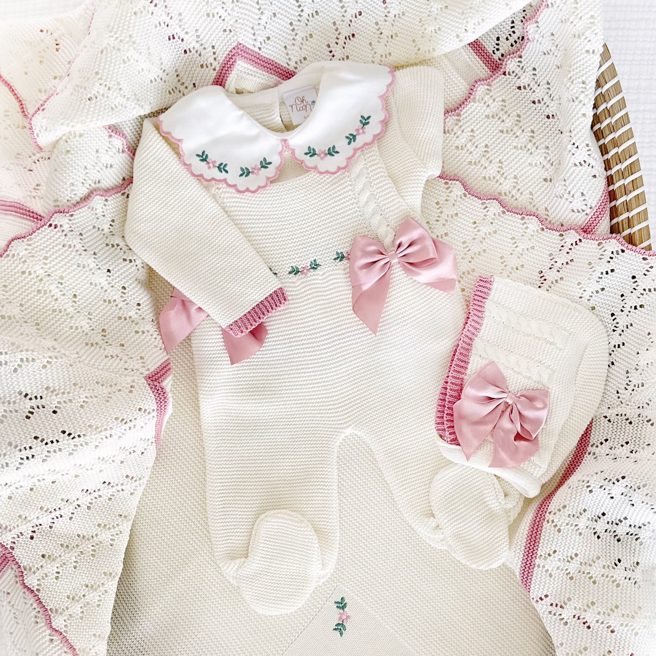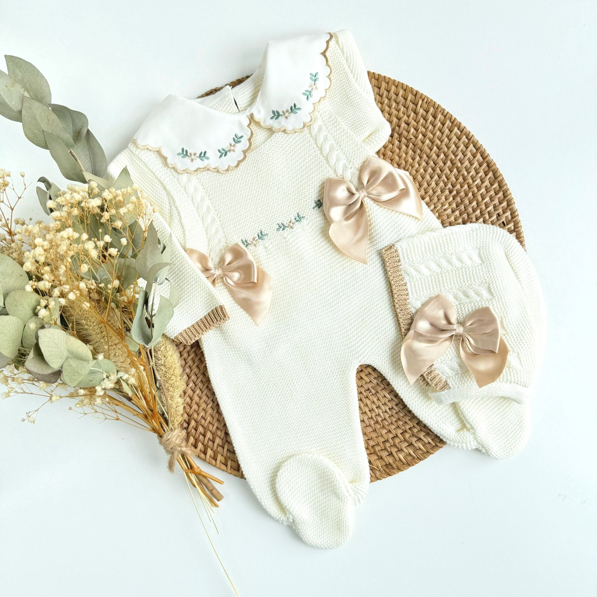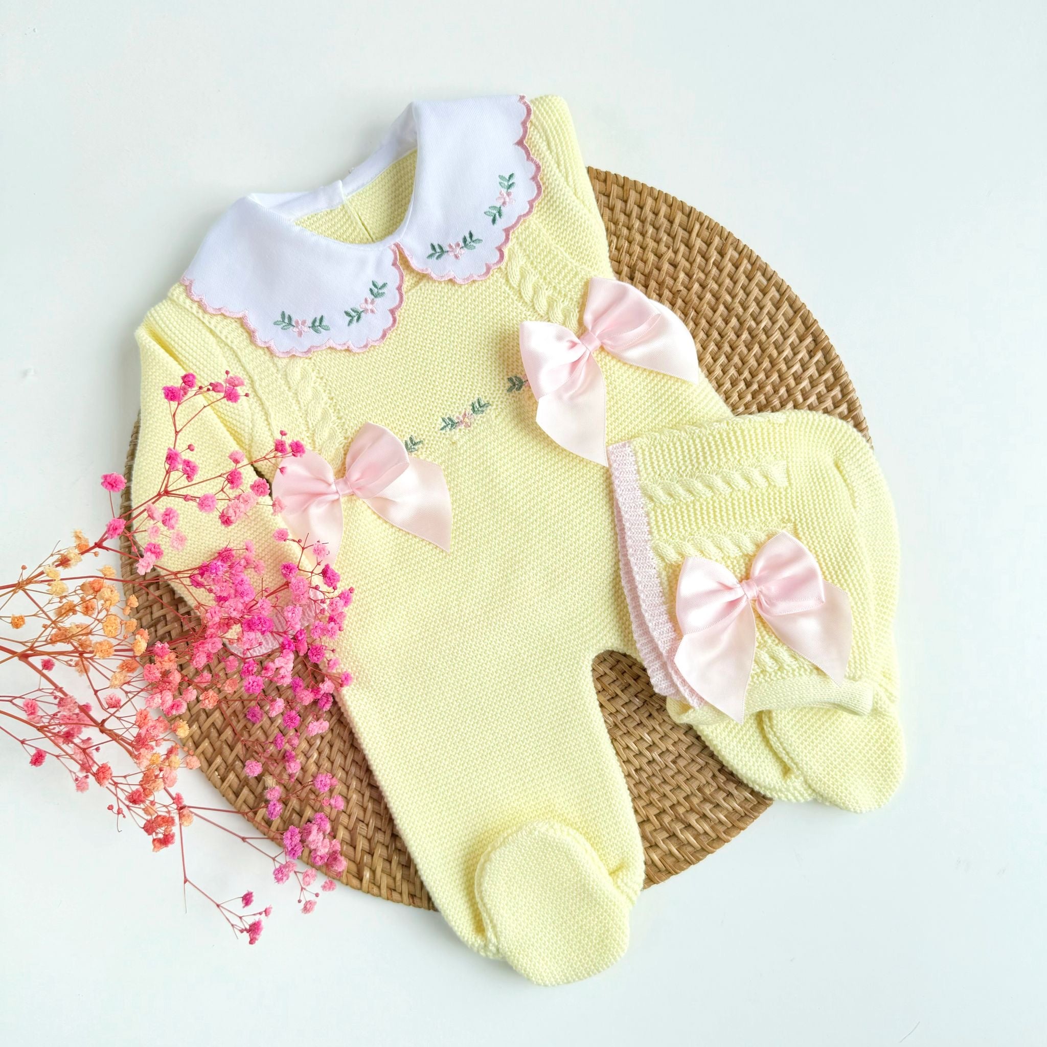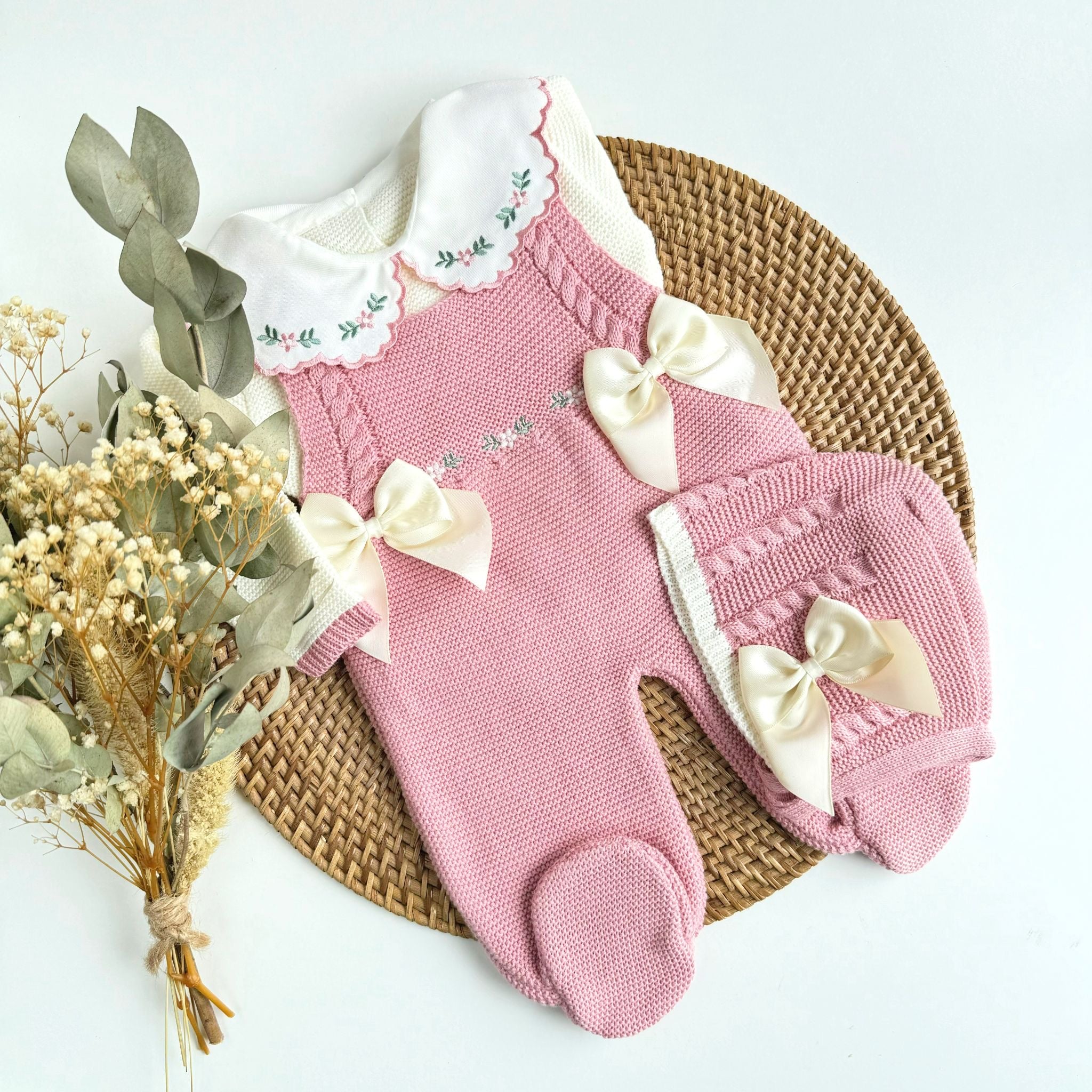 Flowers Three Piece Knitted Outfit (10 Colors Available)