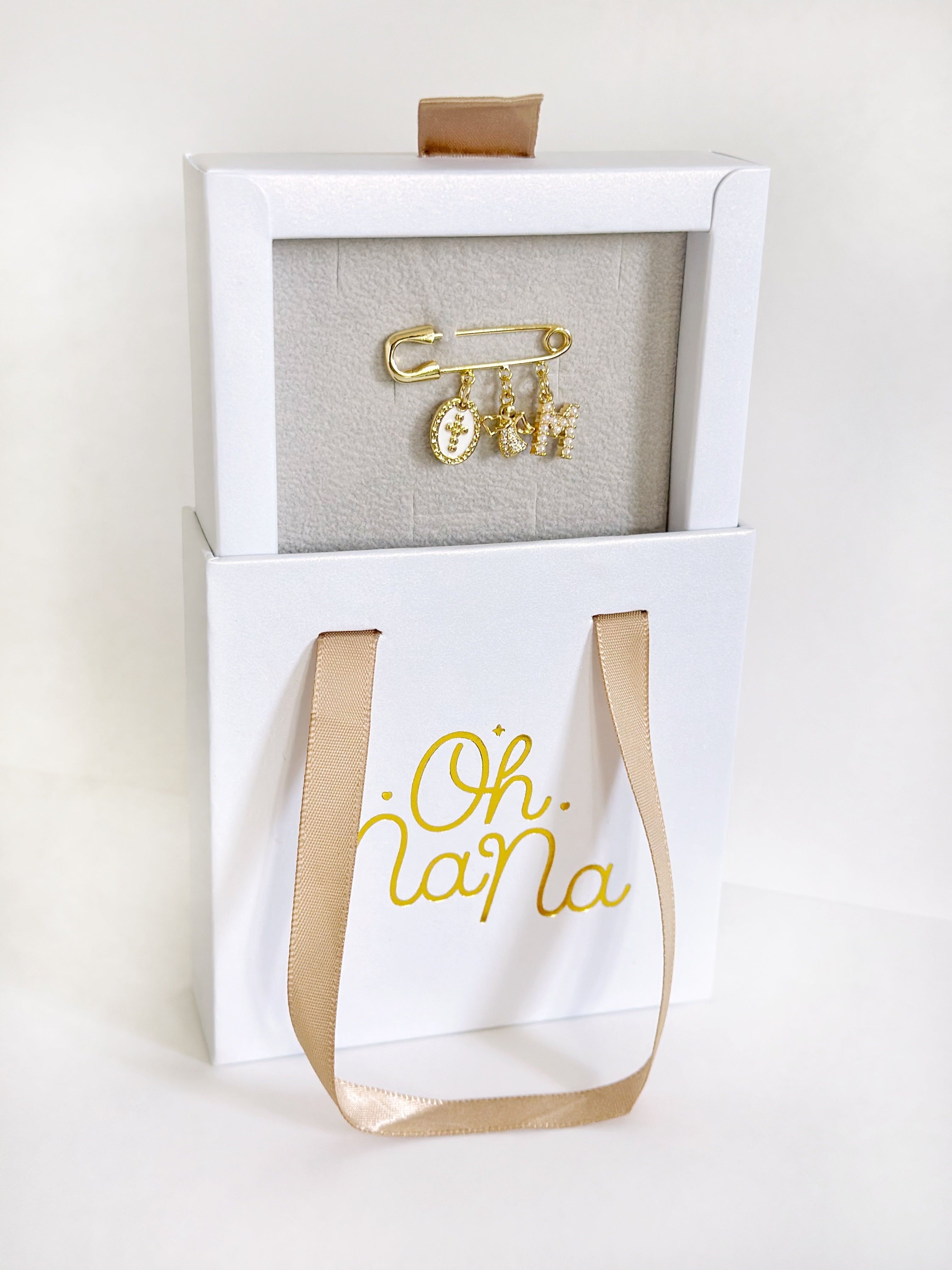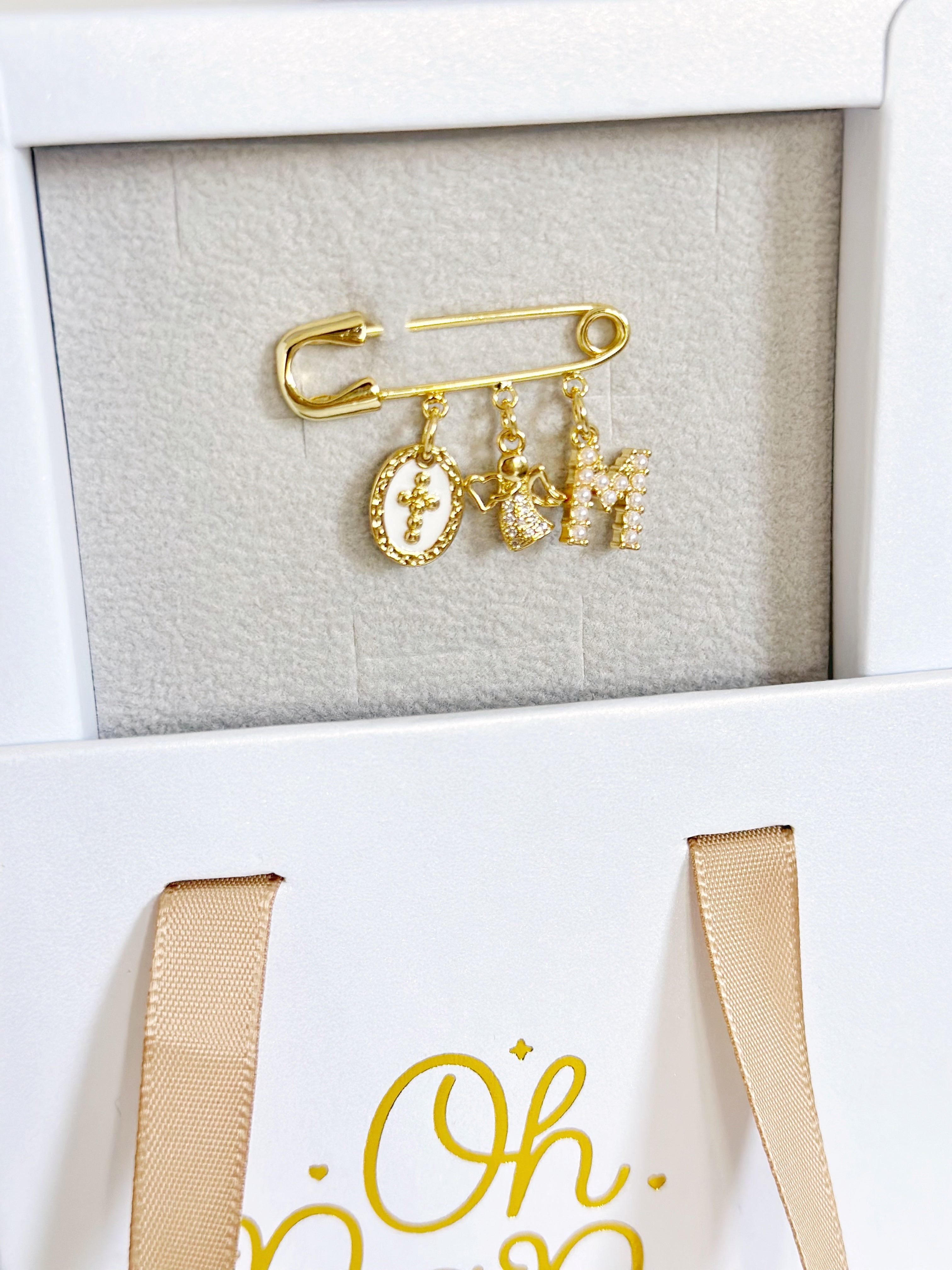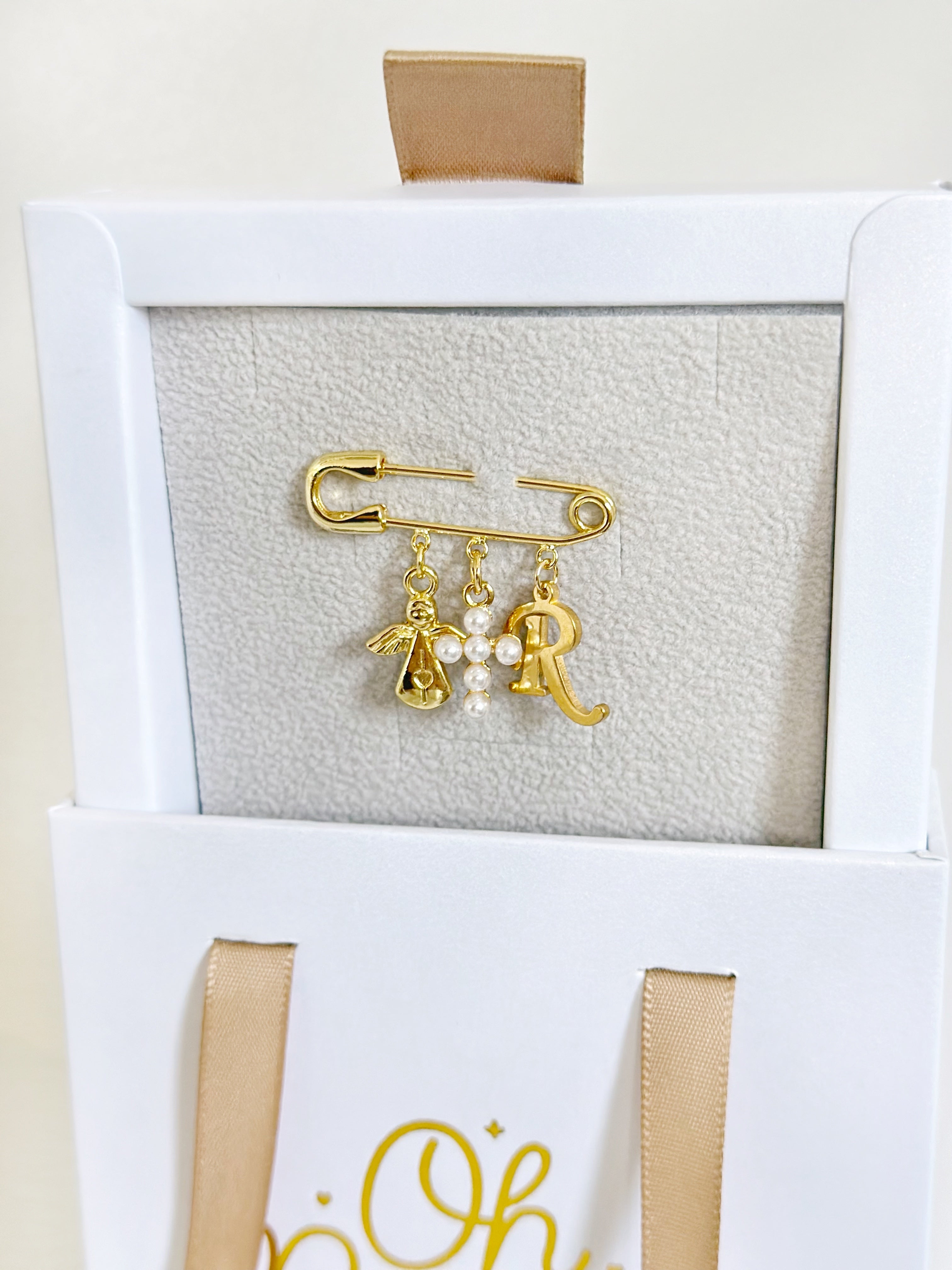 18k Gold Plated Safety Pin Brooch (God Bless Me with Letter)