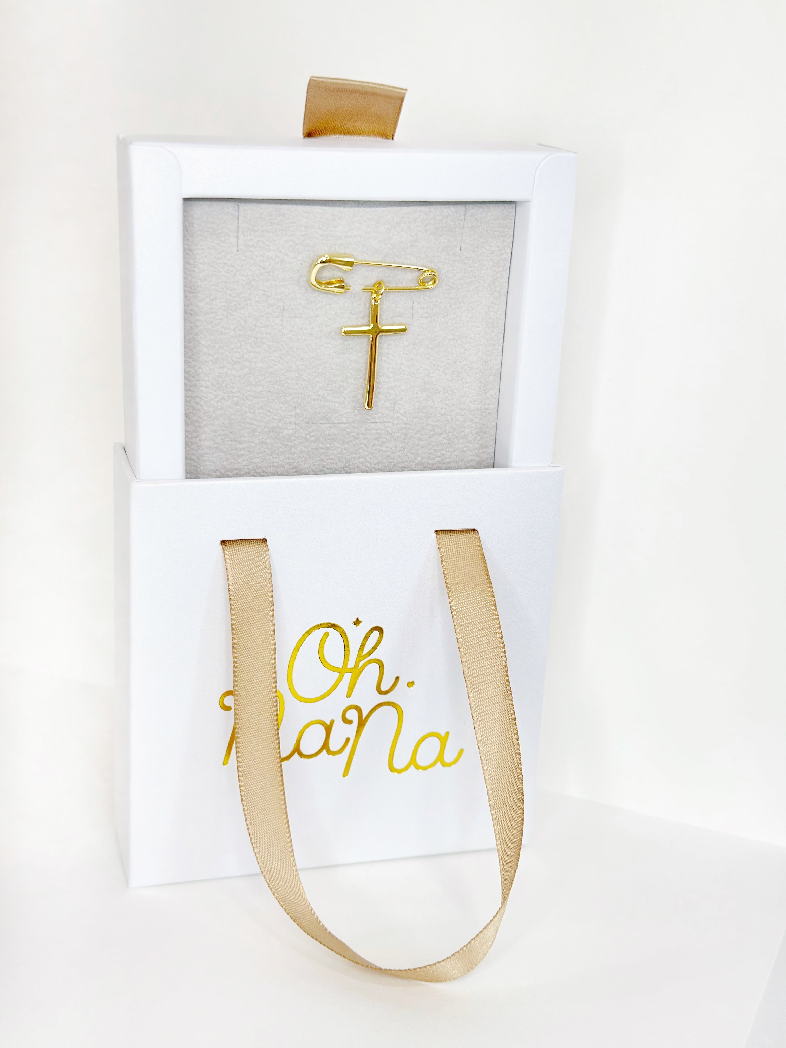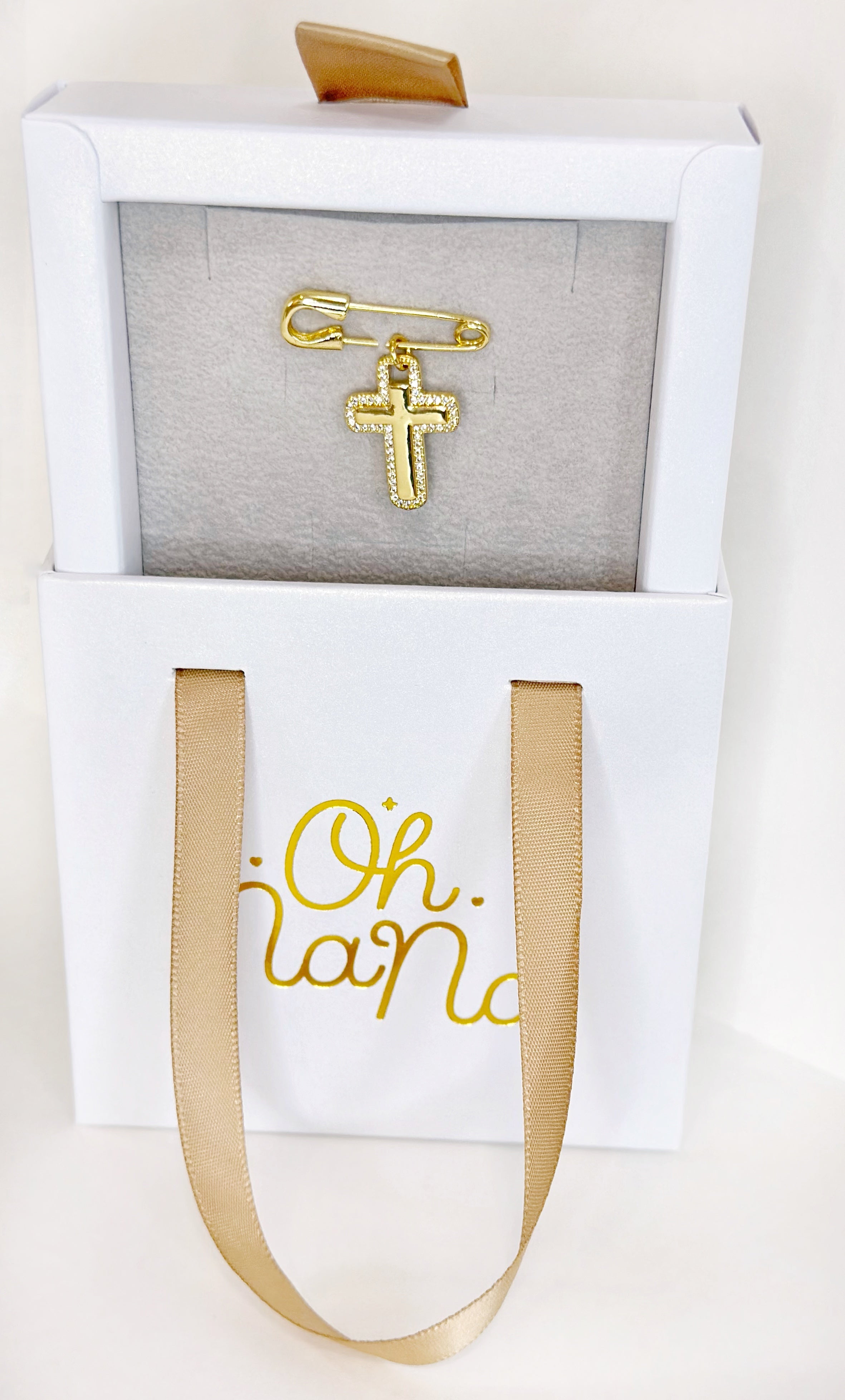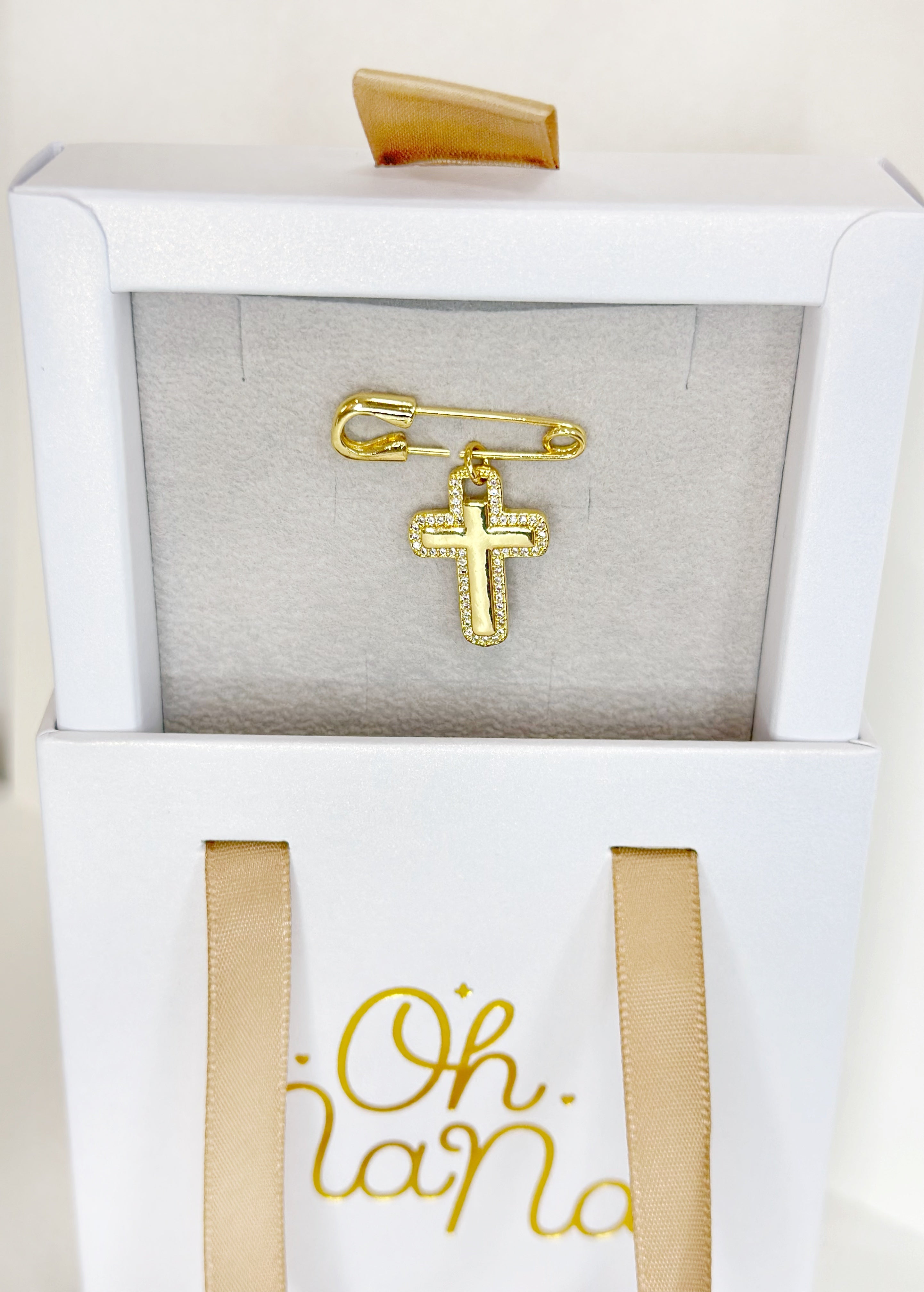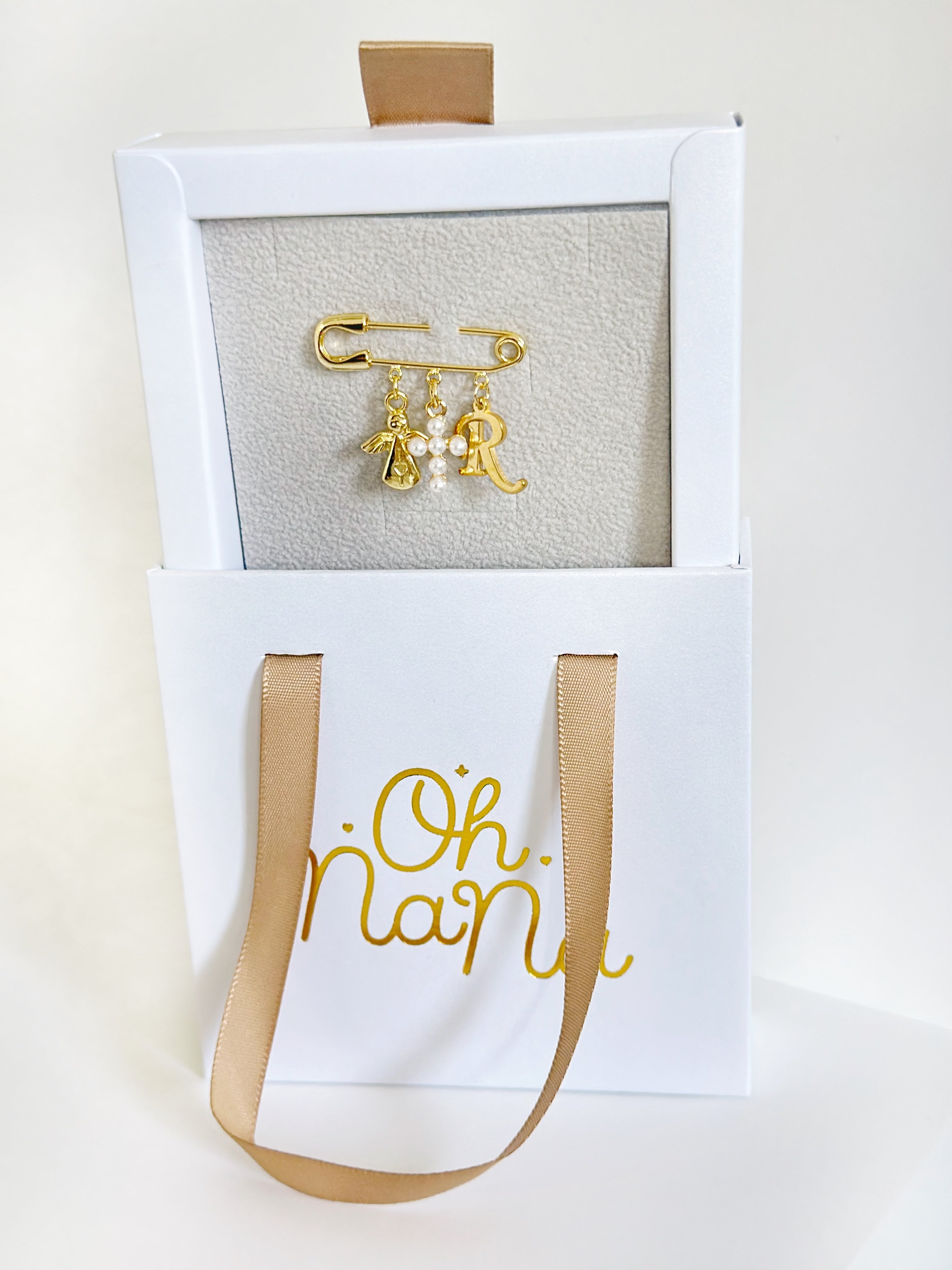 18k Gold Plated Safety Pin Brooch (God Bless Me with Letter)