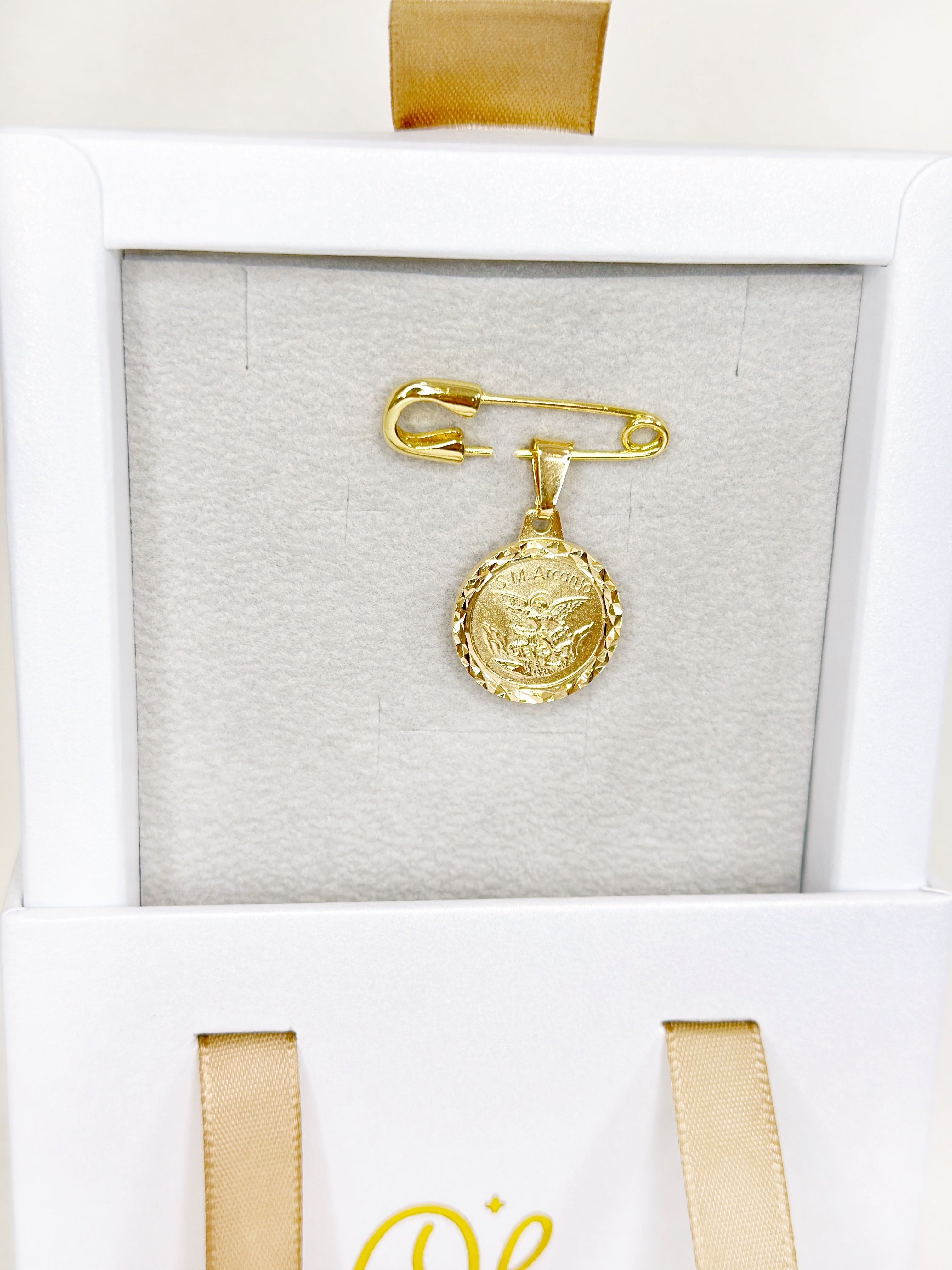 Gold Plated One Charm Pin Brooch (San Miguel Arcangel)