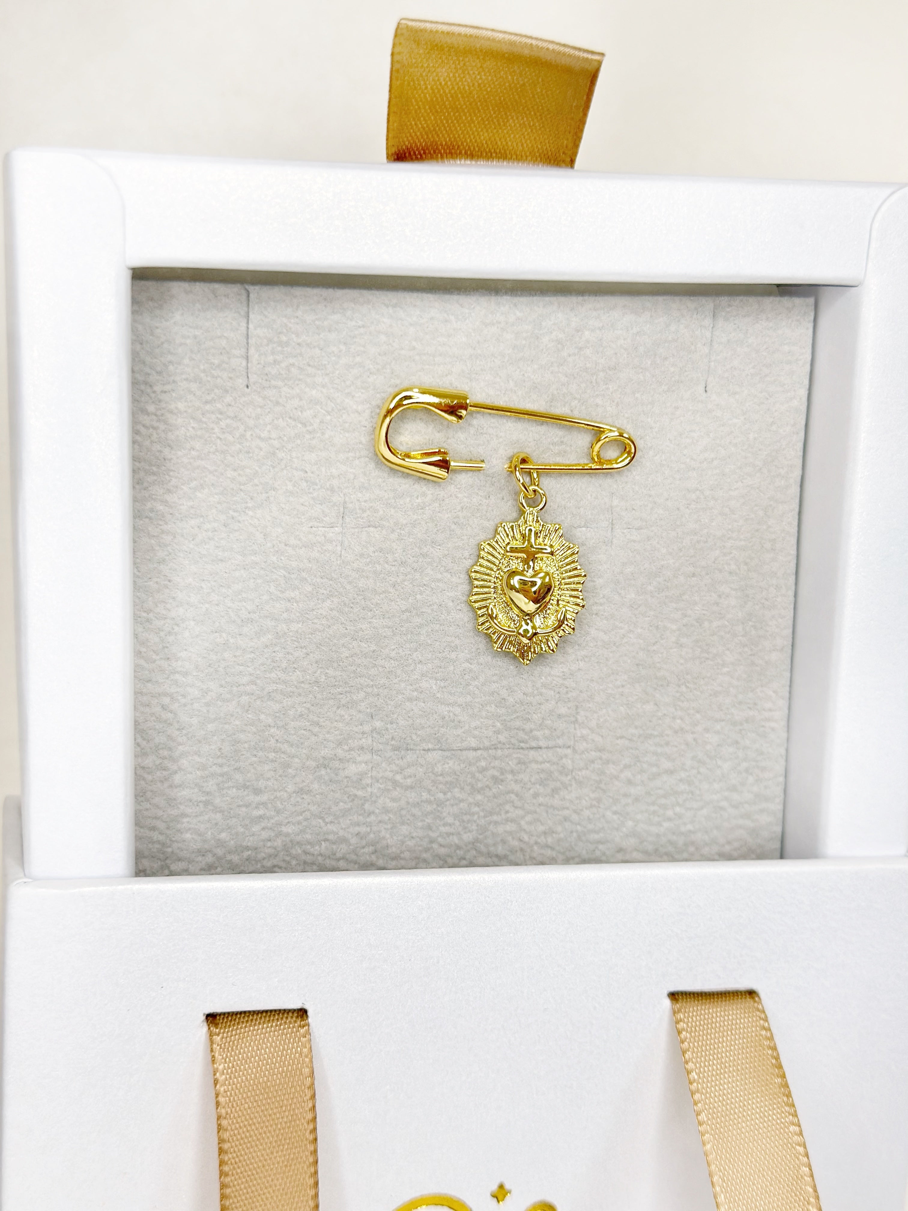14k Gold Plated One Charm Pin Brooch (Sagrado Corazón de Jesus)