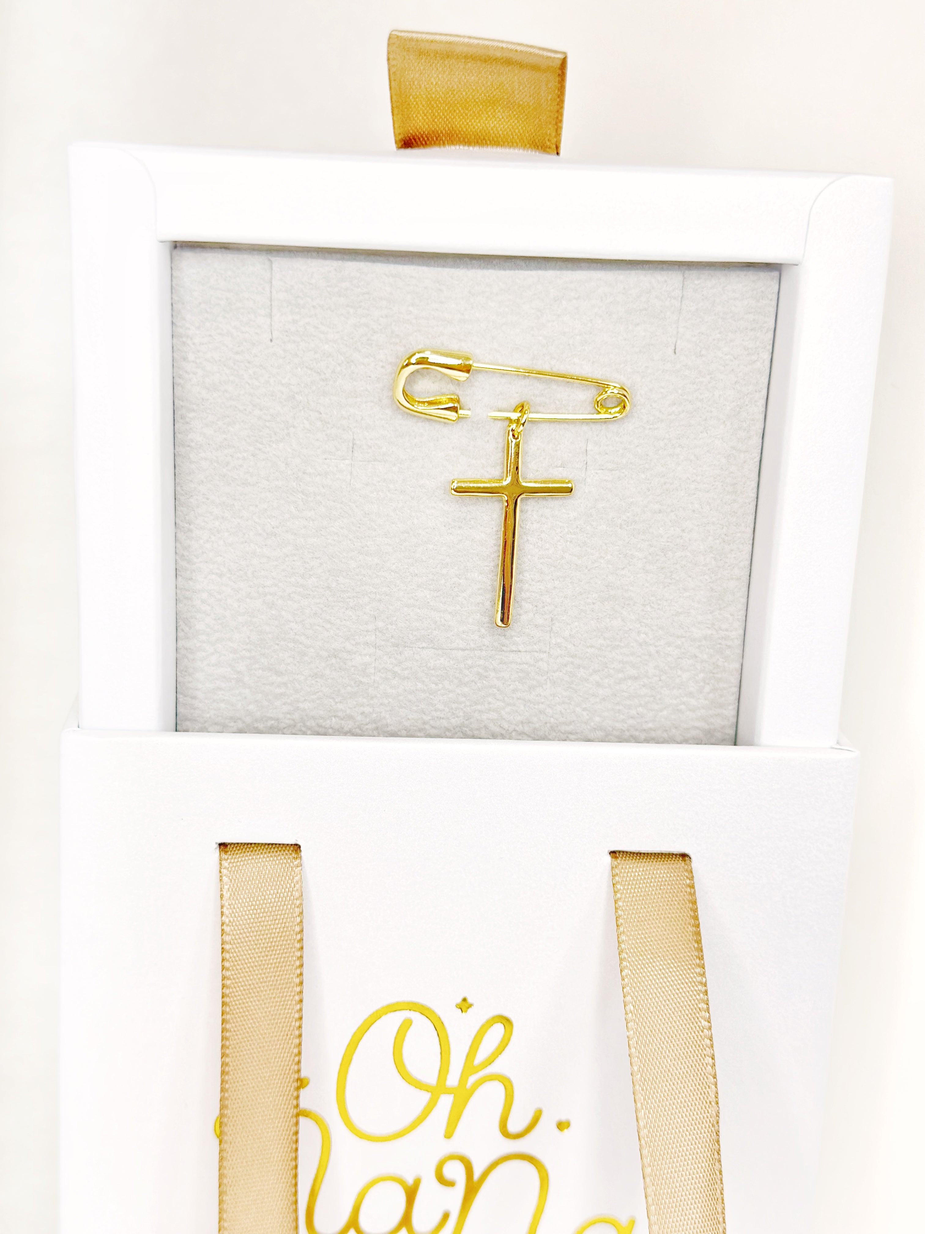 14k Gold Plated One Charm Pin Brooch (Cross)