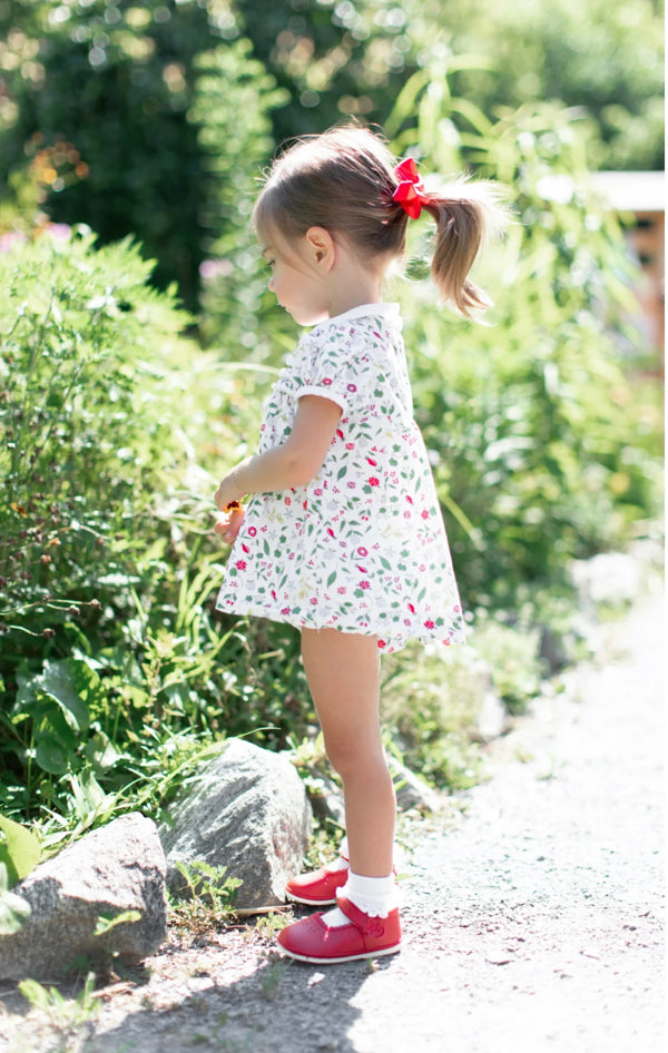 Mia Scalloped Leather Mary Jane Red