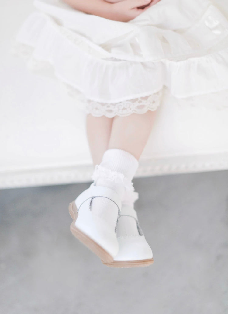 Mia Scalloped Leather Mary Jane White