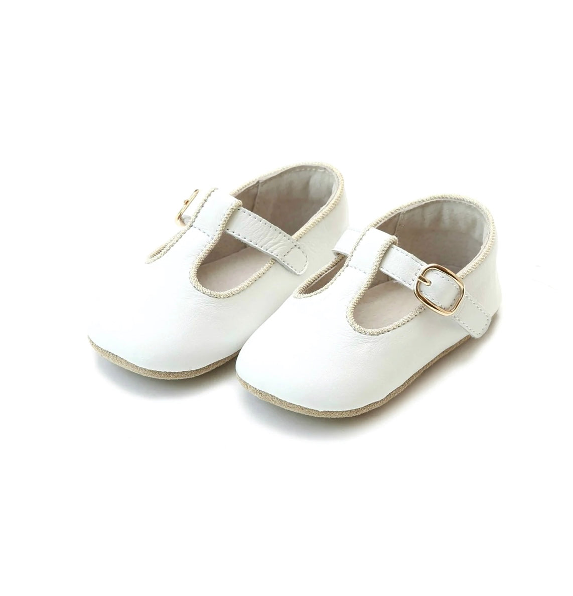 Evie Napa Leather T-Strap Mary Jane Crib White Shoe (Infant)