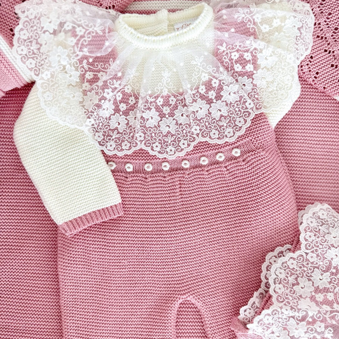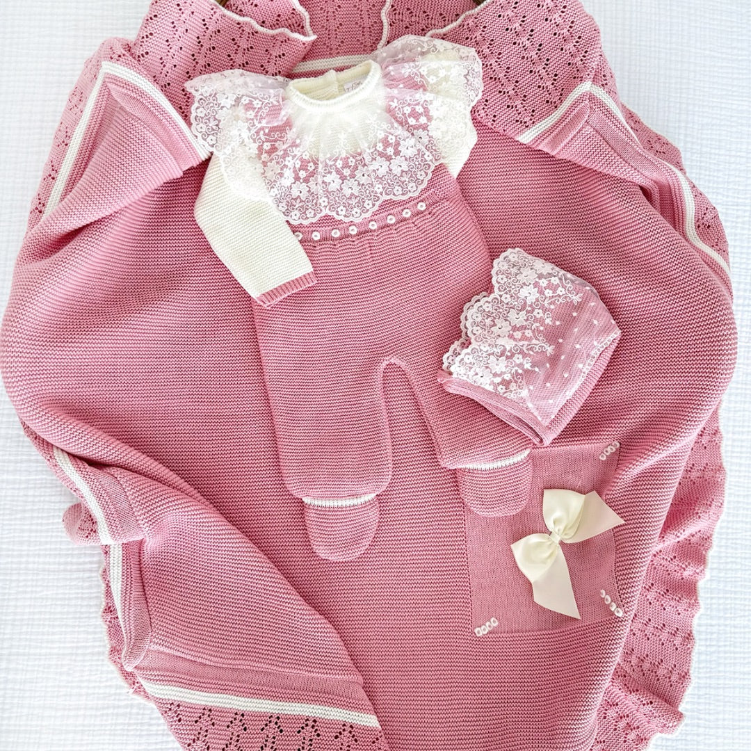 Paula Jumpsuit Deluxe Set Outfit + Blanket (Dusty Pink/Ivory)