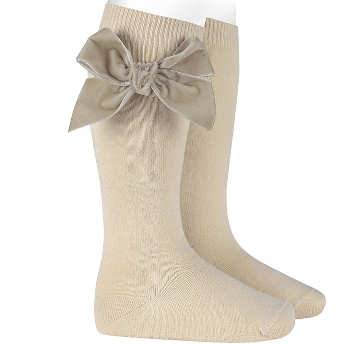 Knee High Cotton Socks with Side Velvet Bow (Linen)